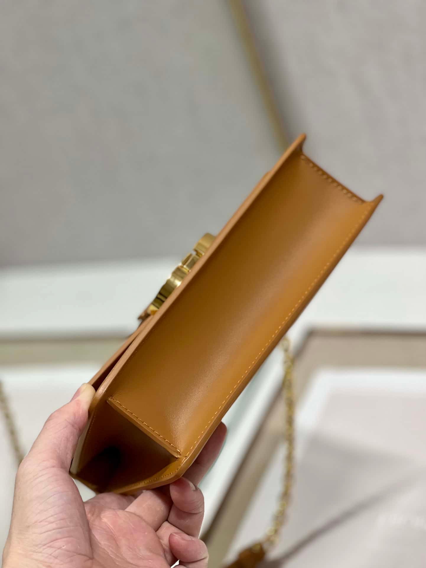 - The East-West bag with chain enhances the 30 Montaigne line with a timeless and elegant design crafted in latte ultra-smooth. The flap has an antique gold-finish metal CD clasp, inspired by the seal of a Christian Dior perfume bottle. Other details, like the embossed 30 Montaigne signature on the back, highlight the streamlined design. The bag features a removable chain strap with a insert that allows it to be comfortably carried by hand, worn over the shoulder or crossbody.