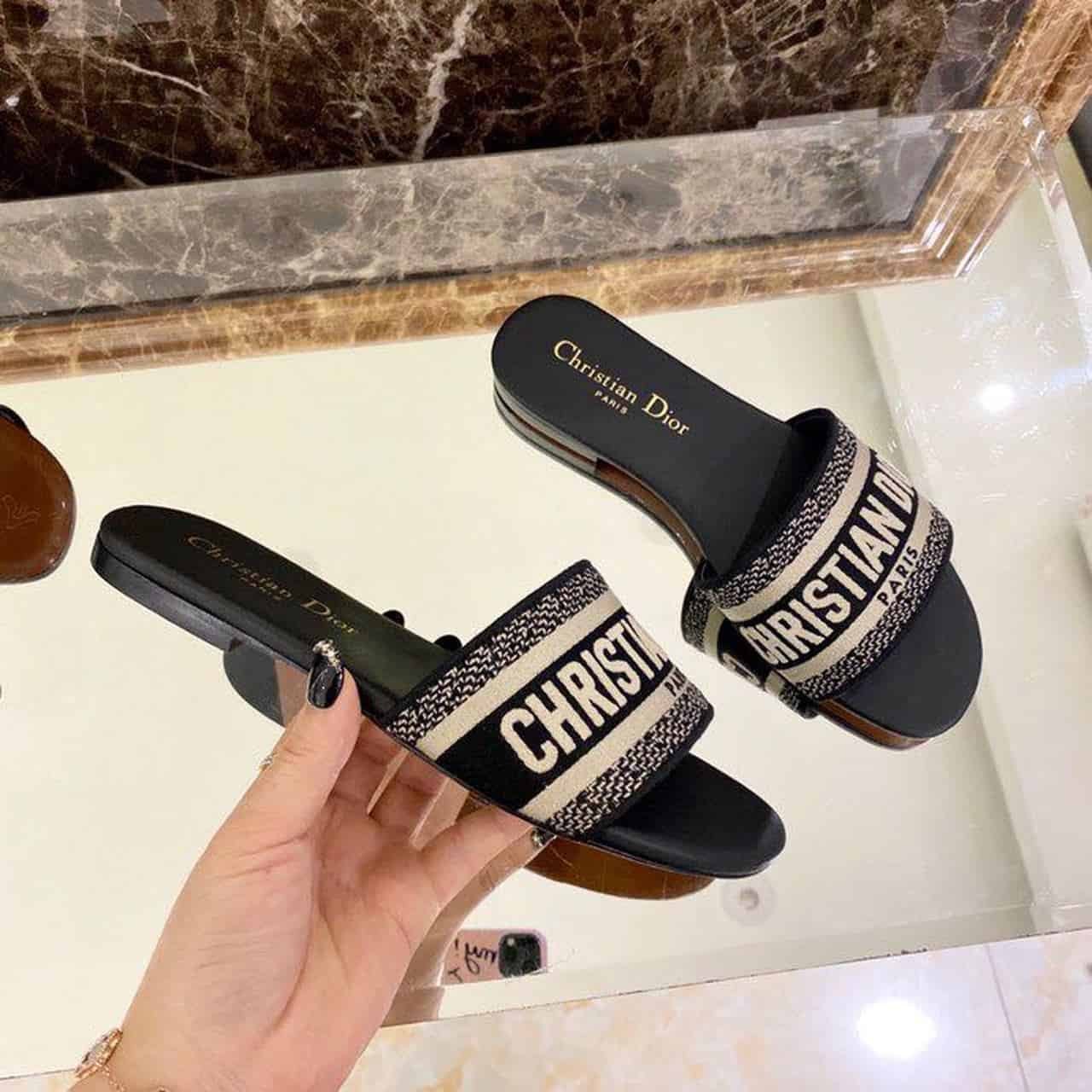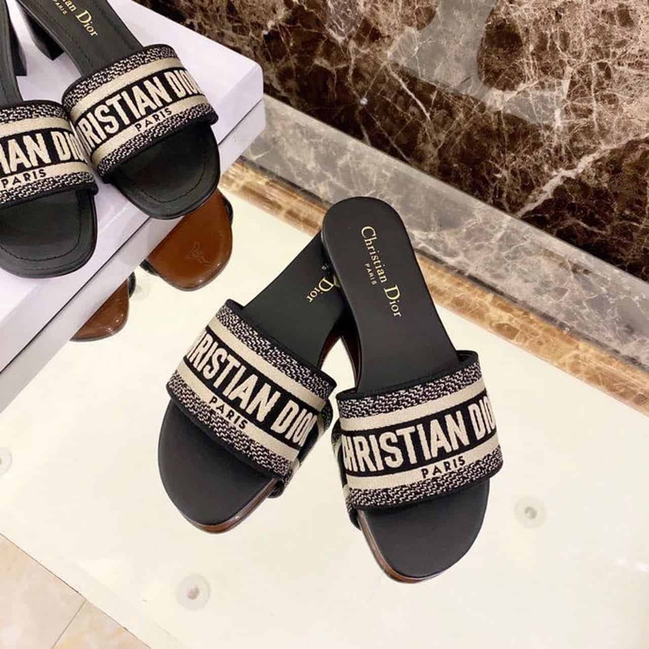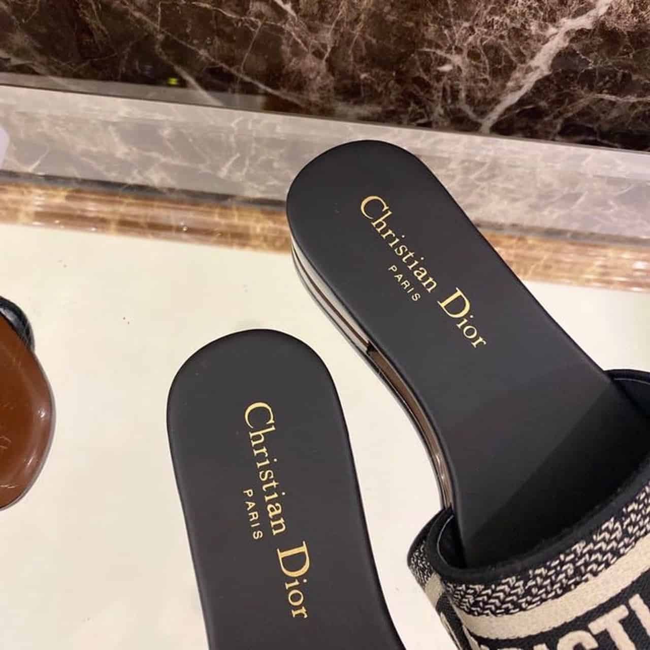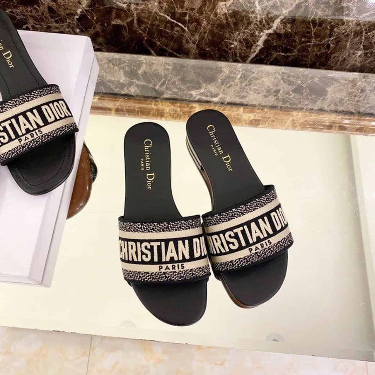 Christian Dior Dway Slide Black Embroidered Cottot For Women CD KCQ166ERC_S56B