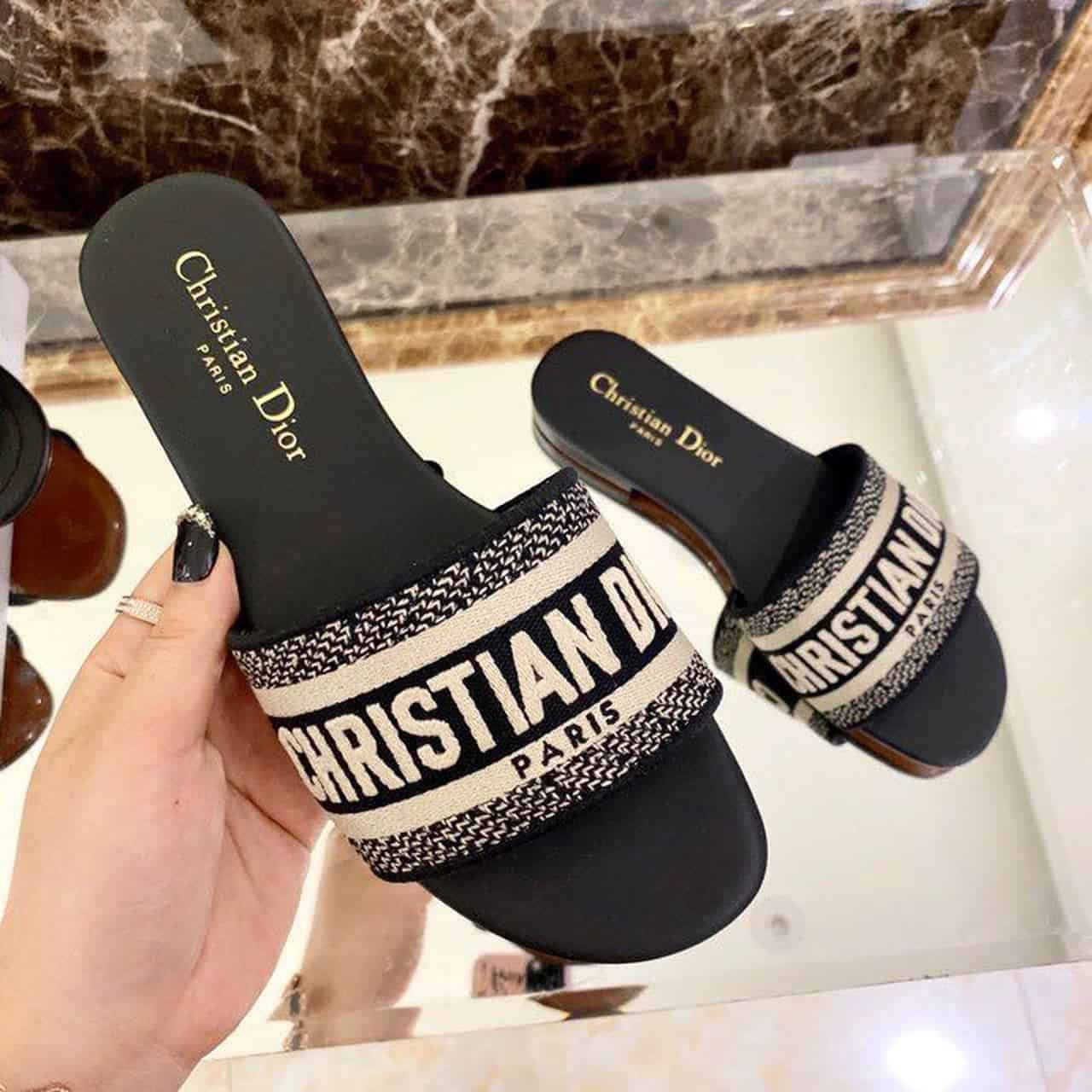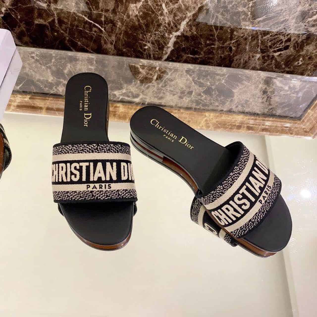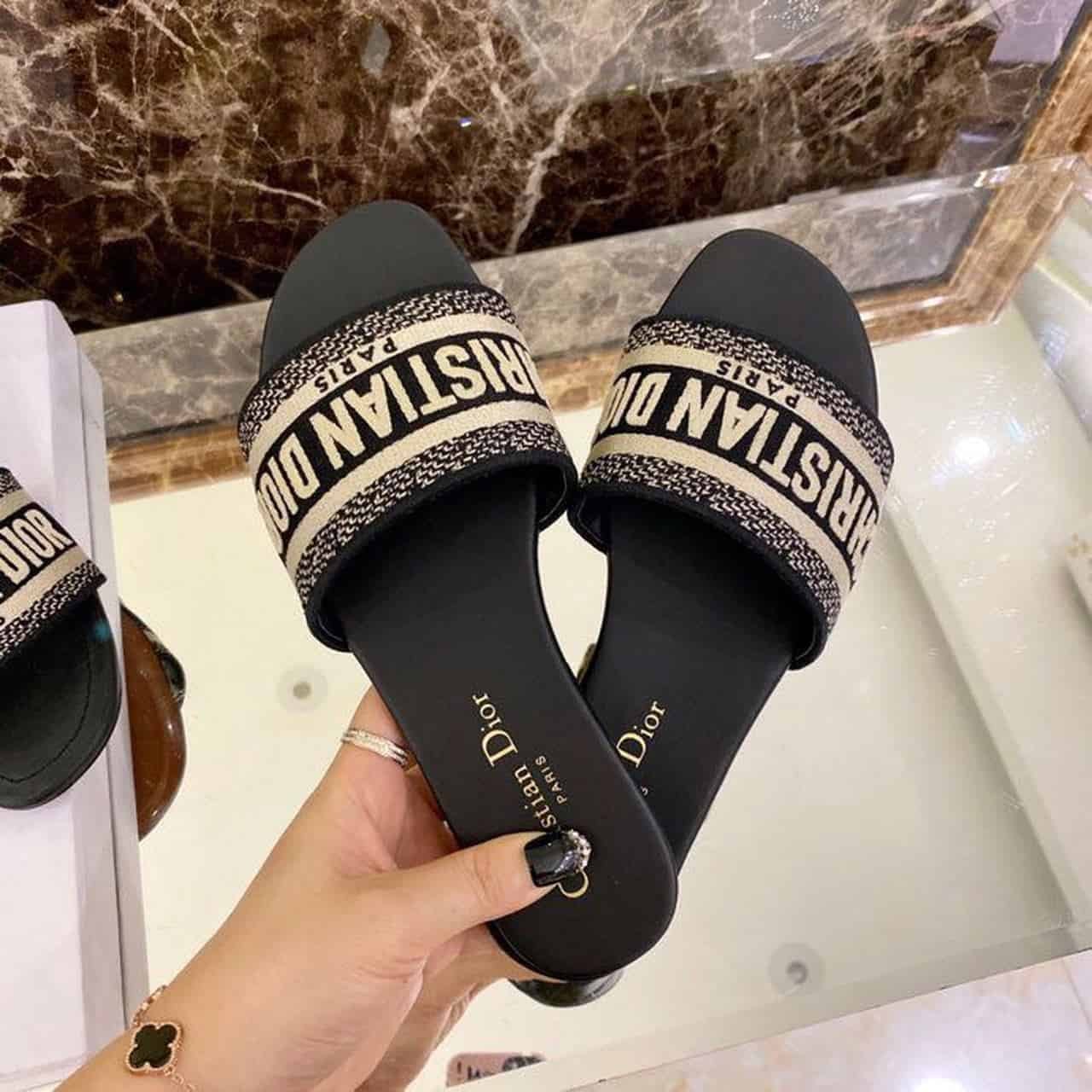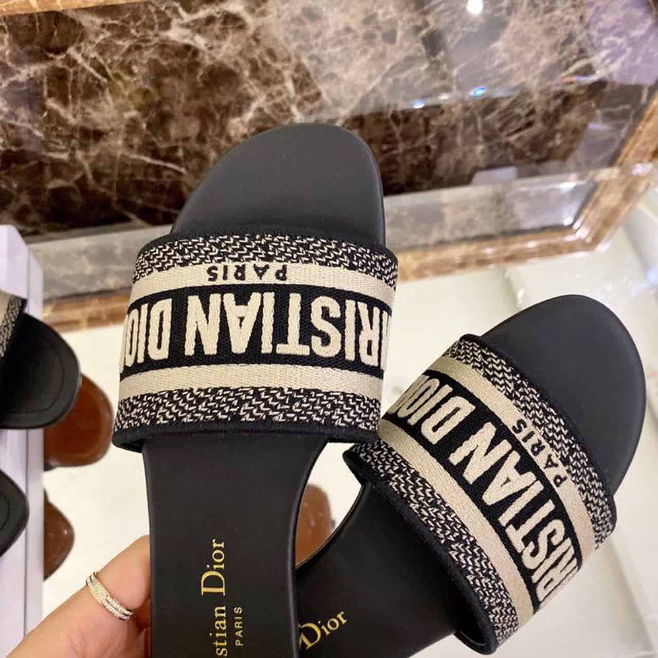 Christian Dior Dway Slide Black Embroidered Cottot For Women CD KCQ166ERC_S56B