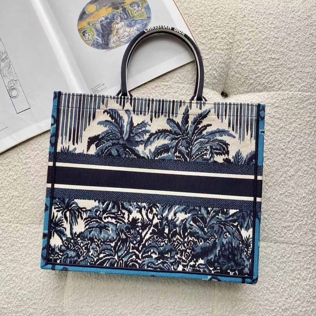Christian Dior Large Blue Multicolor Dior Book Tote Canvas For Women 42cm/16.5in CD