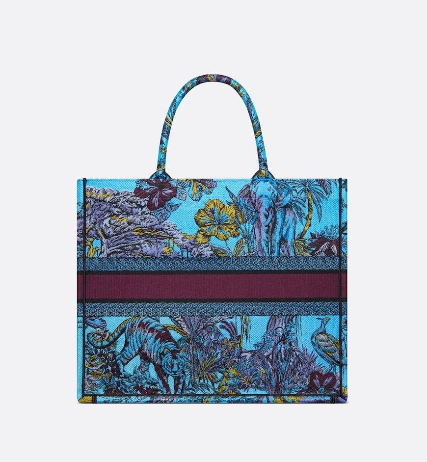 Introduced by Maria Grazia Chiuri, Creative Director of Christian Dior, the Dior Book Tote has become a staple of the Dior aesthetic. Designed to hold all the daily essentials, the celestial blue multicolor style is fully embroidered with the Toile de Jouy Voyage motif by Pietro Ruffo, setting Mr. Dior’s iconic pattern into the heart of Indian flora and fauna. Adorned with the Christian Dior Paris signature on the front, the large tote exemplifies the House’s signature savoir-faire and may be carried by hand or worn over the shoulder.