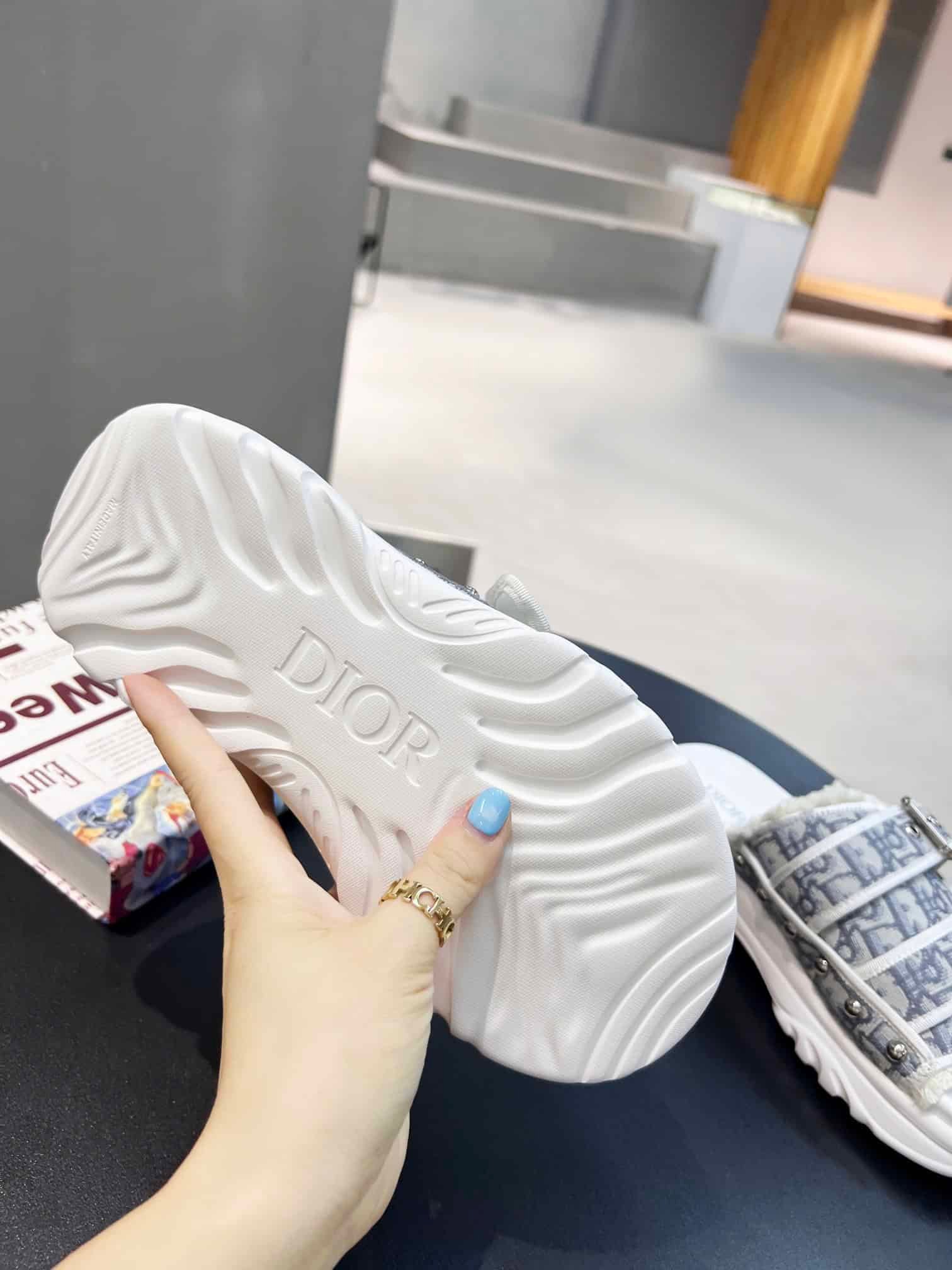 Supple and lightweight textured sole with engraved star- Christian Dior’s lucky symbol
