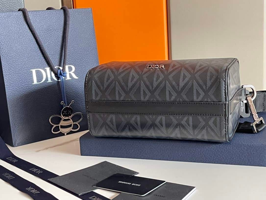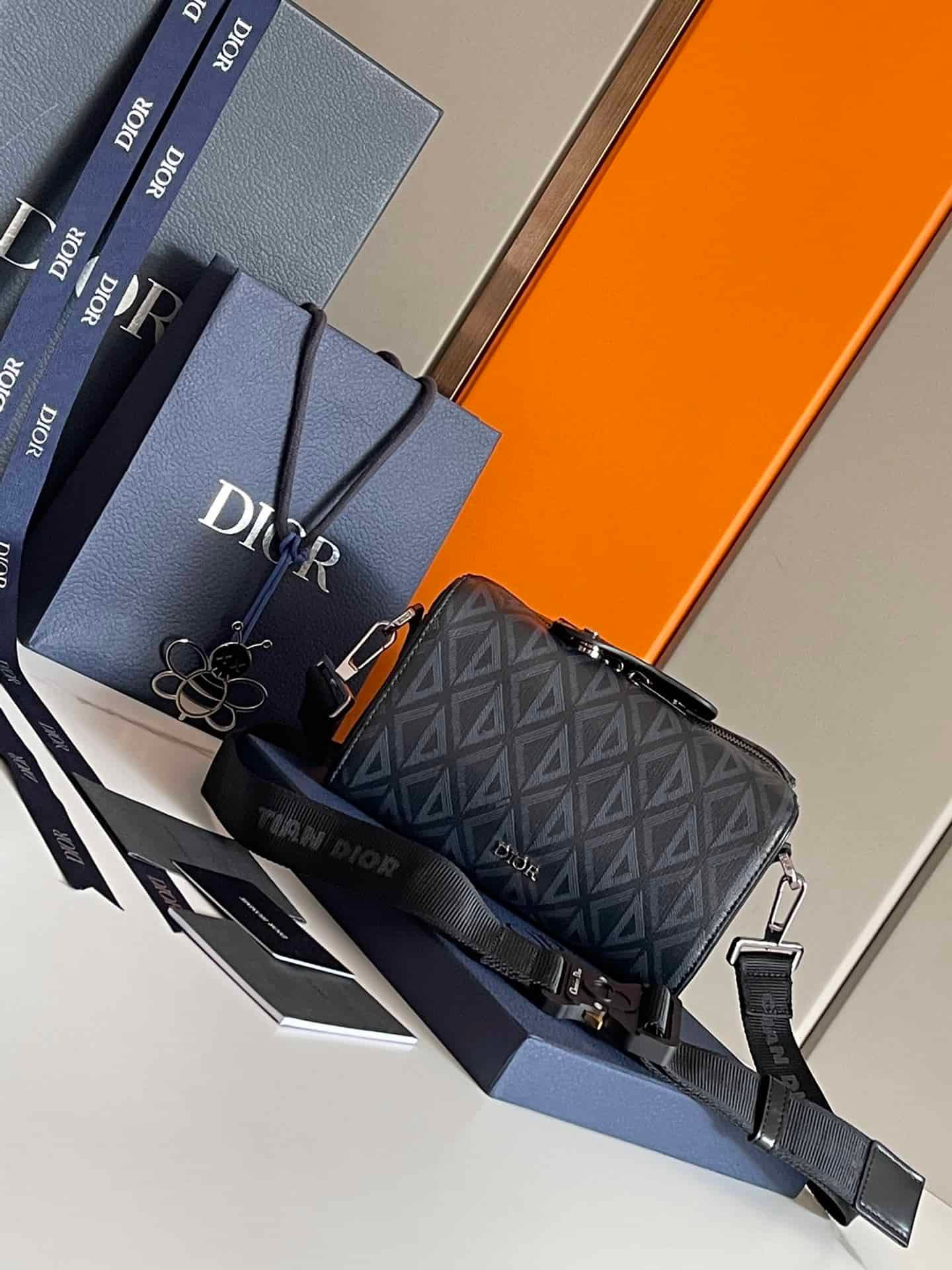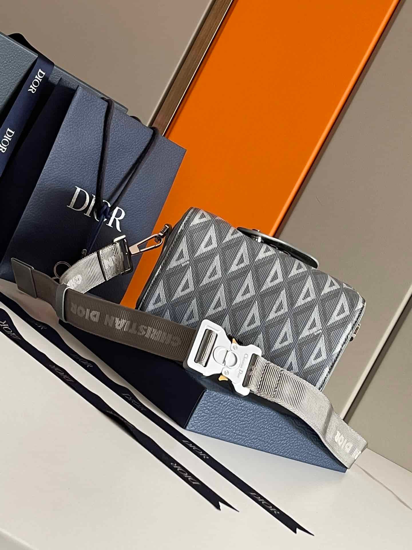 - New this season, the Dior Lingot Pouch stands out with a new functional and modern style. Its structured format in Dior CD Diamond canvas, inspired by House archives, is enhanced by smooth calfskin details and a Dior signature on the front. The zipped compartment secures all essentials with a Saddle flap. Featuring an adjustable and removable shoulder strap with an aluminum buckle, the bag may be carried by hand, over the shoulder or crossbody.