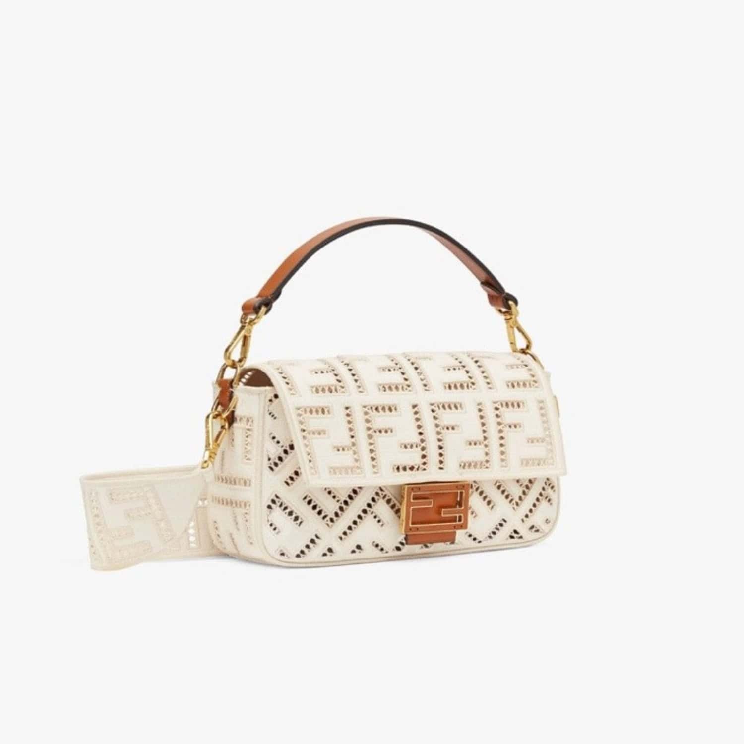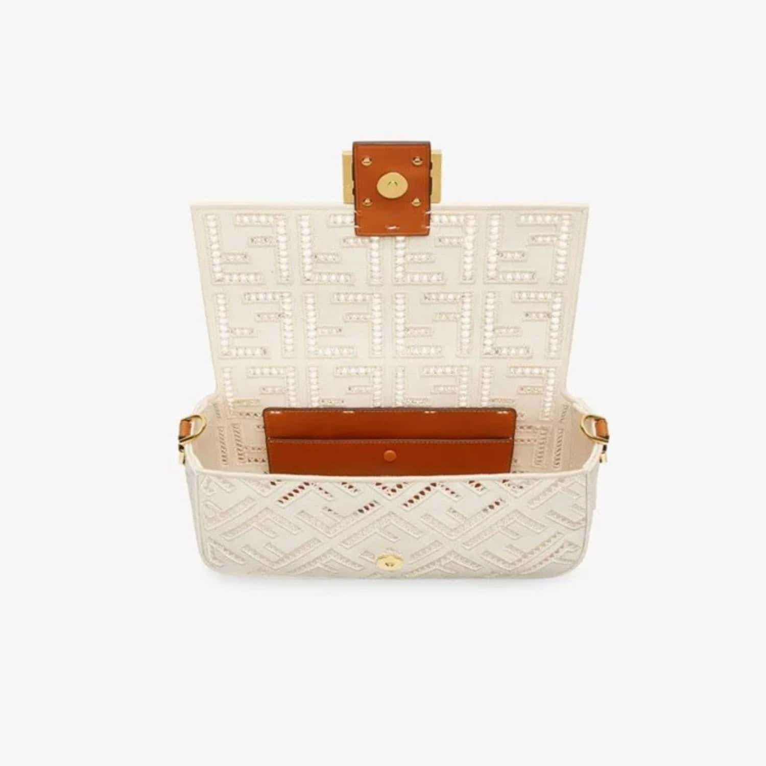 Fendi Baguette White with Embroidery Bag For Women 26cm/10.5in