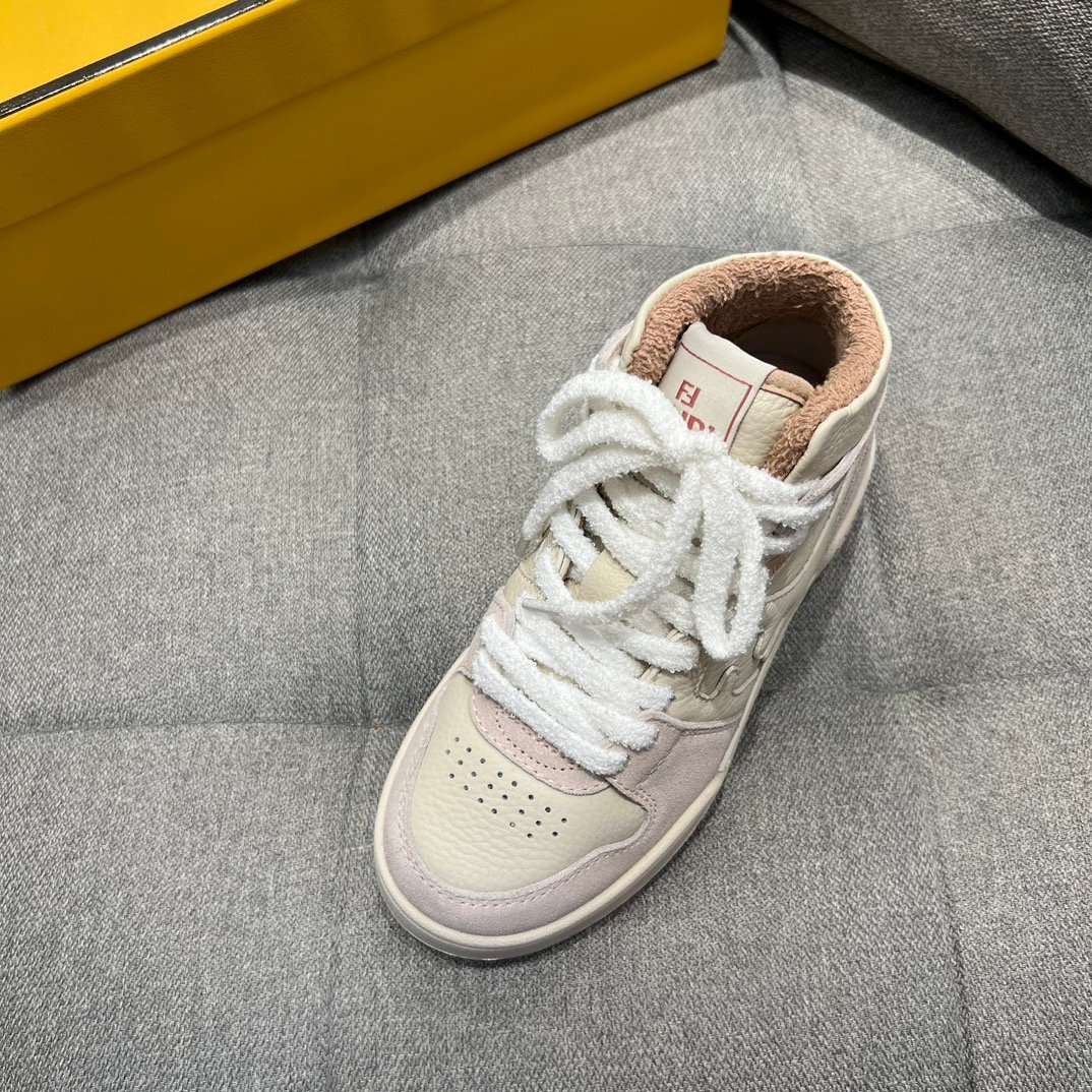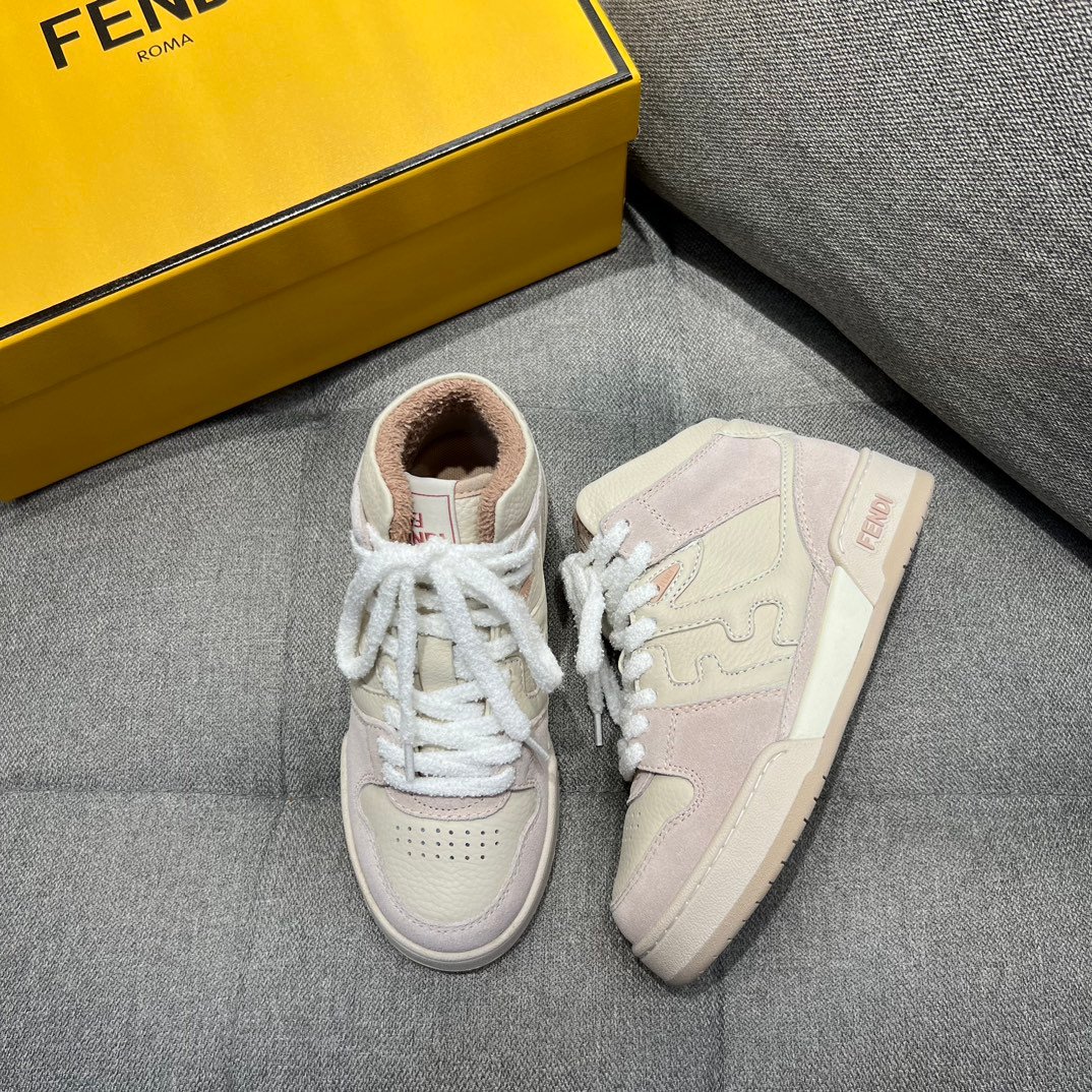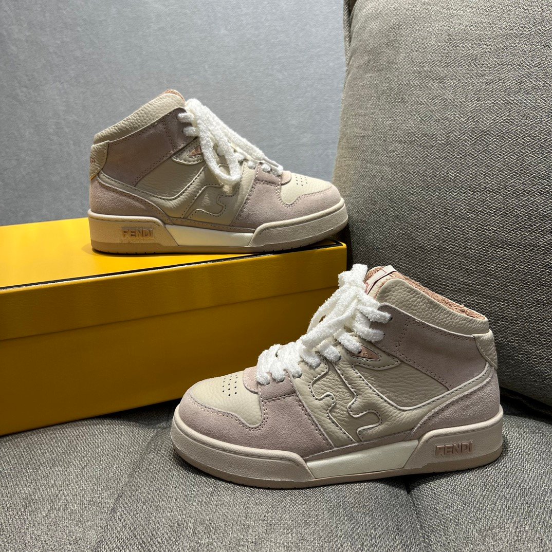 - FD Fendi Match Lace-Up High-Tops Sneakers Made of with pale gray details. Rubber sole with FENDI lettering on the side.