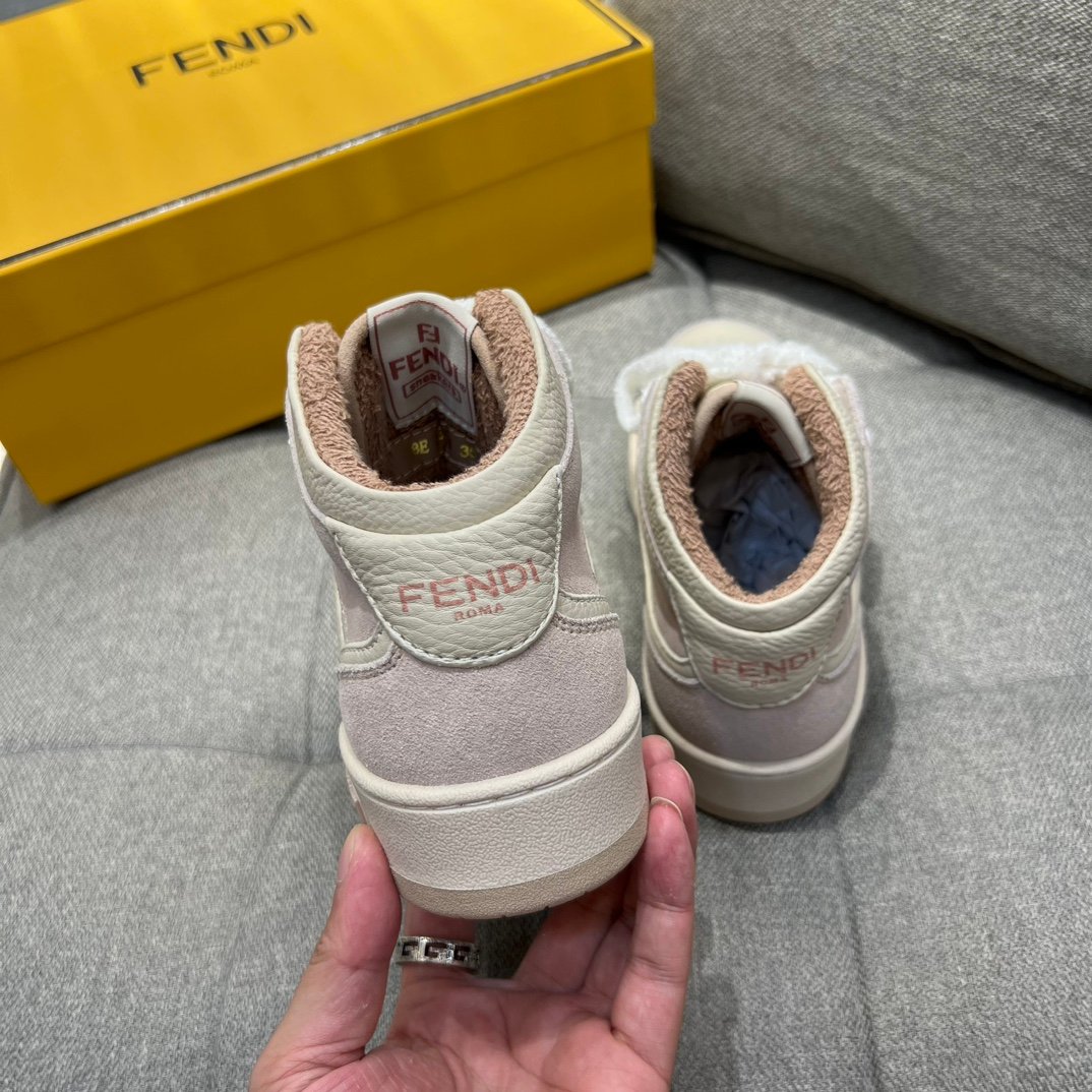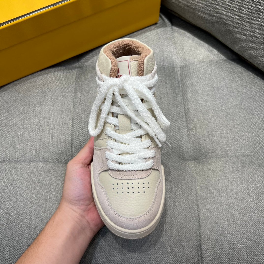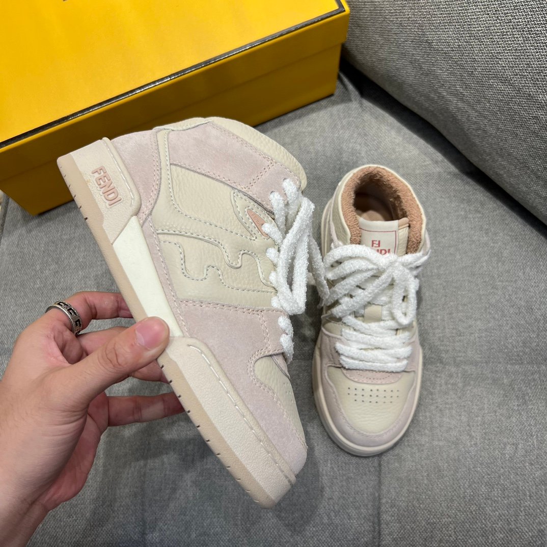- FD Fendi Match Lace-Up High-Tops Sneakers Made of with pale gray details. Rubber sole with FENDI lettering on the side.