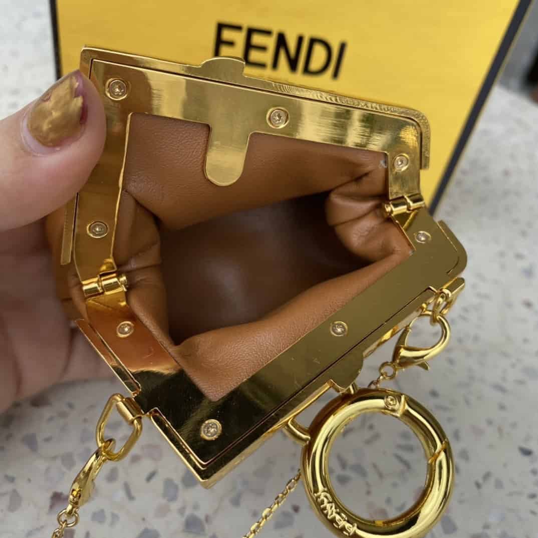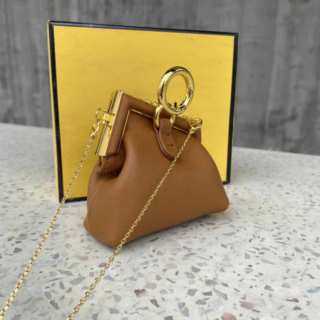 Fendi Nano First Charm Brown Bag For Woman 10cm/4in