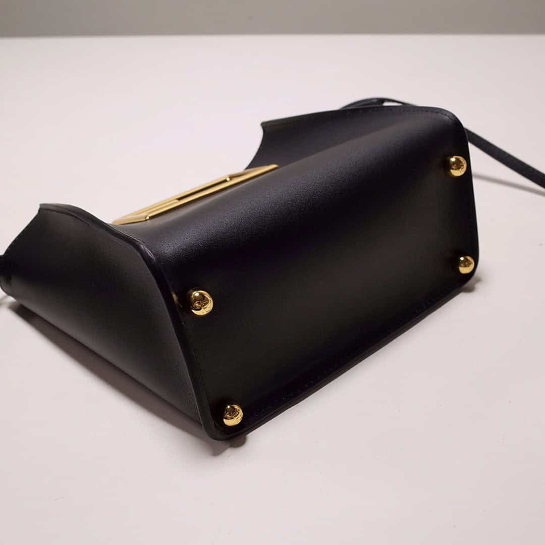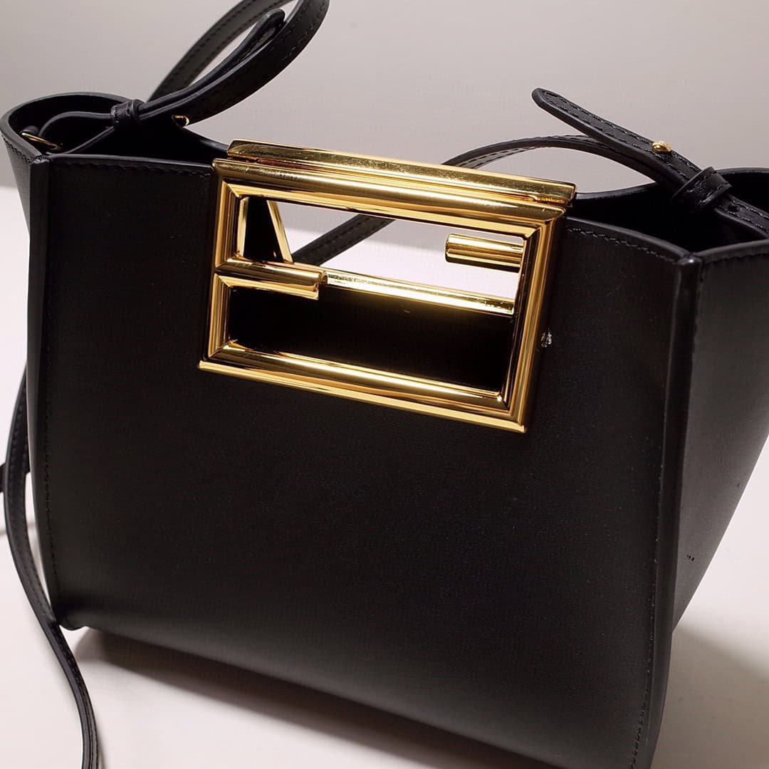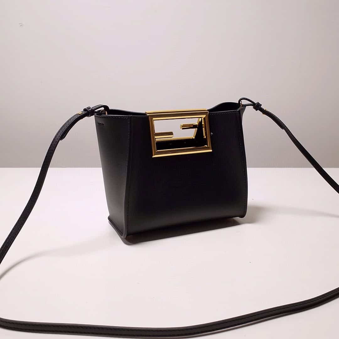Small Fendi Way bag made of black leather with oversize FF logo metal handles.