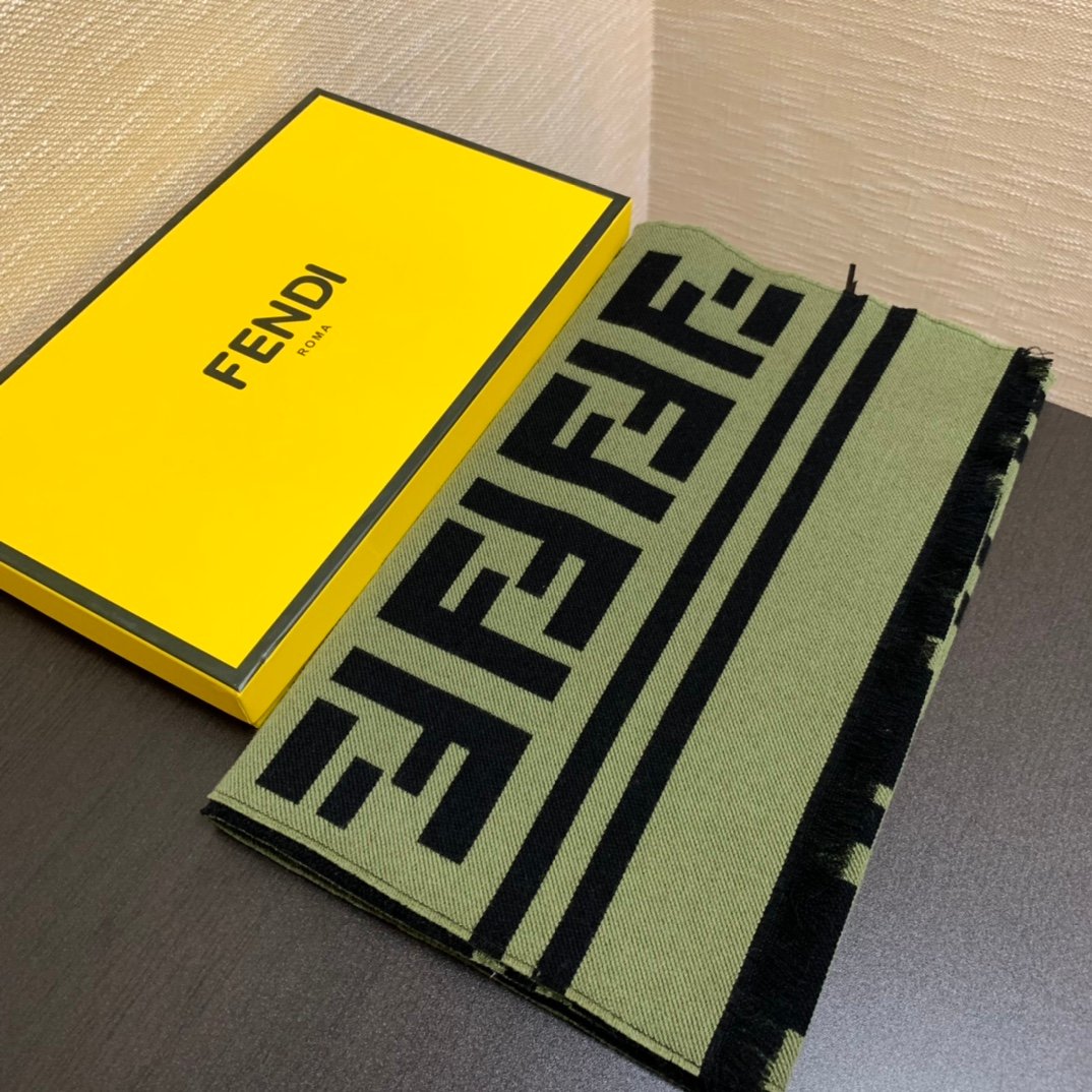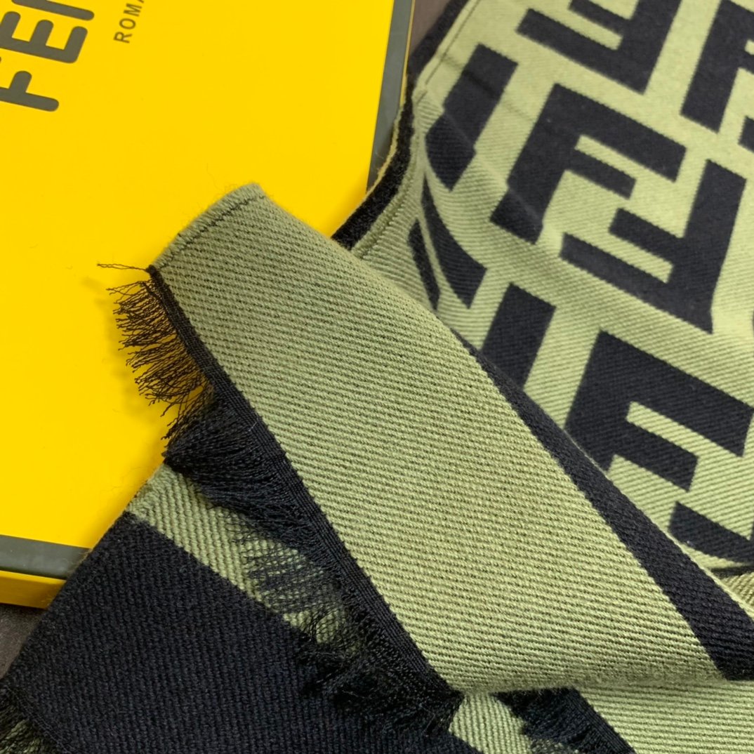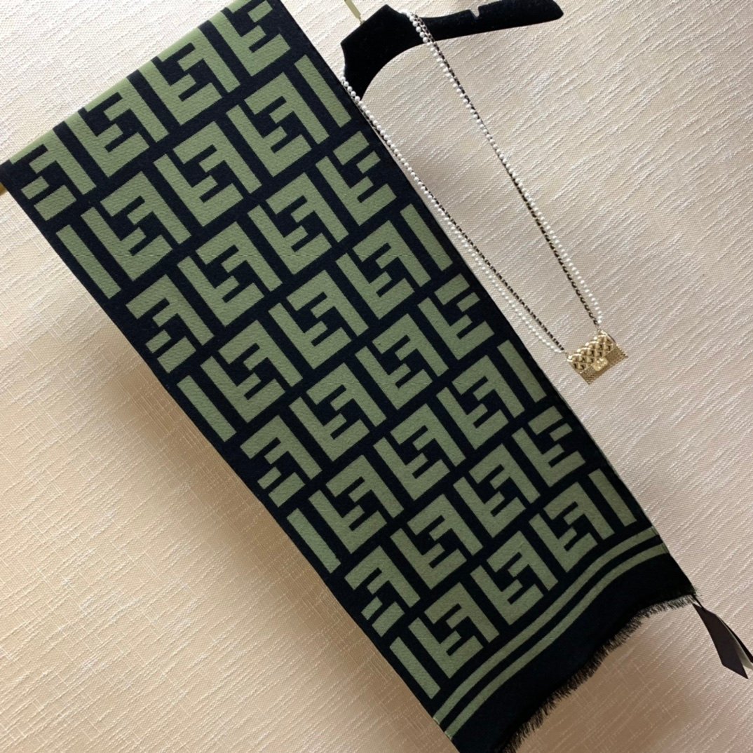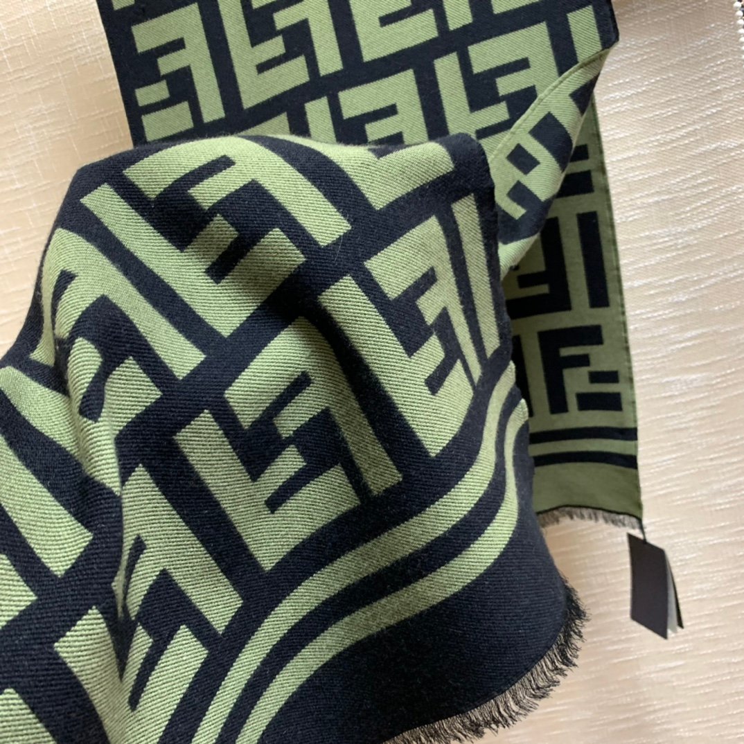Fendi Wool And Silk Green and Black Scarf 180cm/71in