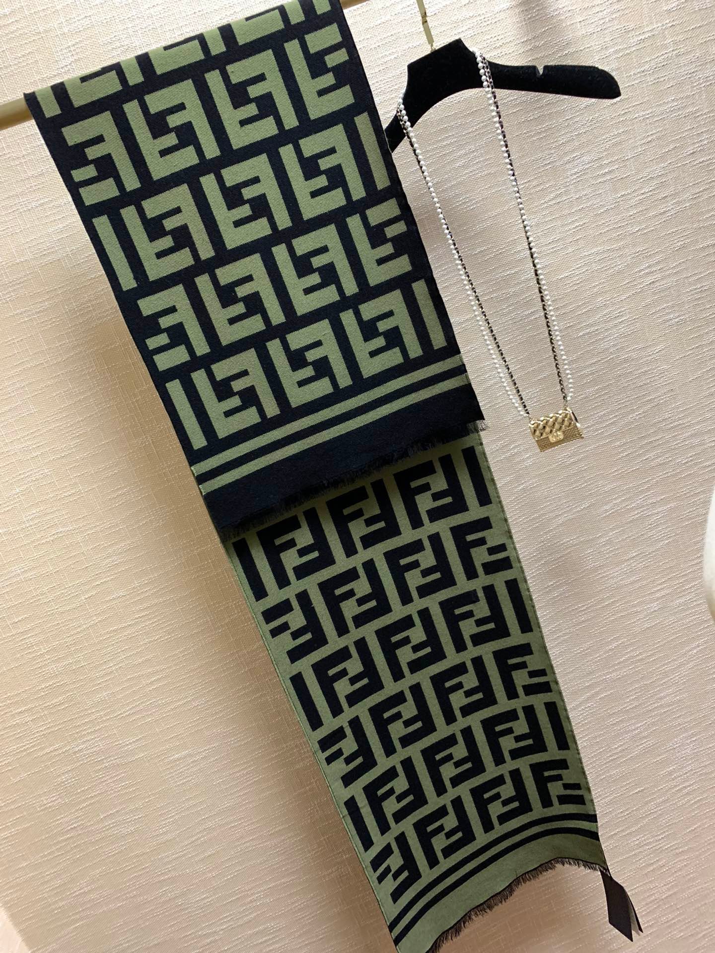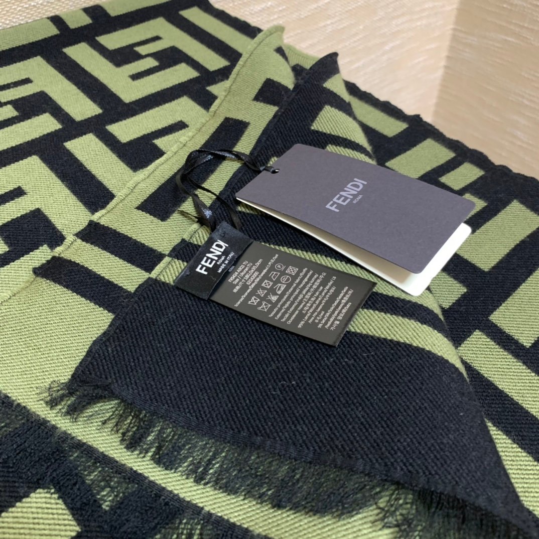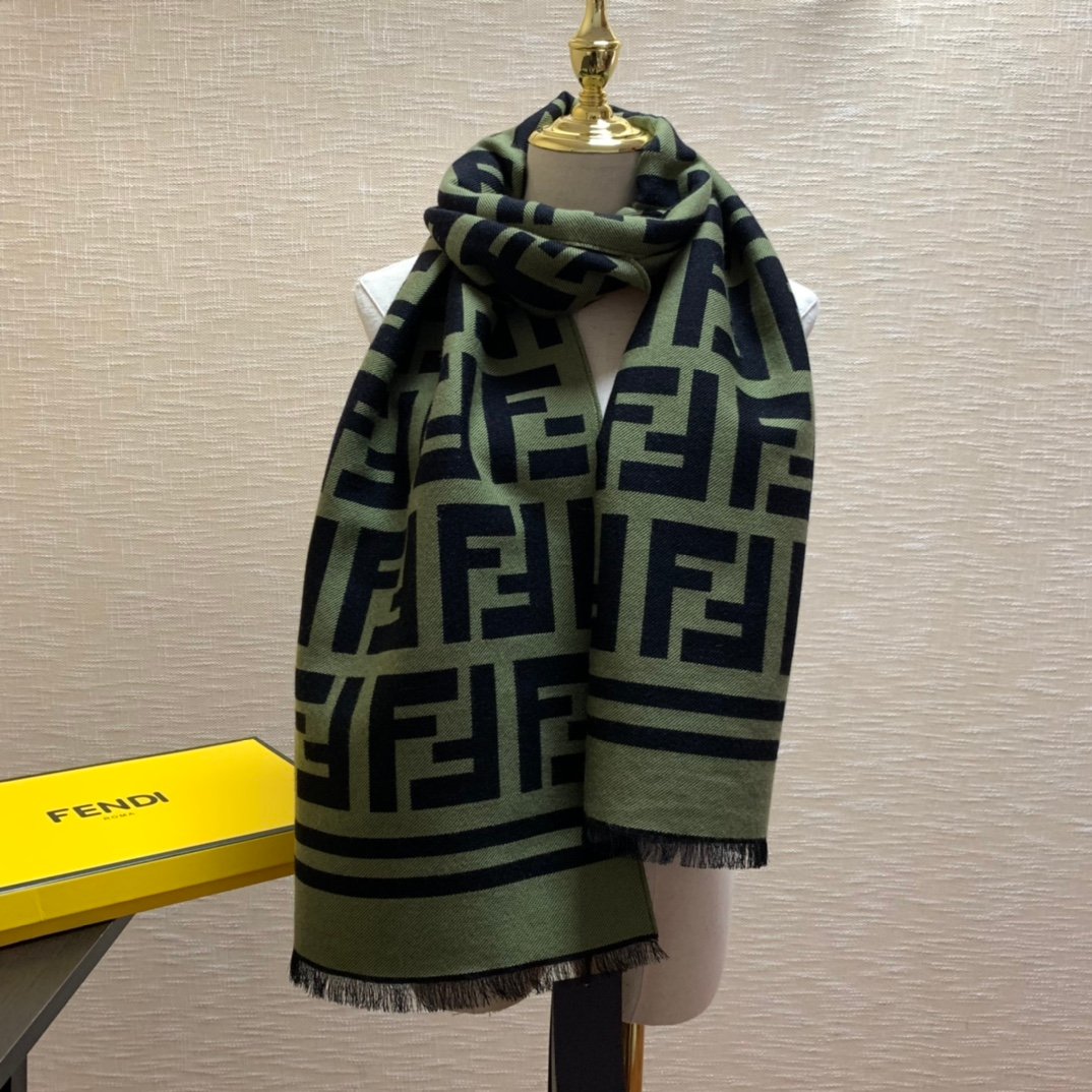Fendi Wool And Silk Green and Black Scarf 180cm/71in