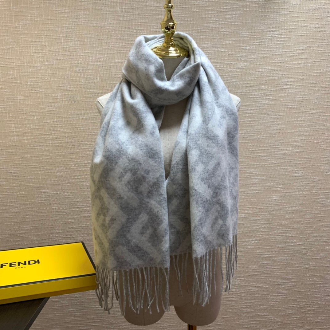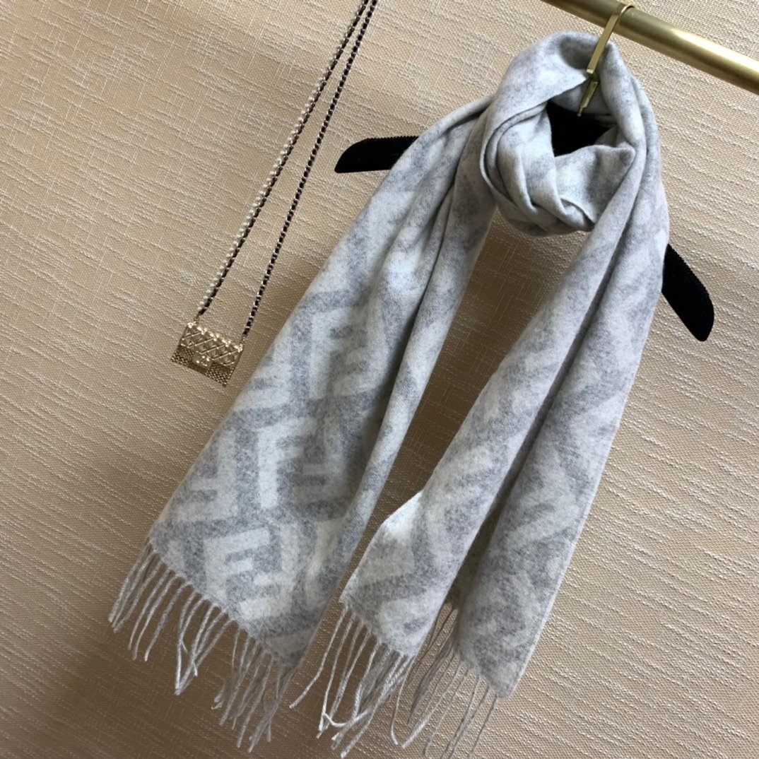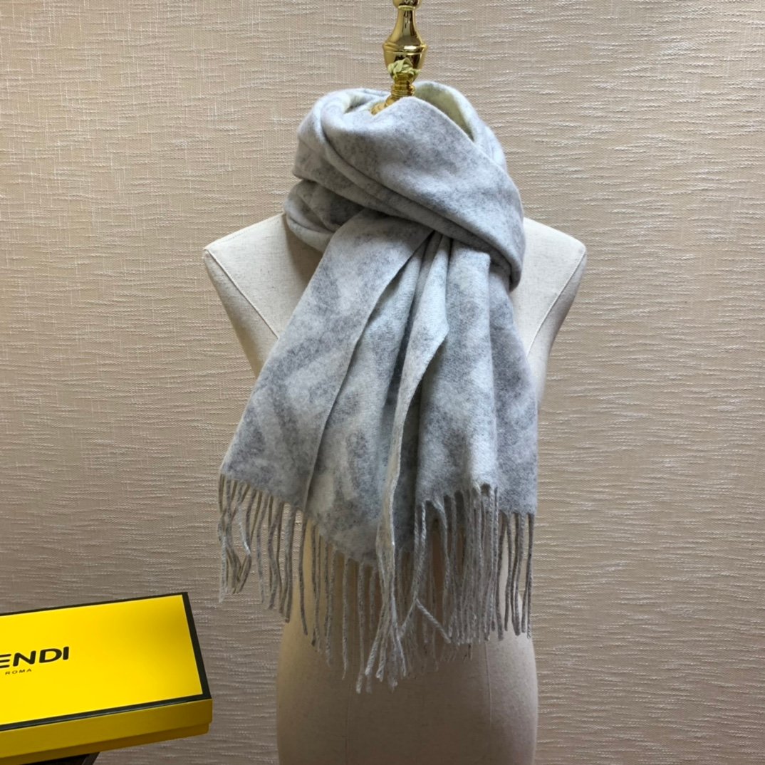 Fendi Wool And Silk Light Grey Scarf 180cm/71in