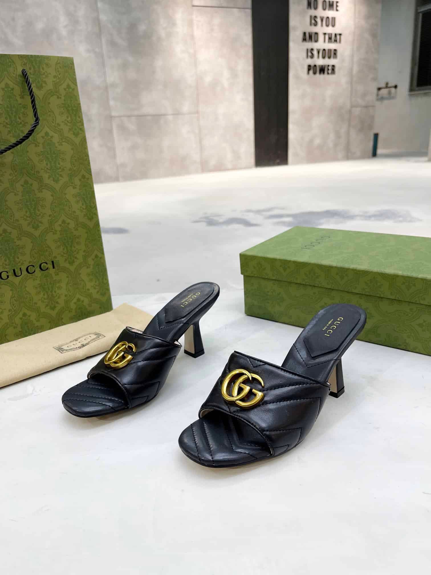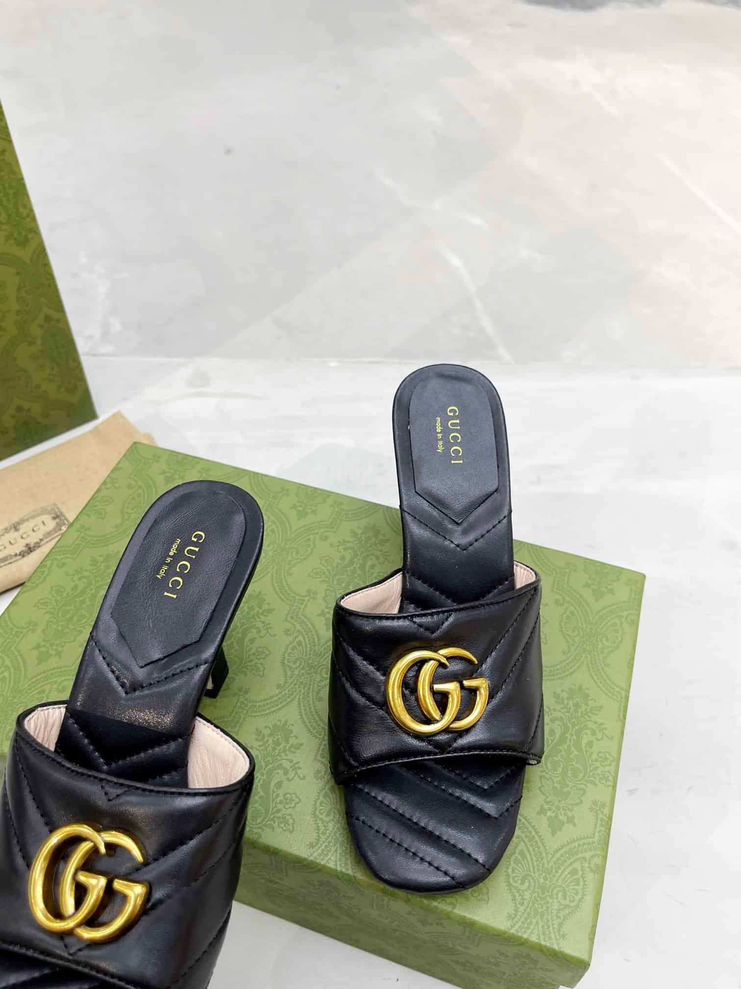 Gucci Double G Slide Sandal Chevron Matelasse Black For Women GG ?674839 BKO00 1000