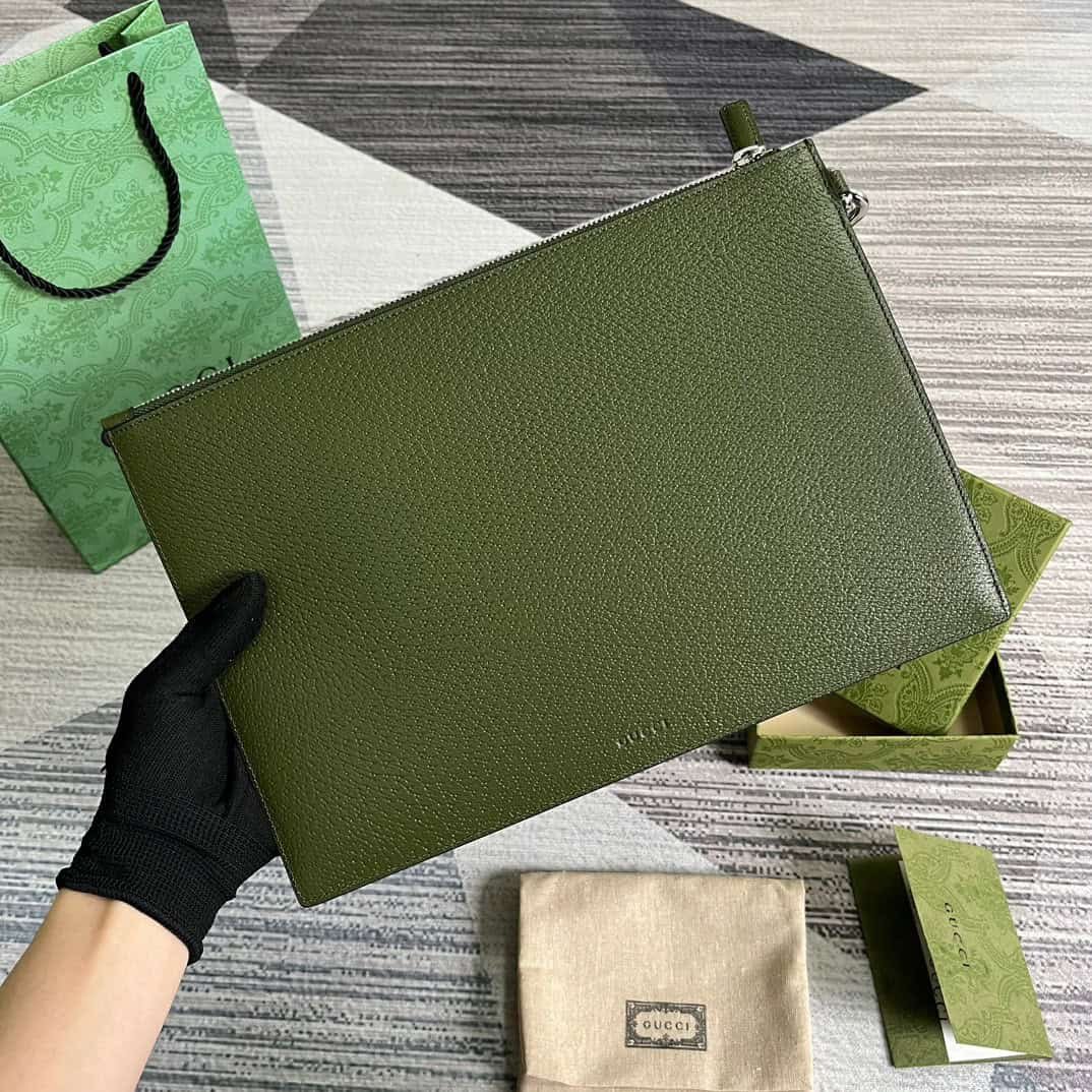 - The signature Double G hardware is reimagined season after season, successfully demonstrating Gucci’s way of connecting archival symbols to a modern aesthetic. The hardware is presented in tonal resin as part of Cruise 2023 Gucci Cosmogonie, resulting in small accessories for a contemporary wardrobe. This pouch with removable wrist strap is presented in grey.