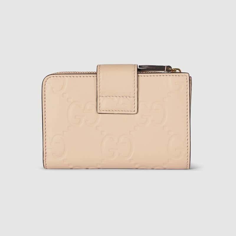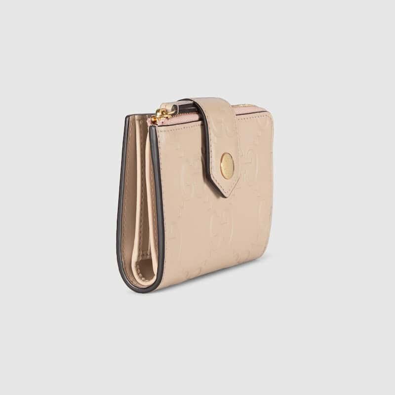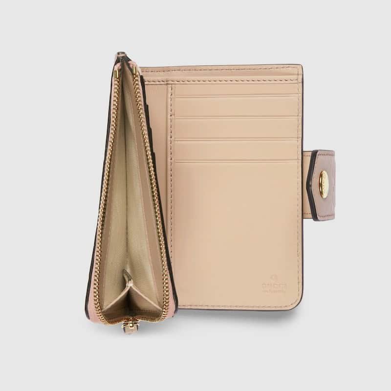 - The House’s most emblematic motifs are portrayed as timeless yet ever-evolving symbols throughout the latest collection. Completely multifunctional, this medium wallet features card slots, a zip pocket and compartments on the inside. The iconic GG leather in light beige defines the style with its unmistakable touch.