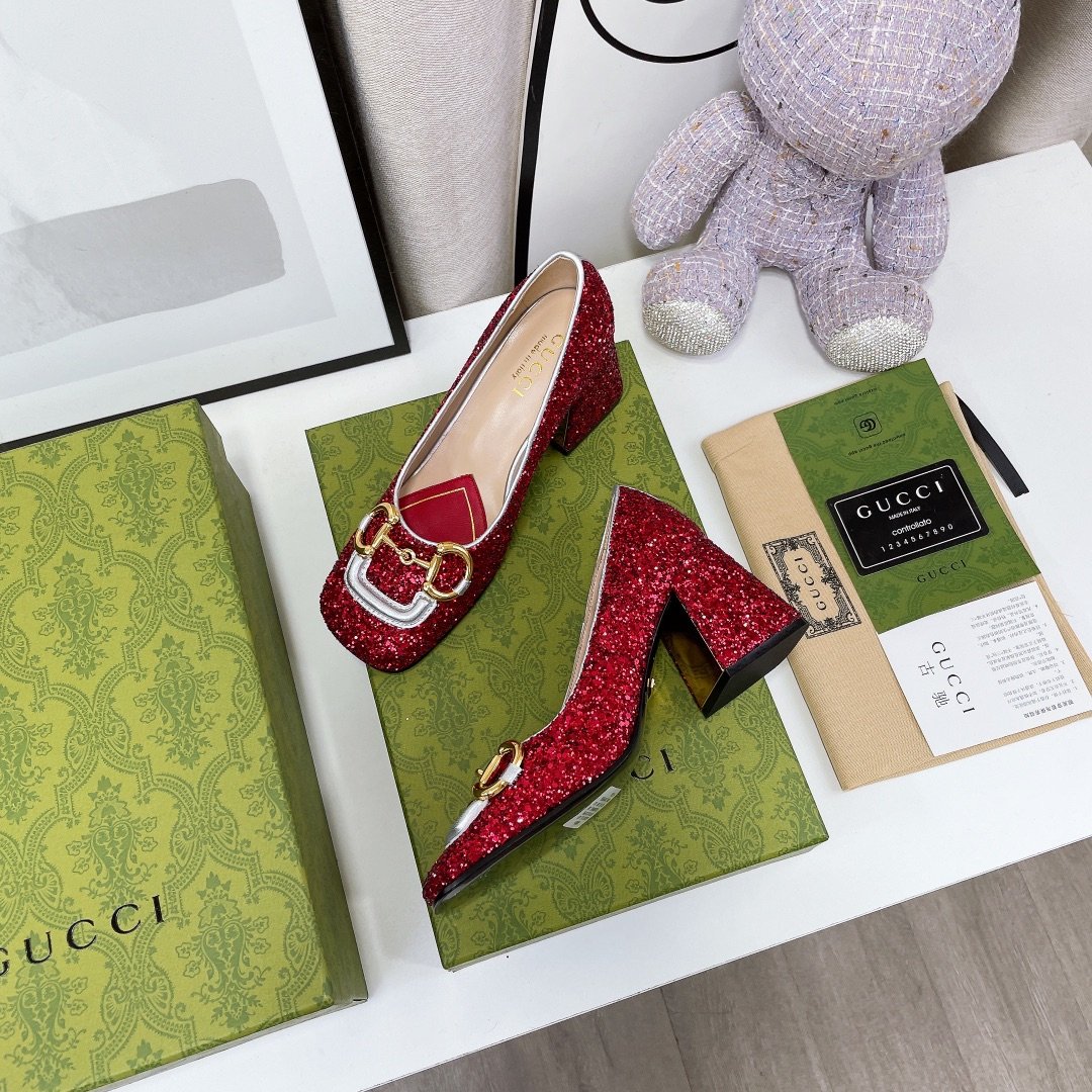 Be the first to review “Gucci Lovelight Mid-Heel Crystal Ballet Flat With Horsebit Red For Women GG”