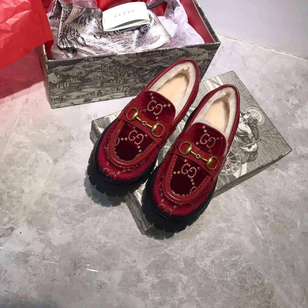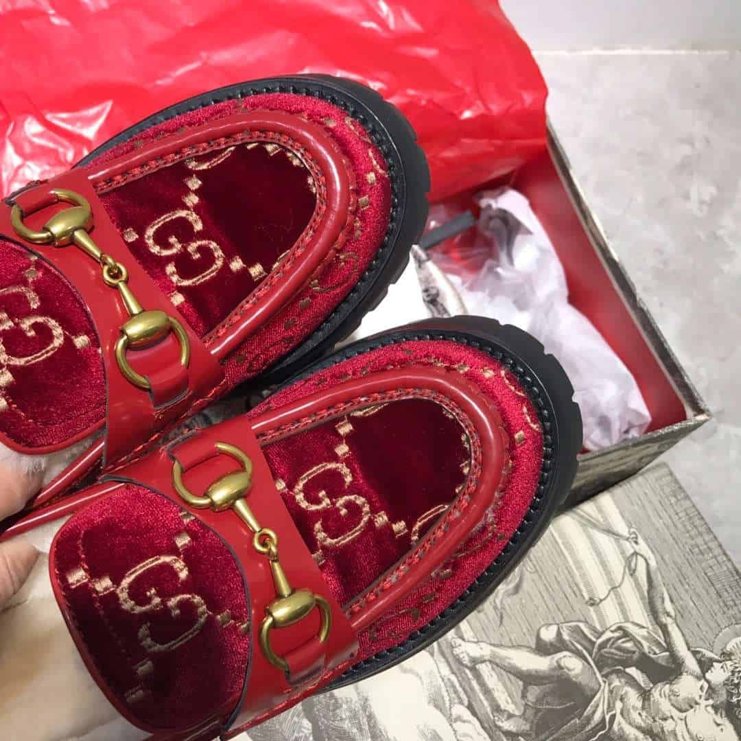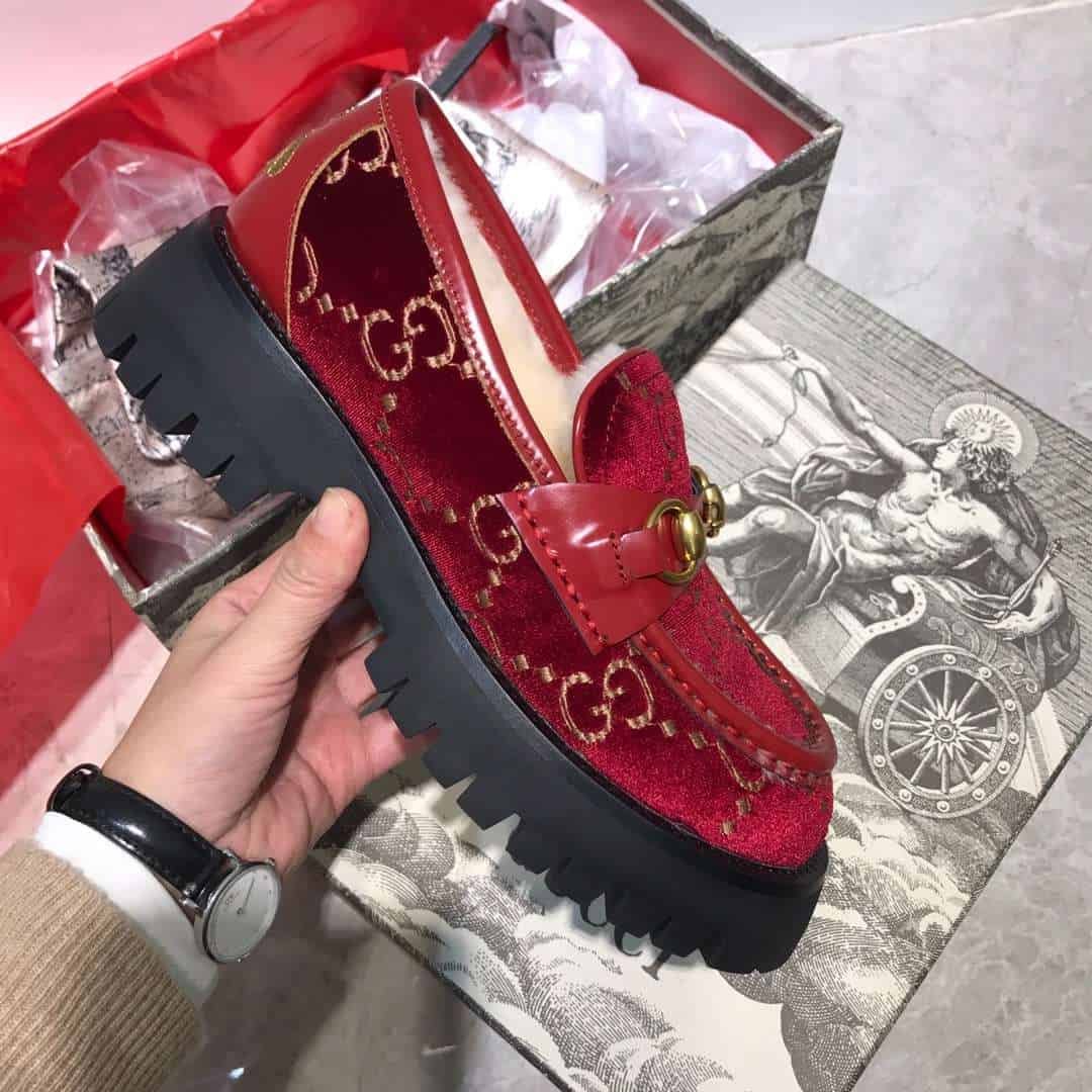 Gucci Lug Sole Horsebit Accent Loafers Red
