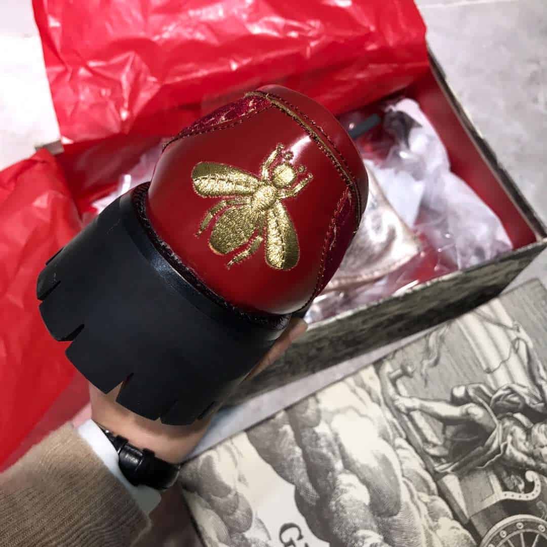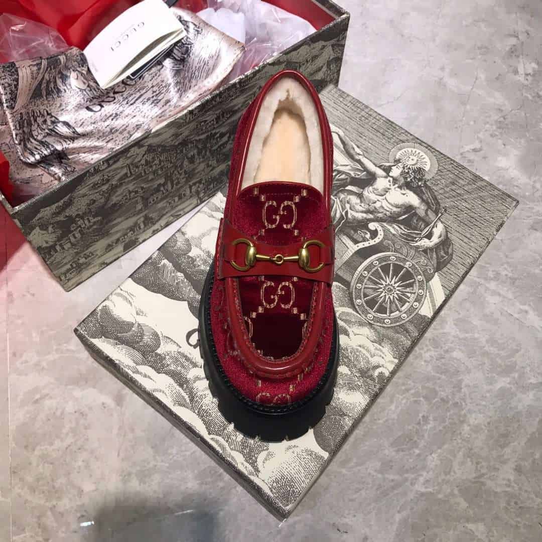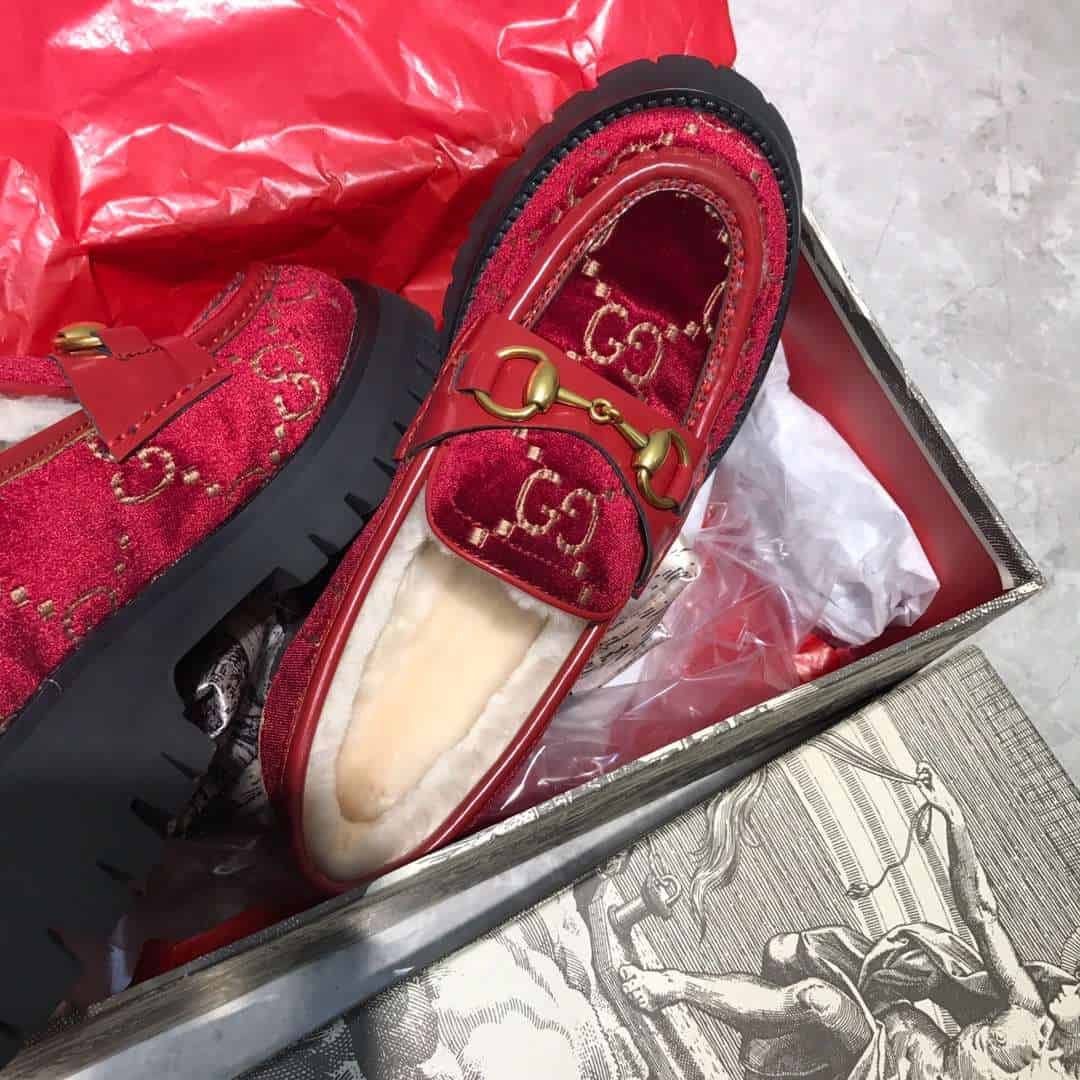 Gucci Lug Sole Horsebit Accent Loafers Red