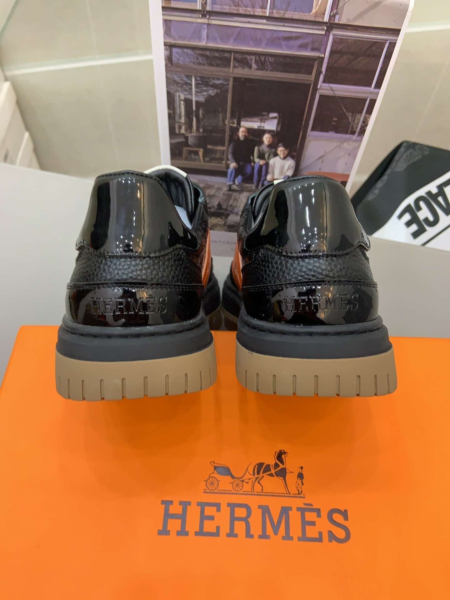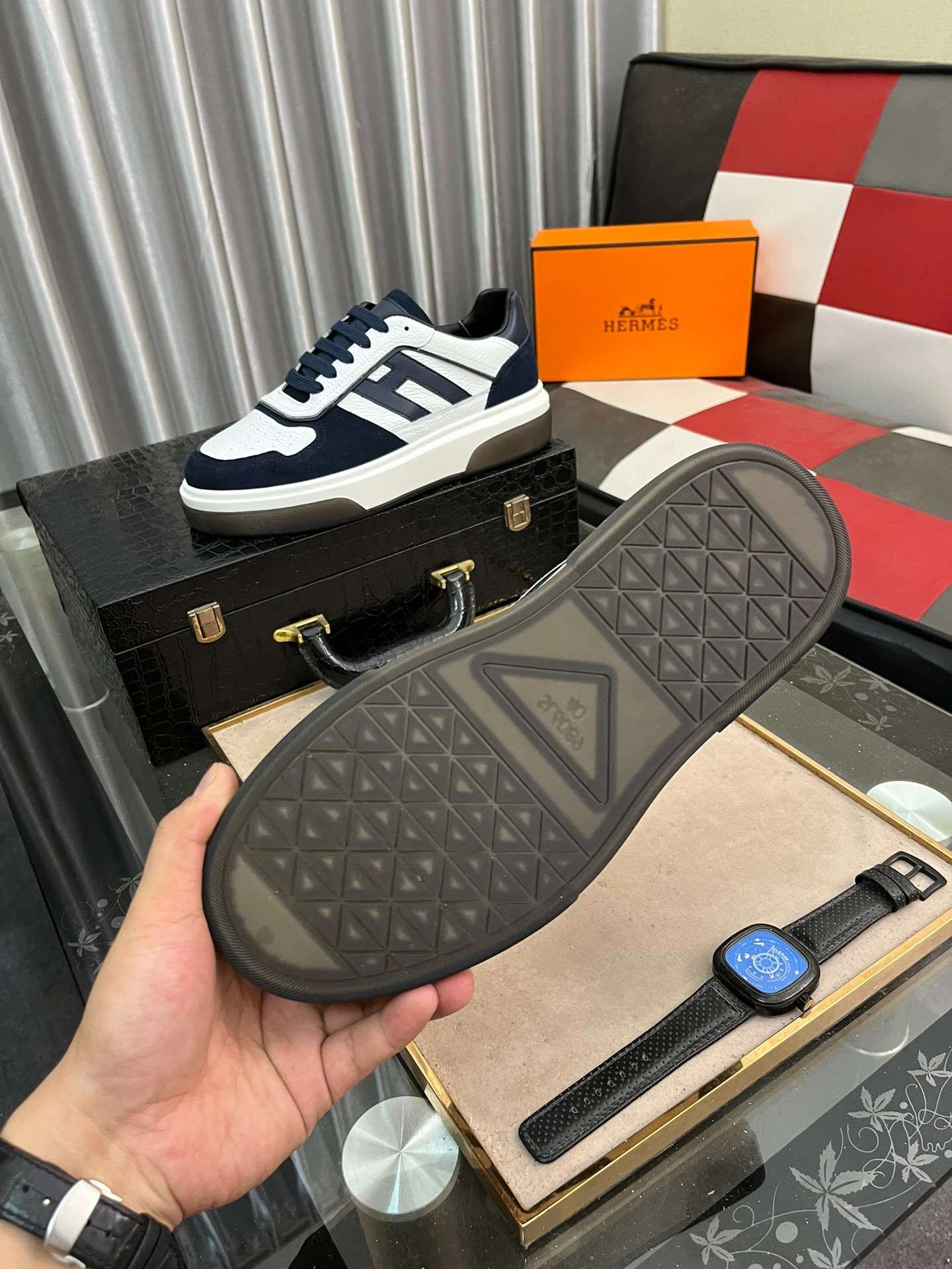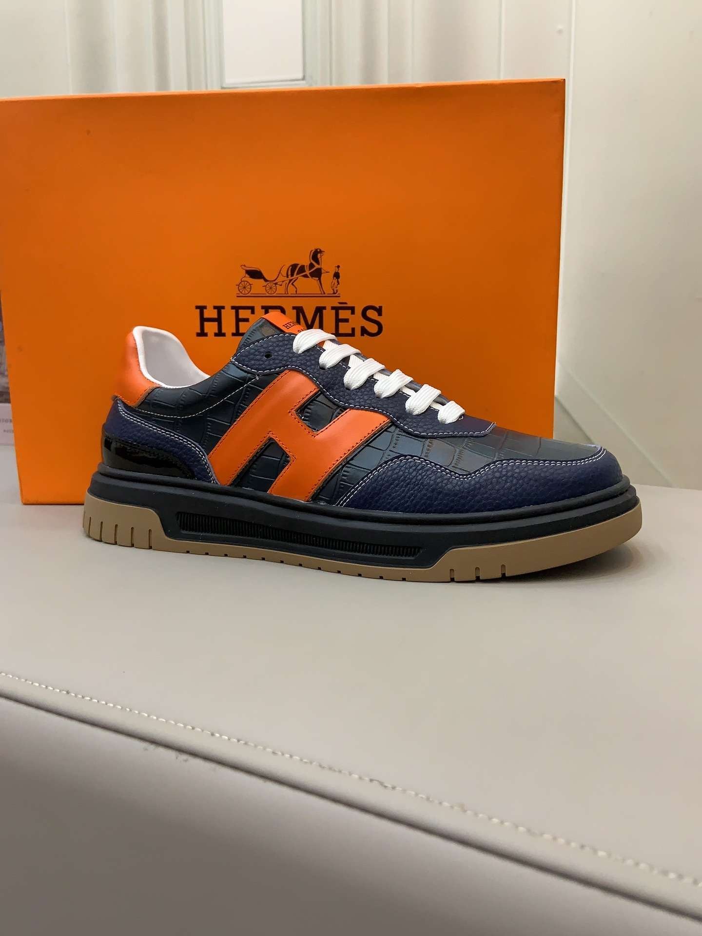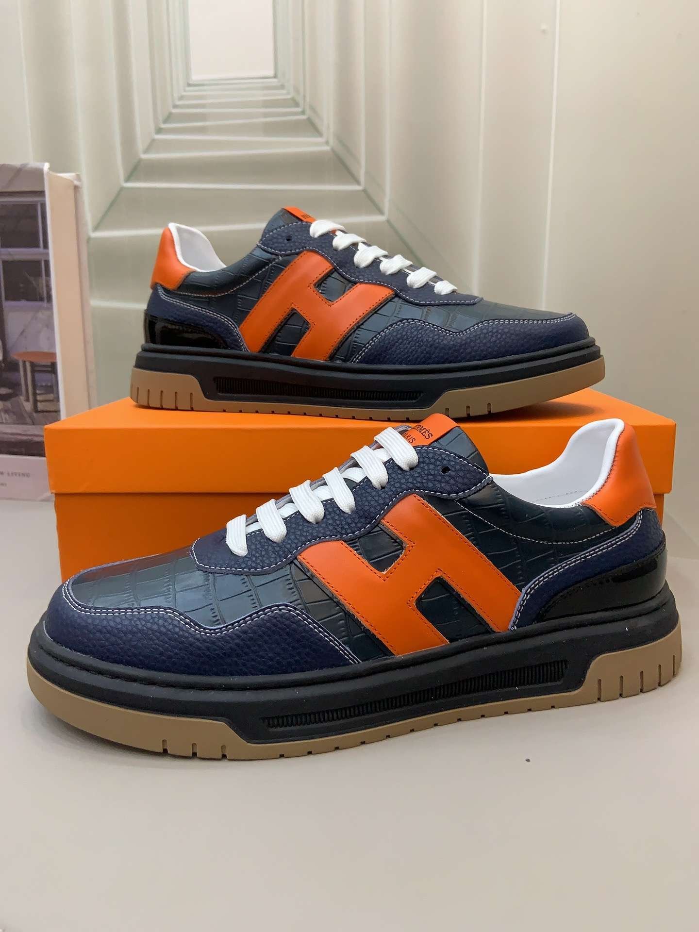 - Minimalist sneaker in printed Epsom with iconic orange sole