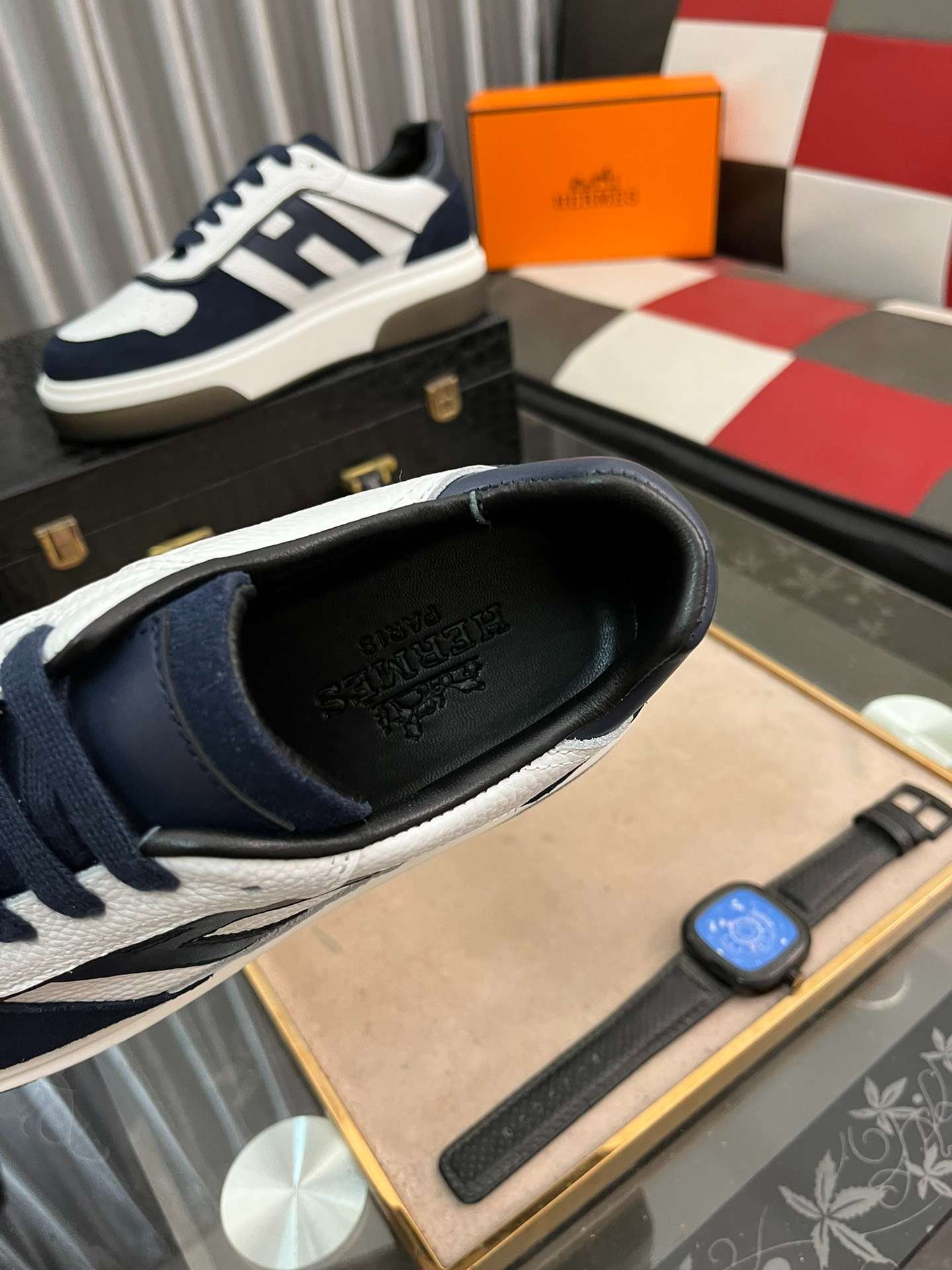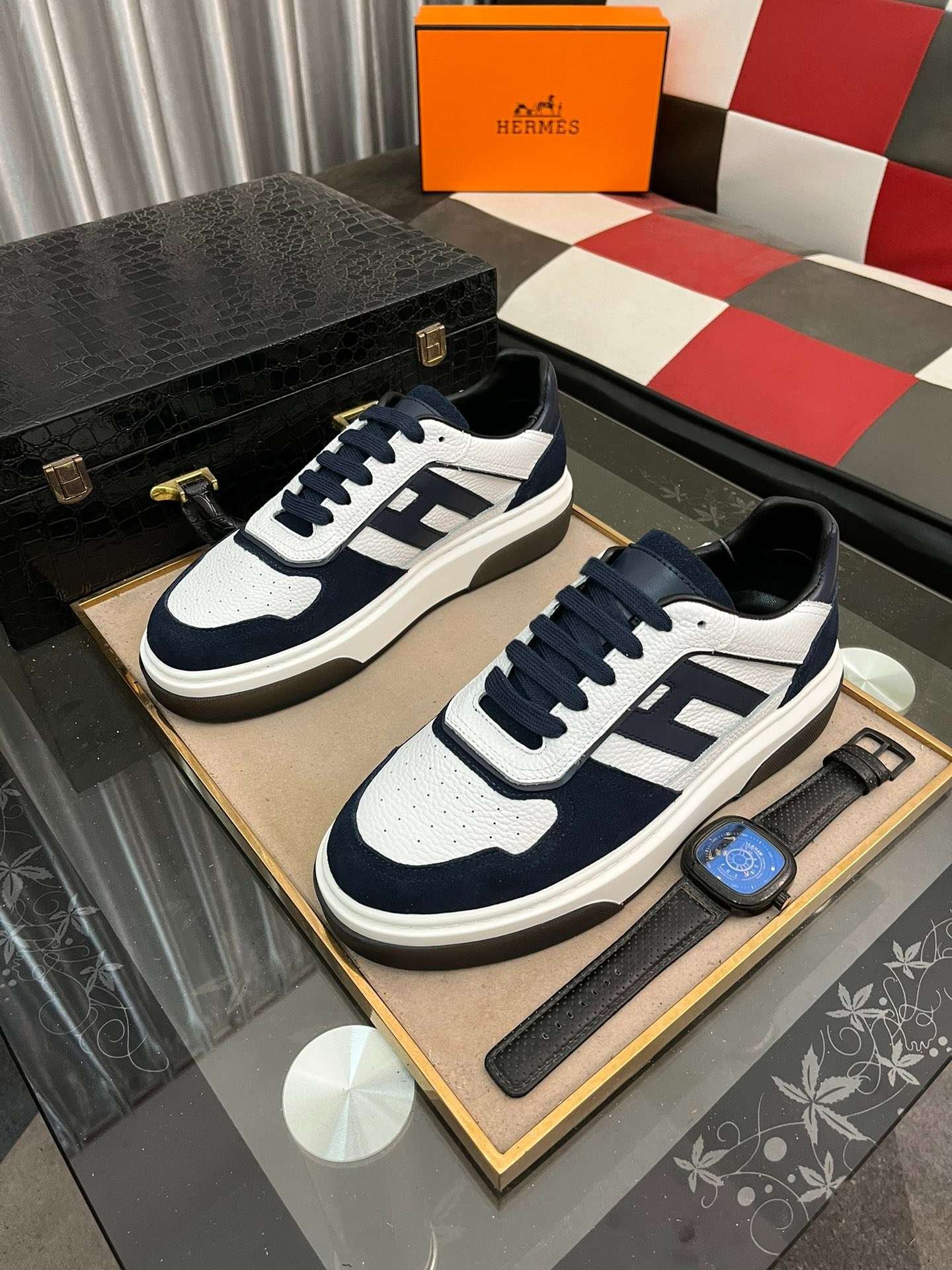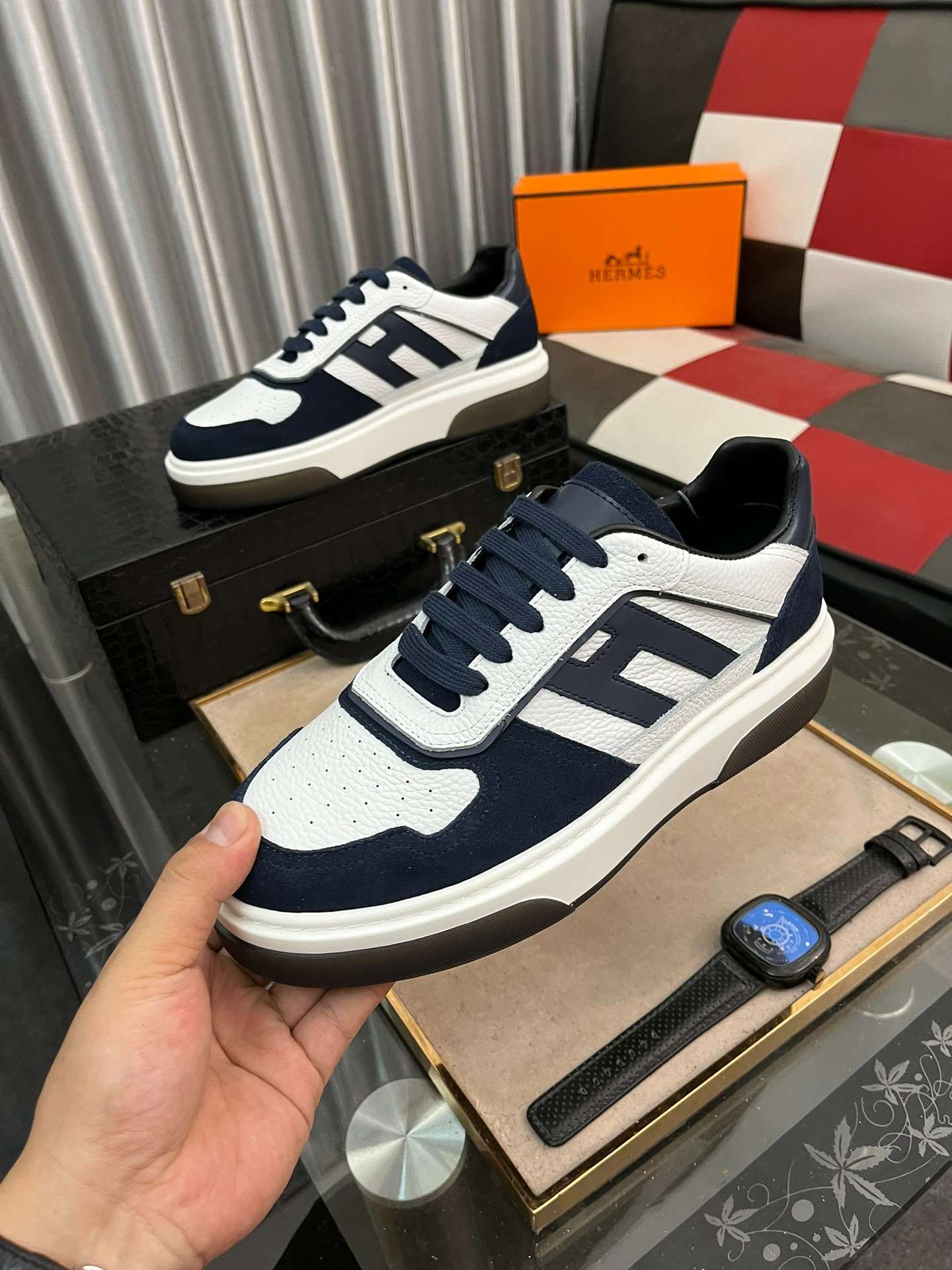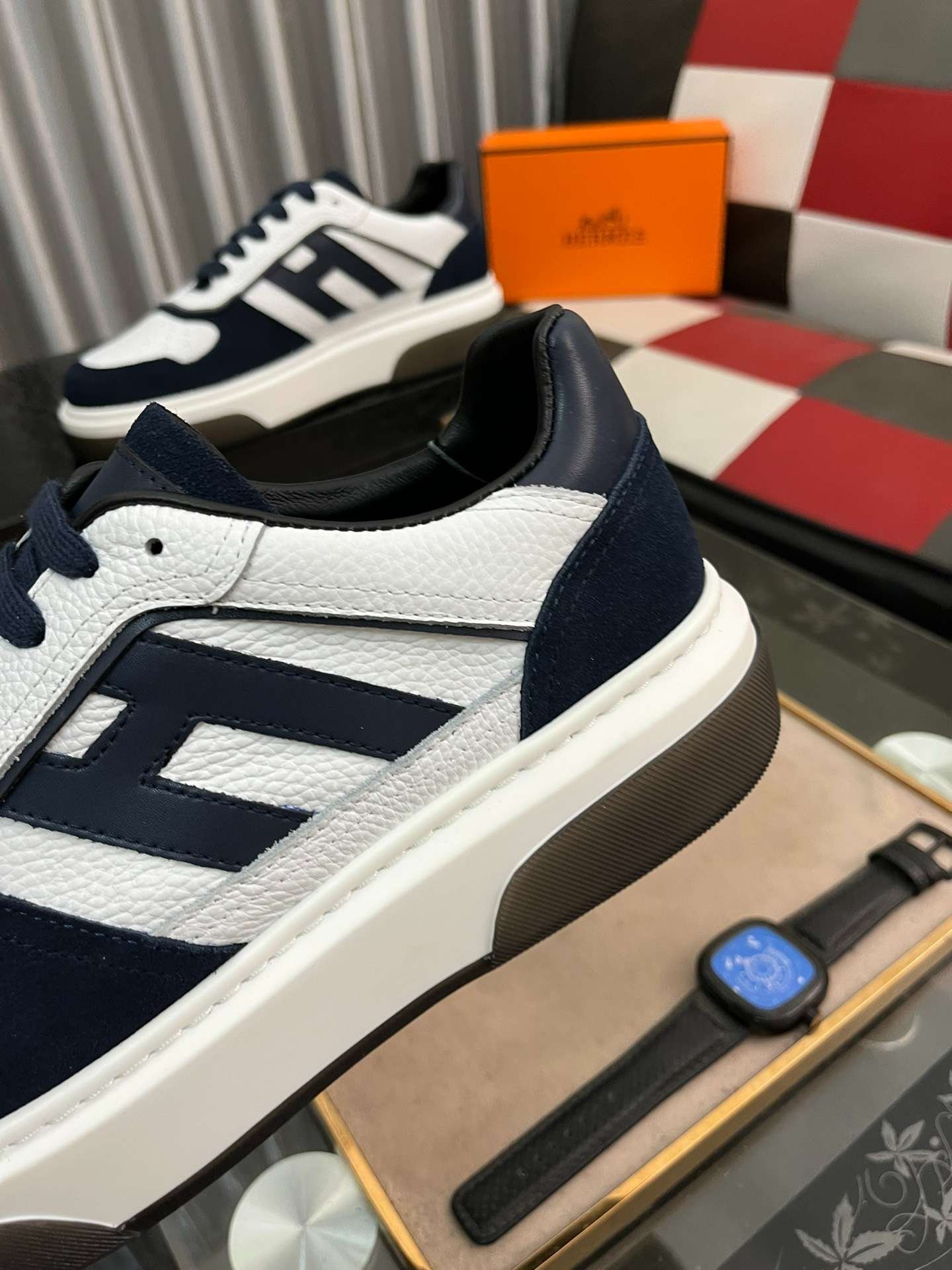 - Minimalist sneaker in printed Epsom with iconic orange sole