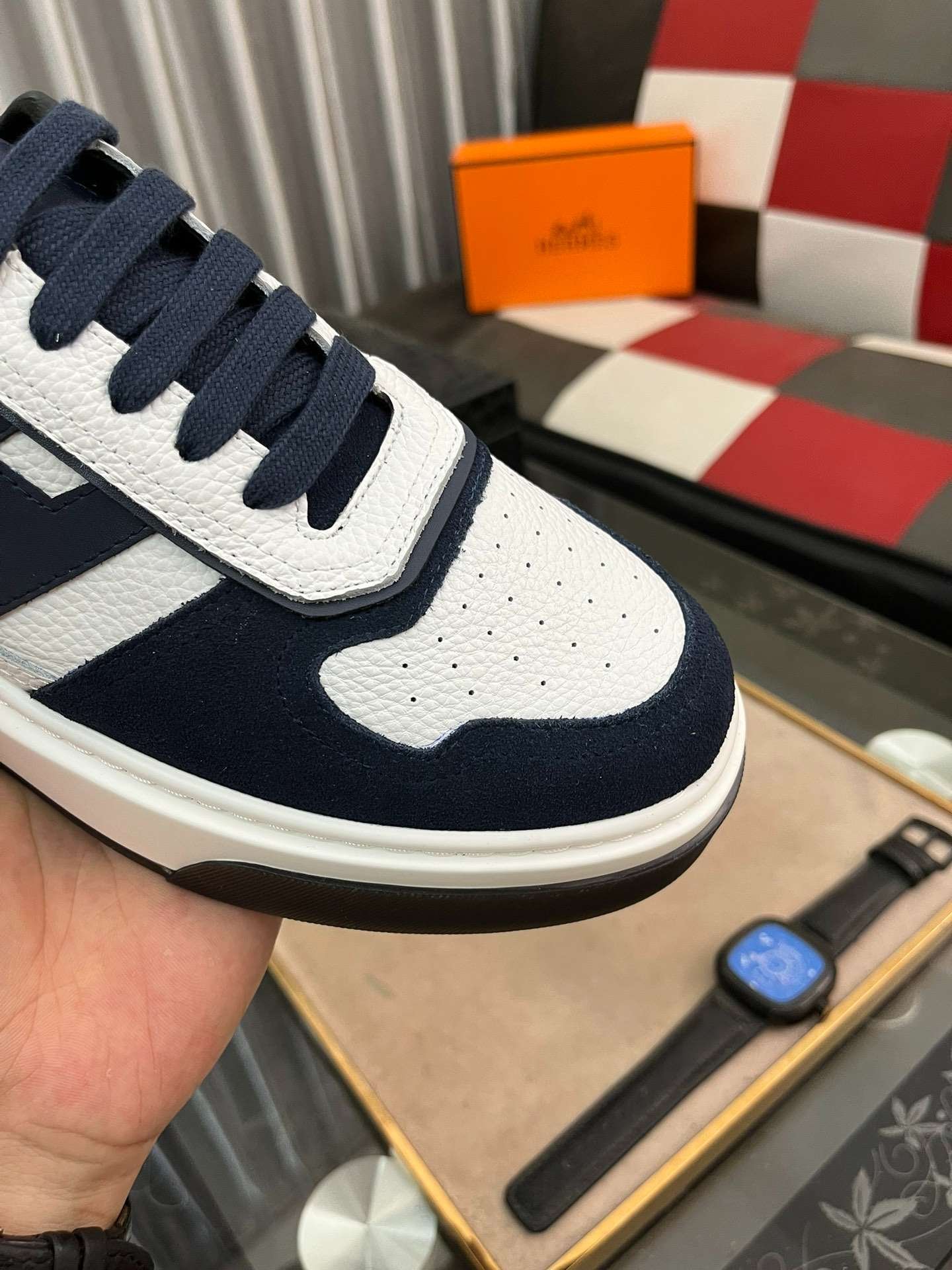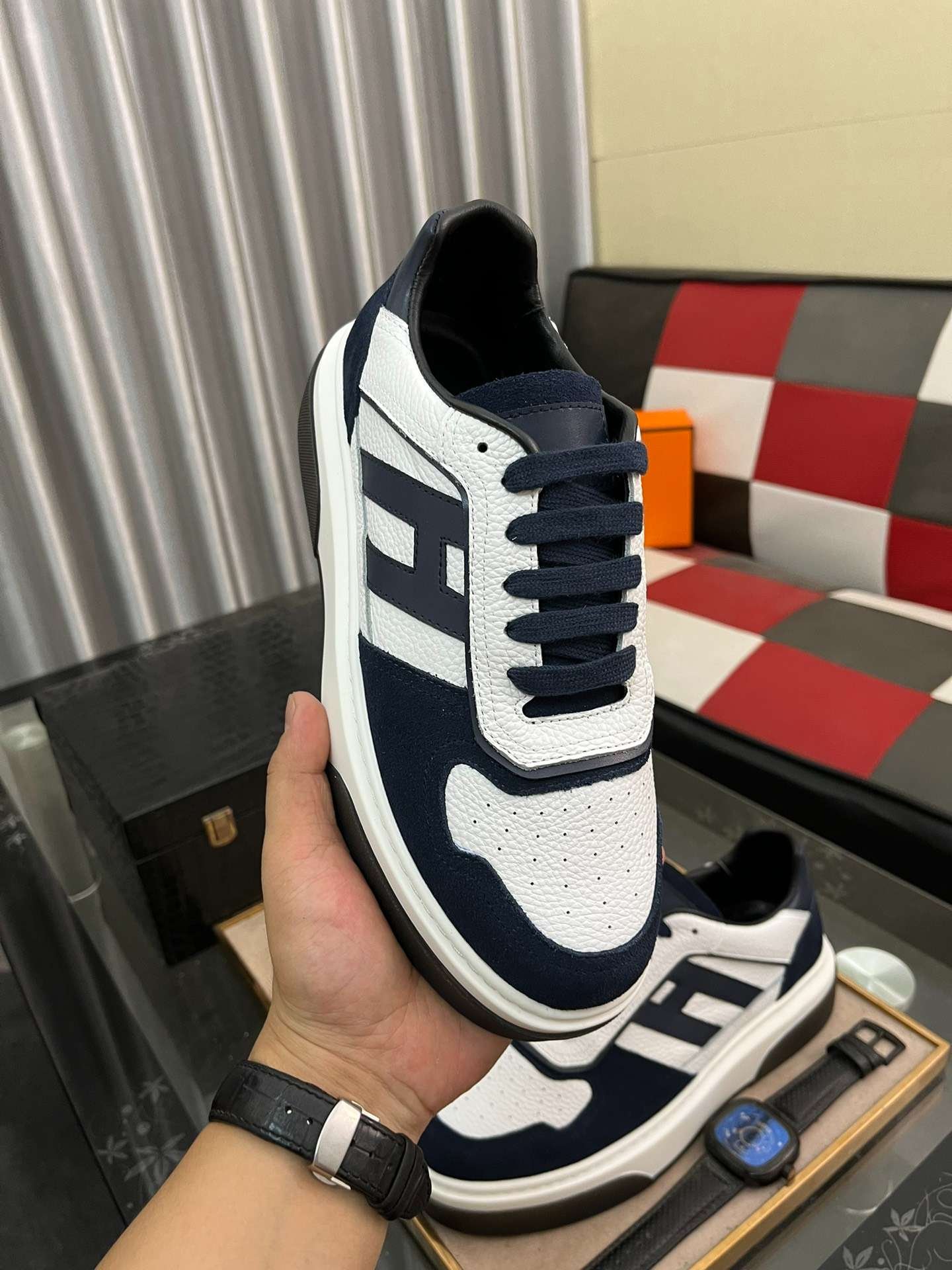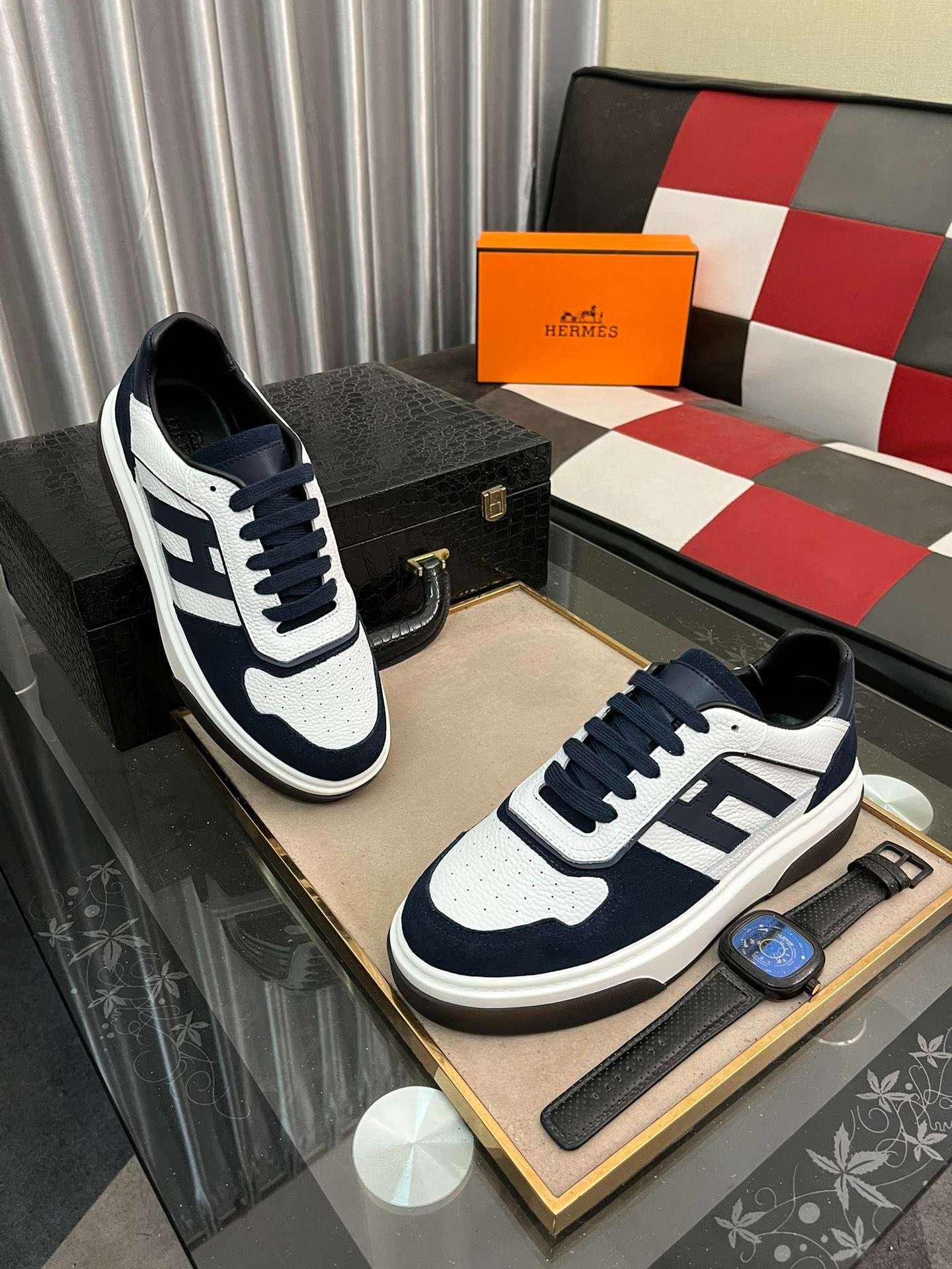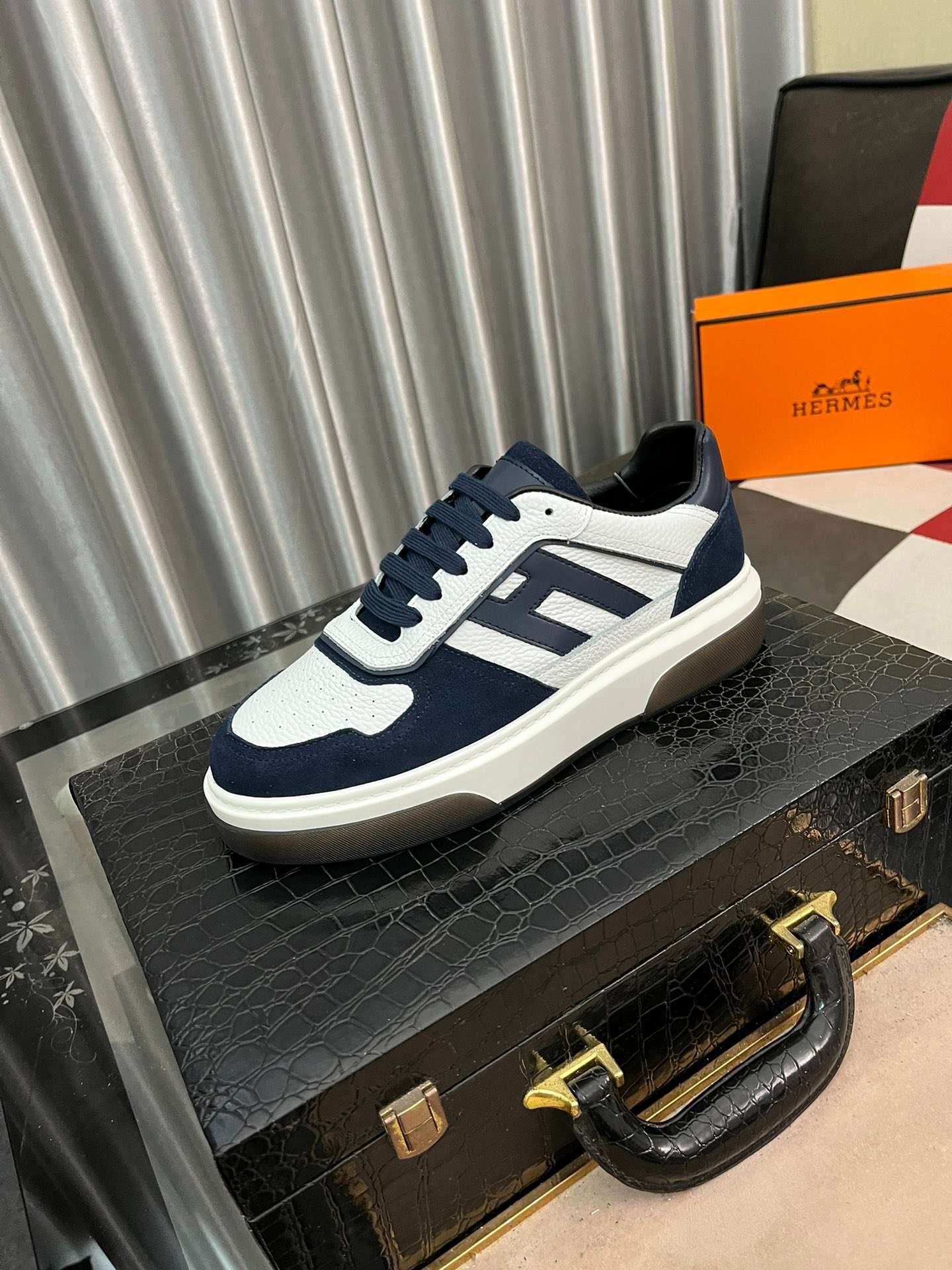 - Minimalist sneaker in printed Epsom with iconic orange sole