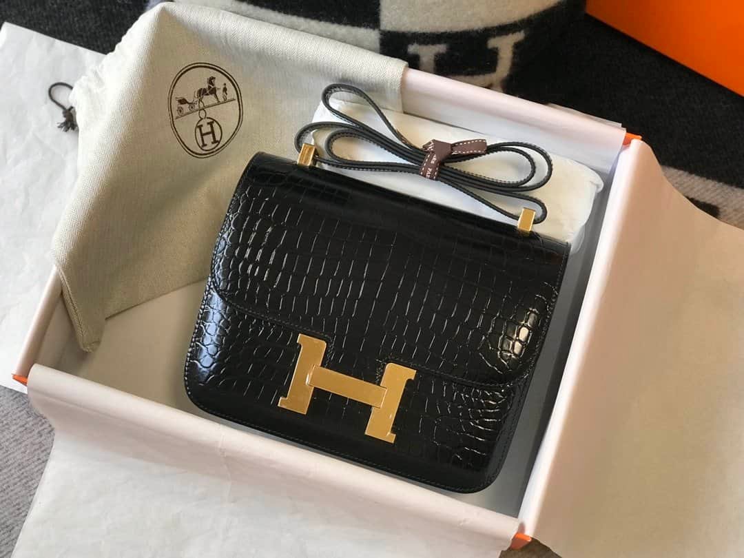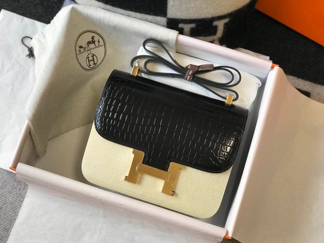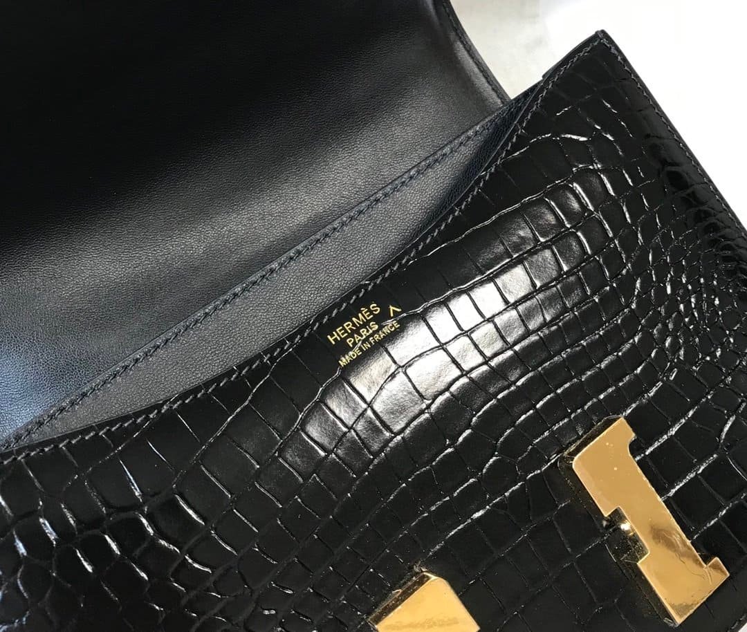Hermes Constance 23 Pattern Crocodile Black For Women, Women’s Handbags, Shoulder Bag 9in/23cm