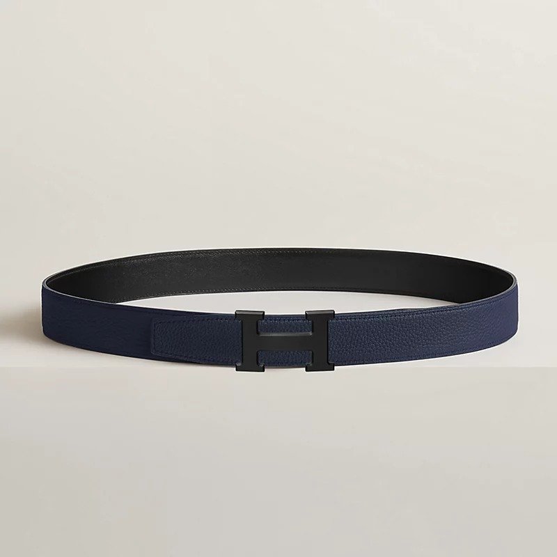 Hermes H Belt Buckle And Reversible Leather Strap 32 mm Noir/Bleu Nuit – H080029CY89