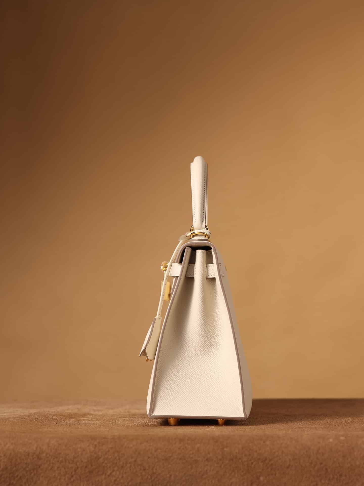 Hermes Kelly Epsom Gold Tone Lock Bag Cream 9,8in/25cm