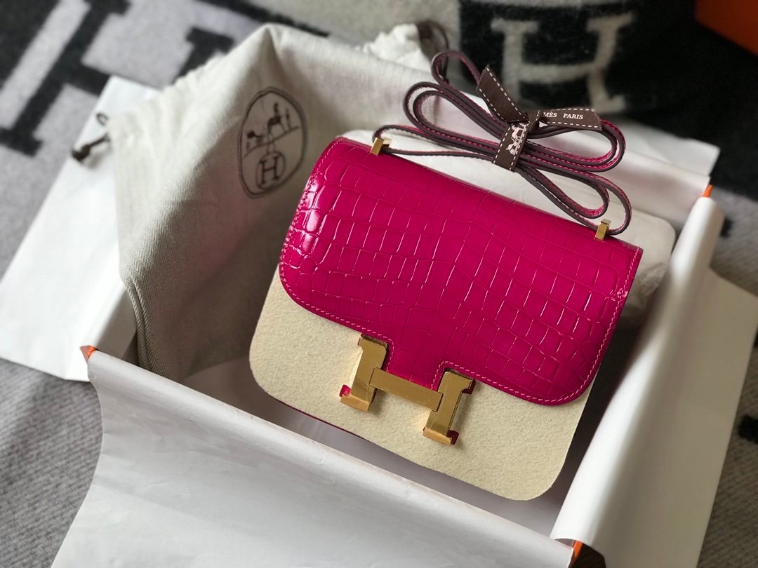 Hermes Mini Constance Bag Pink For Women Gold Color Hardware 7.1in/18cm