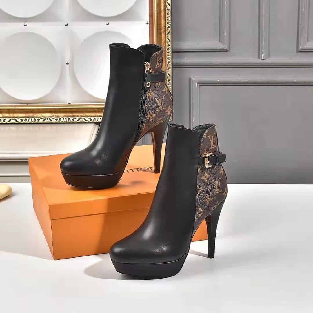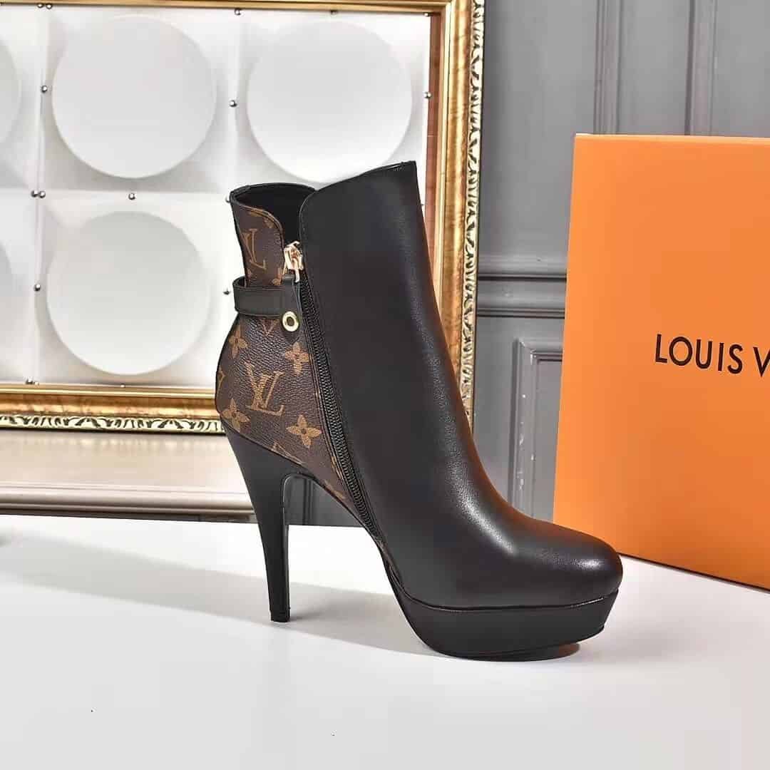 Louis Vuitton Afterglow Platform Ankle Boot Patent Monogram material Black For Women LV 1A9SEE