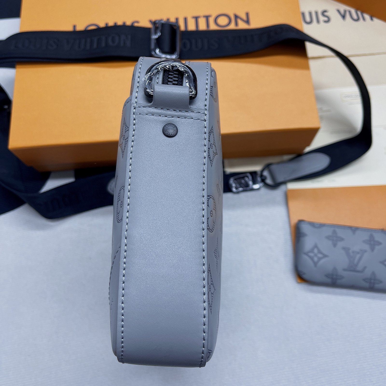 The Duo Messenger gets a fresh modern look with Monogram Shadow in a subtle shade of anthracite gray. Louis Vuitton?s famous Monogram pattern is embossed on supple calf leather for a sophisticated signature touch. And its removable coin purse on the strap is perfect for carrying change, cards and other small essentials.