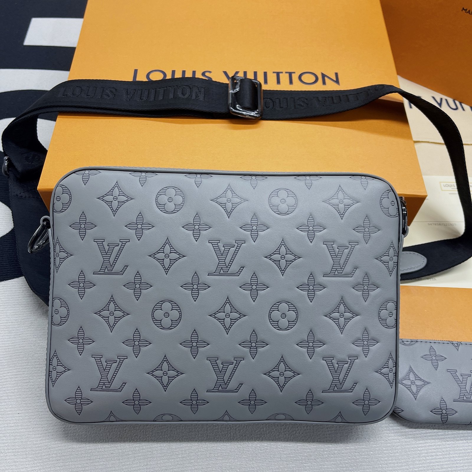 Louis Vuitton Duo Messenger Monogram Shadow Anthracite Gray For Men, Men’s Bags, Shoulder And Crossbody Bags 10.2in/26cm LV M46104