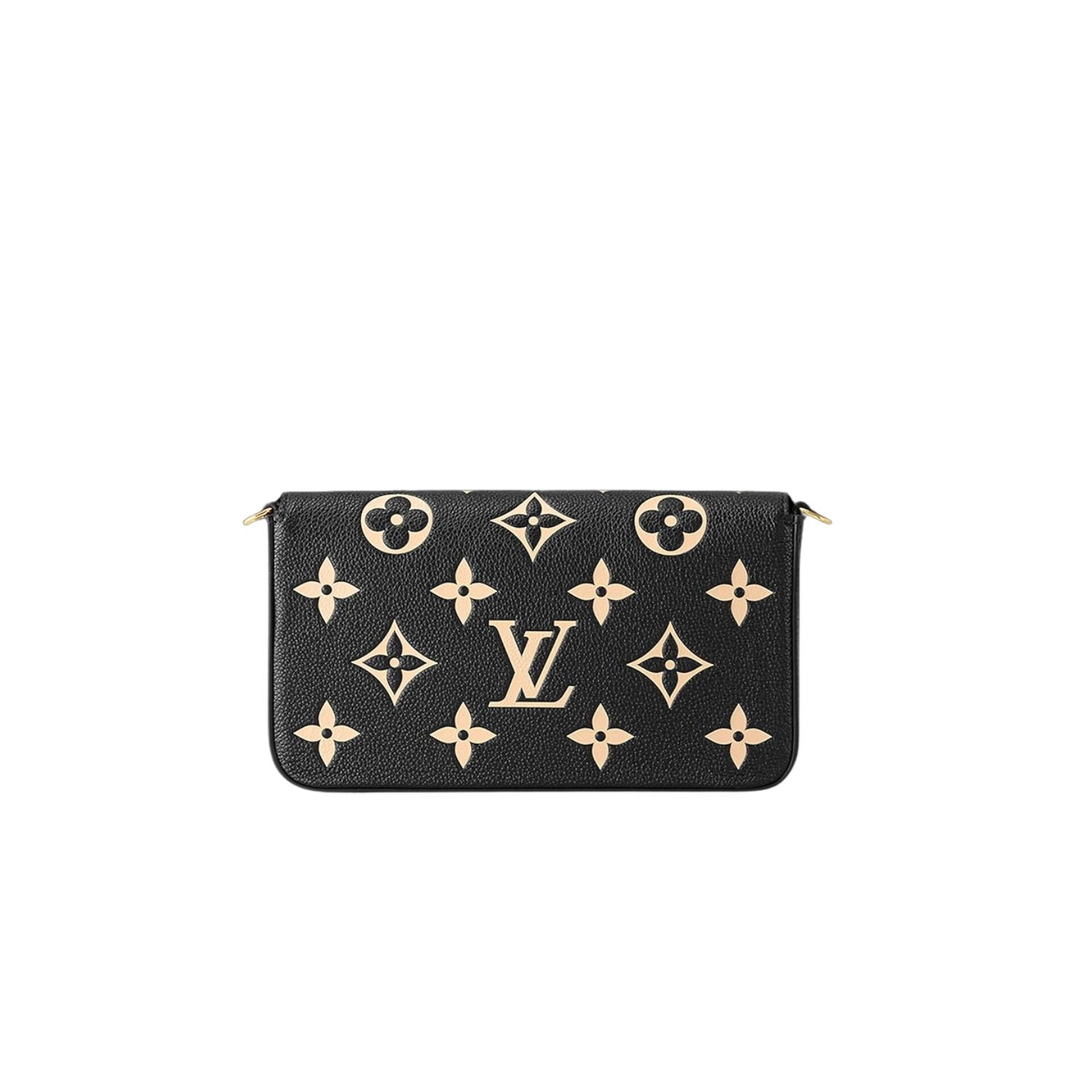 The Felicie Pochette is crafted from supple Monogram Empreinte leather, embossed with Louis Vuitton’s iconic Monogram pattern. The bicolor palette brings added refinement to this elegant and versatile design, which features a removable chain, enabling it to be carried on the shoulder or as a clutch, as well as two removable pockets.