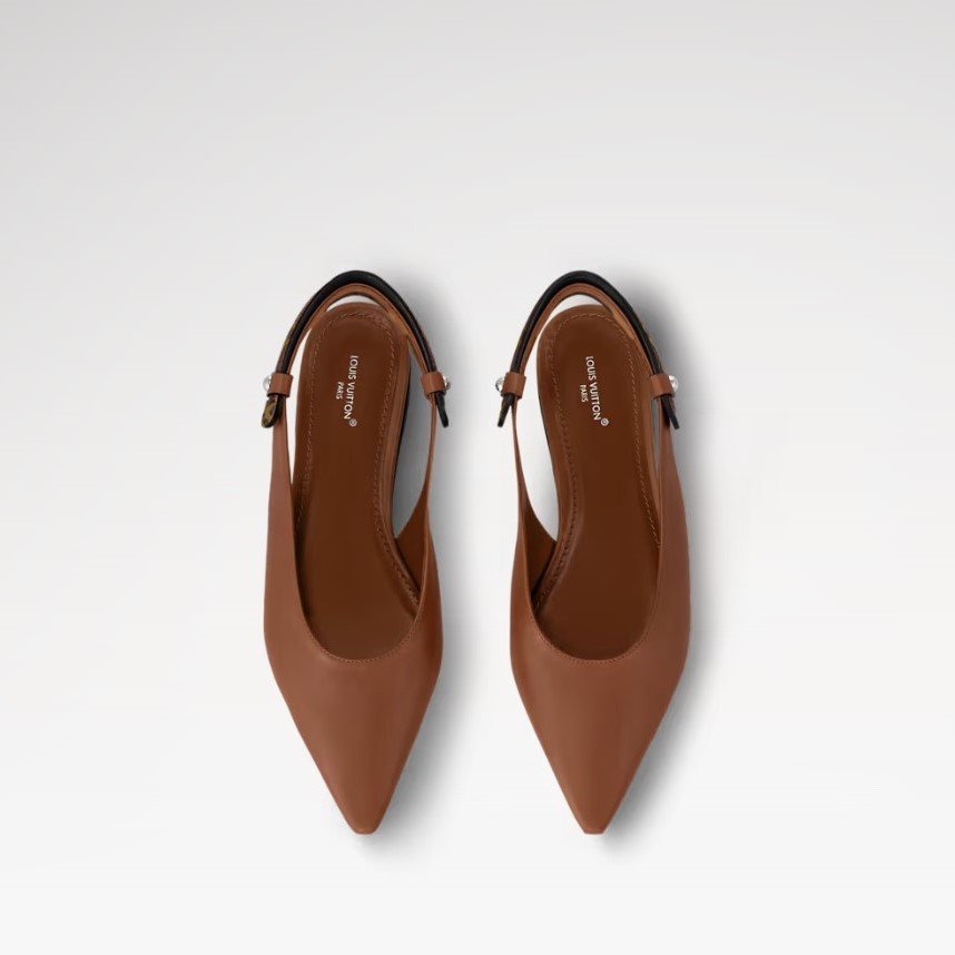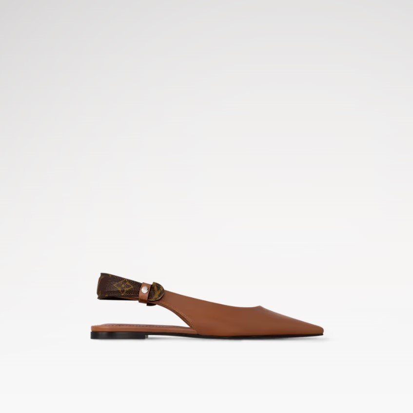 The Legacy slingback ballerina in smooth calf leather is a sophisticated style inspired by the House’s travel heritage. Its key detail is a back strap in Monogram canvas, which is shaped like a trunk handle and embellished with engraved metal studs. This feminine ballet flat has a pointed toe and a fine leather outsole.