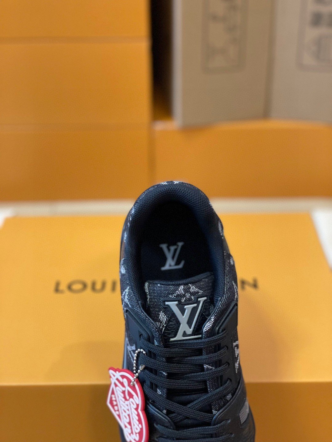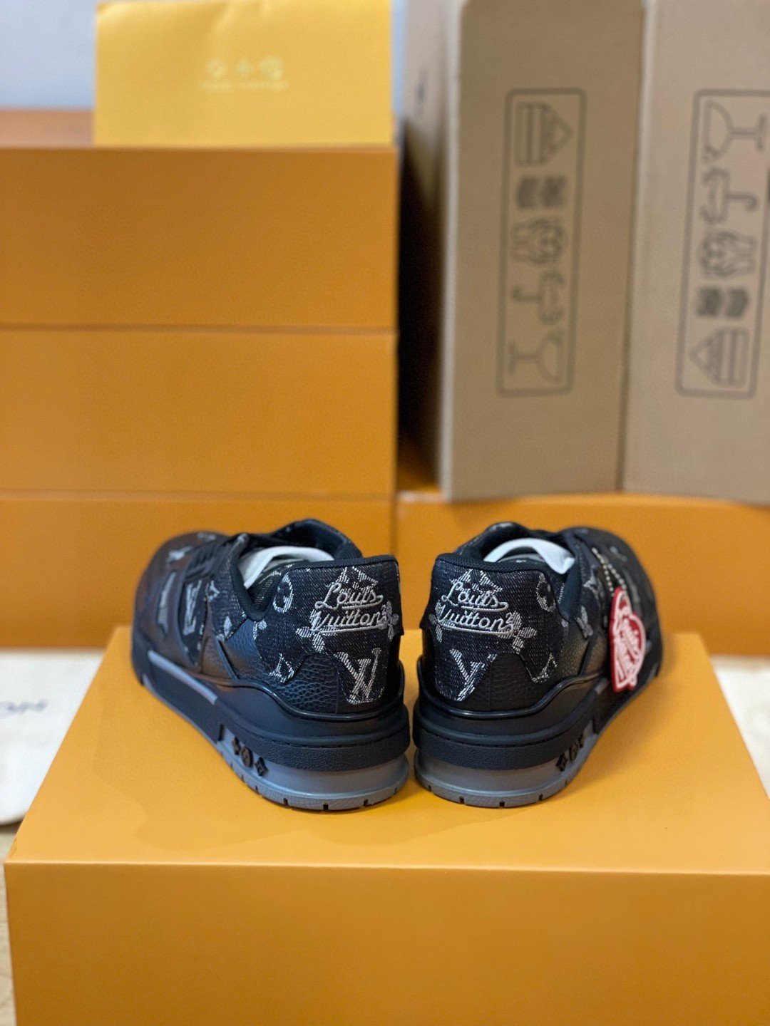 - For his second collaboration with Louis Vuitton Artistic Director Virgil Abloh, Japanese streetwear legend Nigo reworks the iconic LV Trainer sneaker. The Monogram denim upper is complemented by trim and decorated with a red, heart-shaped Louis Vuitton² rubber patch. Nigo’s instinctive fusion of British dandy and Japanese street culture has established him as a uniquely influential figure, at the crossroads of fine art and fashion.