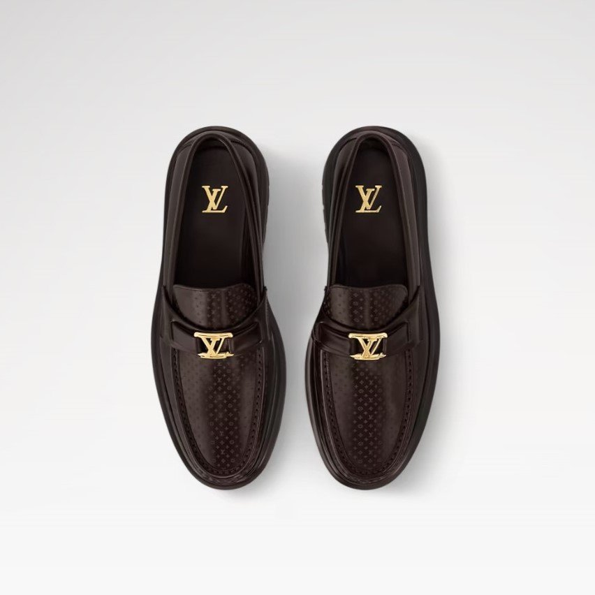 The classic Major loafer is given a fashionably relaxed twist this season with a chunky, treaded outsole in lightweight micro. The upper features a hand-stitched vamp, which is lasered with a Micro Monogram pattern, a miniature version of the iconic Monogram. The strap is signed with an LV Initials accessory.