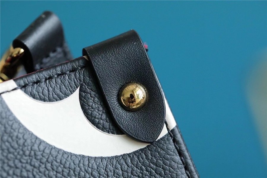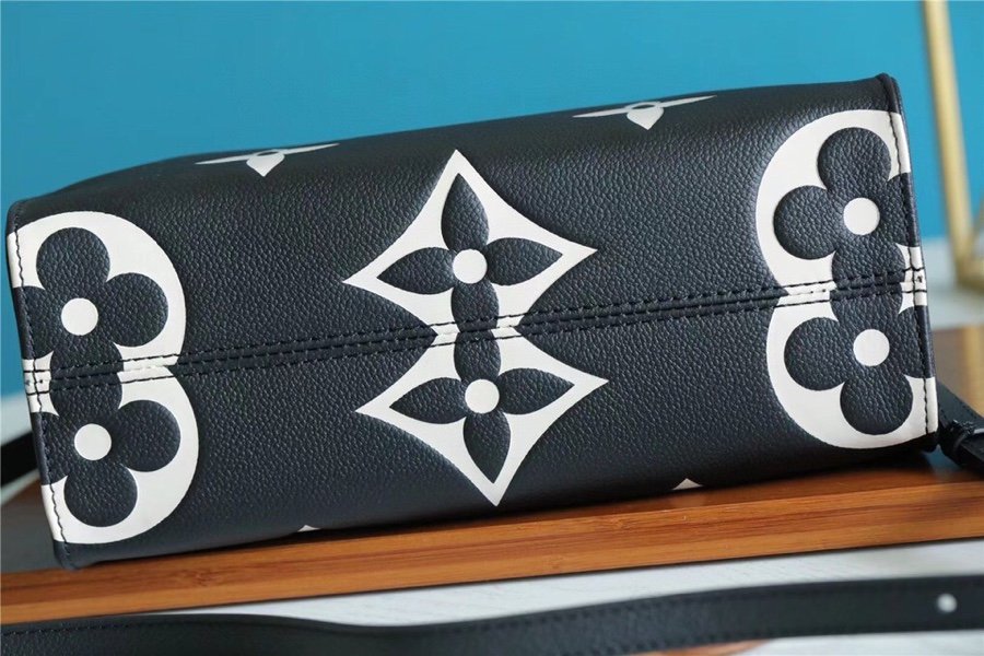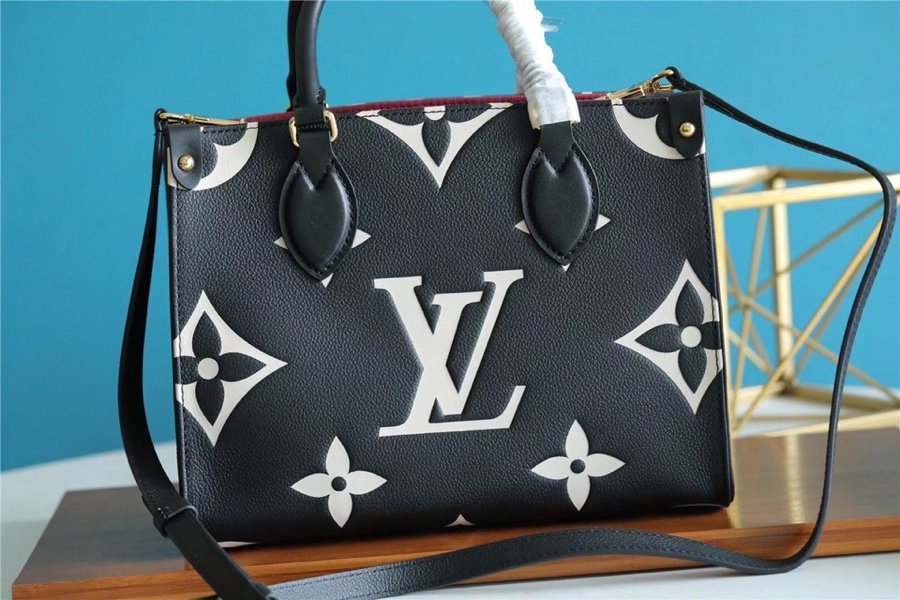 - Inspired by Louis Vuitton?s famous Sac Plat from 1968, the Onthego PM tote is fashioned in Monogram Empreinte, embossed with a subtle embossed Giant Monogram pattern. This smaller version of the original Onthego fits essentials such as an iPad Mini. Articulated top handles and an adjustable removable strap offer a variety of carry options