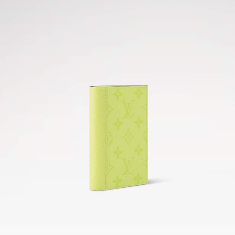 The Taigarama line brings a fresh feel to the Passport Cover with a tone-on-tone combination of colored Monogram coated canvas and matching leather. Lined in yellow cowhide leather, this practical and elegant accessory is perfect for holding travel documents. It also features four card slots and two open pockets for papers.