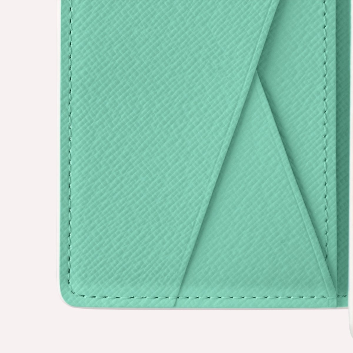 - The Pocket Organizer is fashioned from Damier Heritage canvas, with its oversized checkerboard pattern, and features the House’s “Marque L.Vuitton Déposée” centered on the wallet. The style of the Damier squares is inspired by the pattern’s original treatment. This compact wallet has three card slots, five inside pockets, and a pocket on the outside.