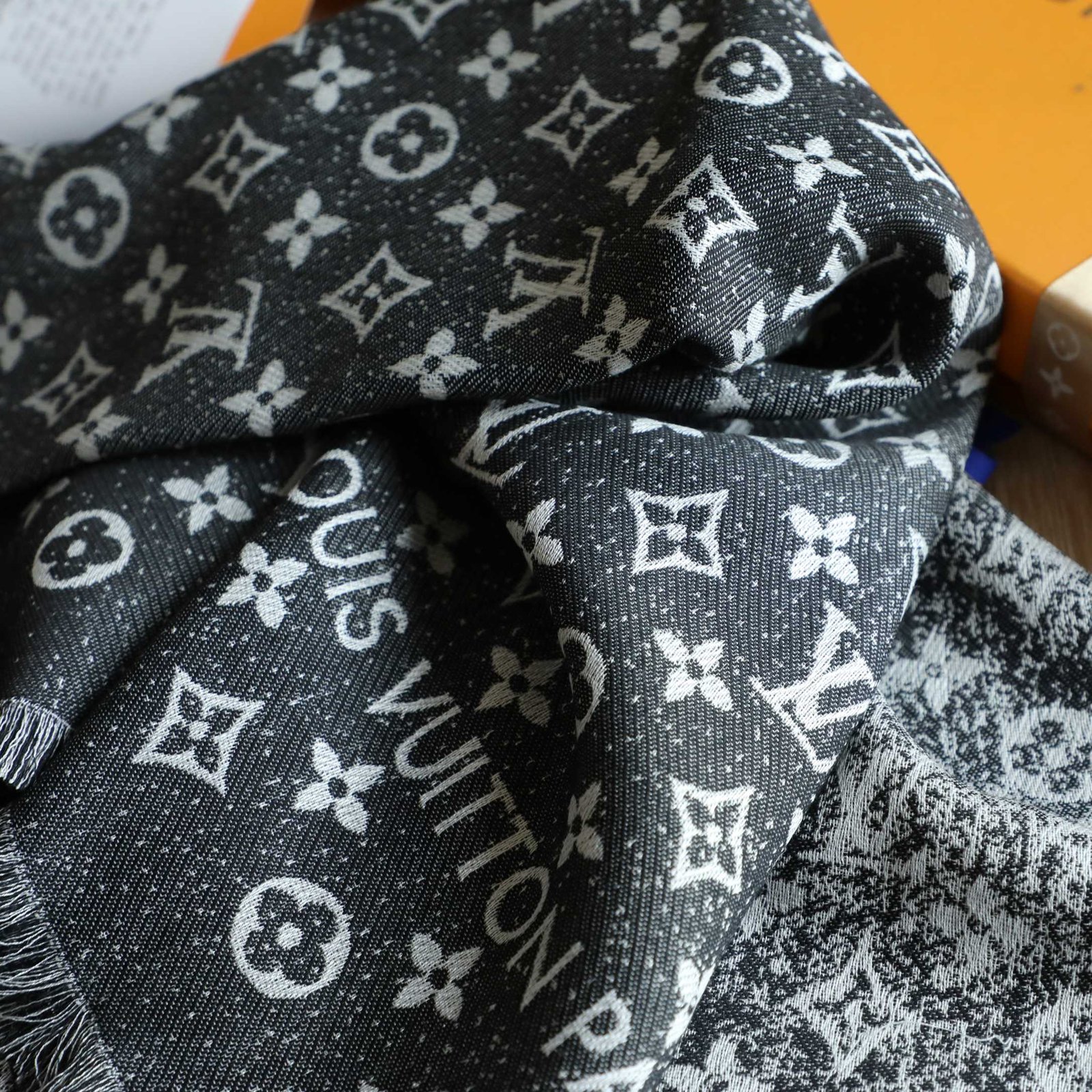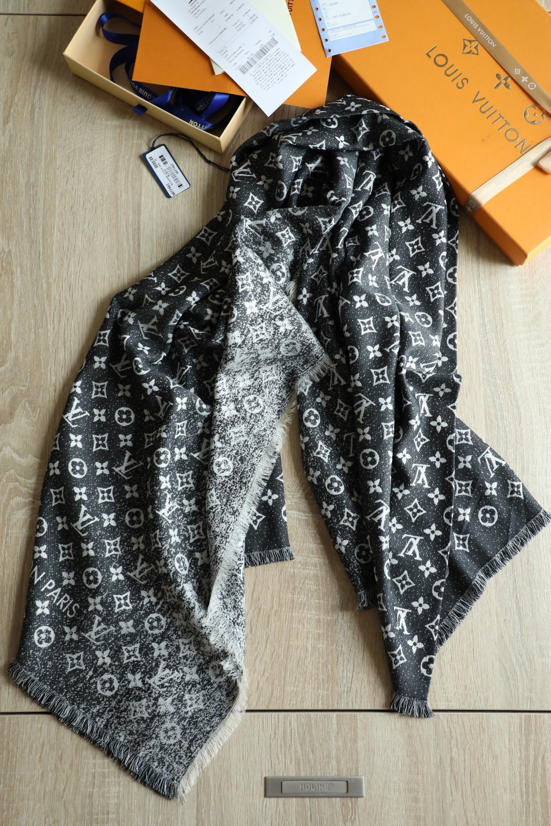 Louis Vuitton Silk Wool Square Dark Blue Scarf 140cm/55in