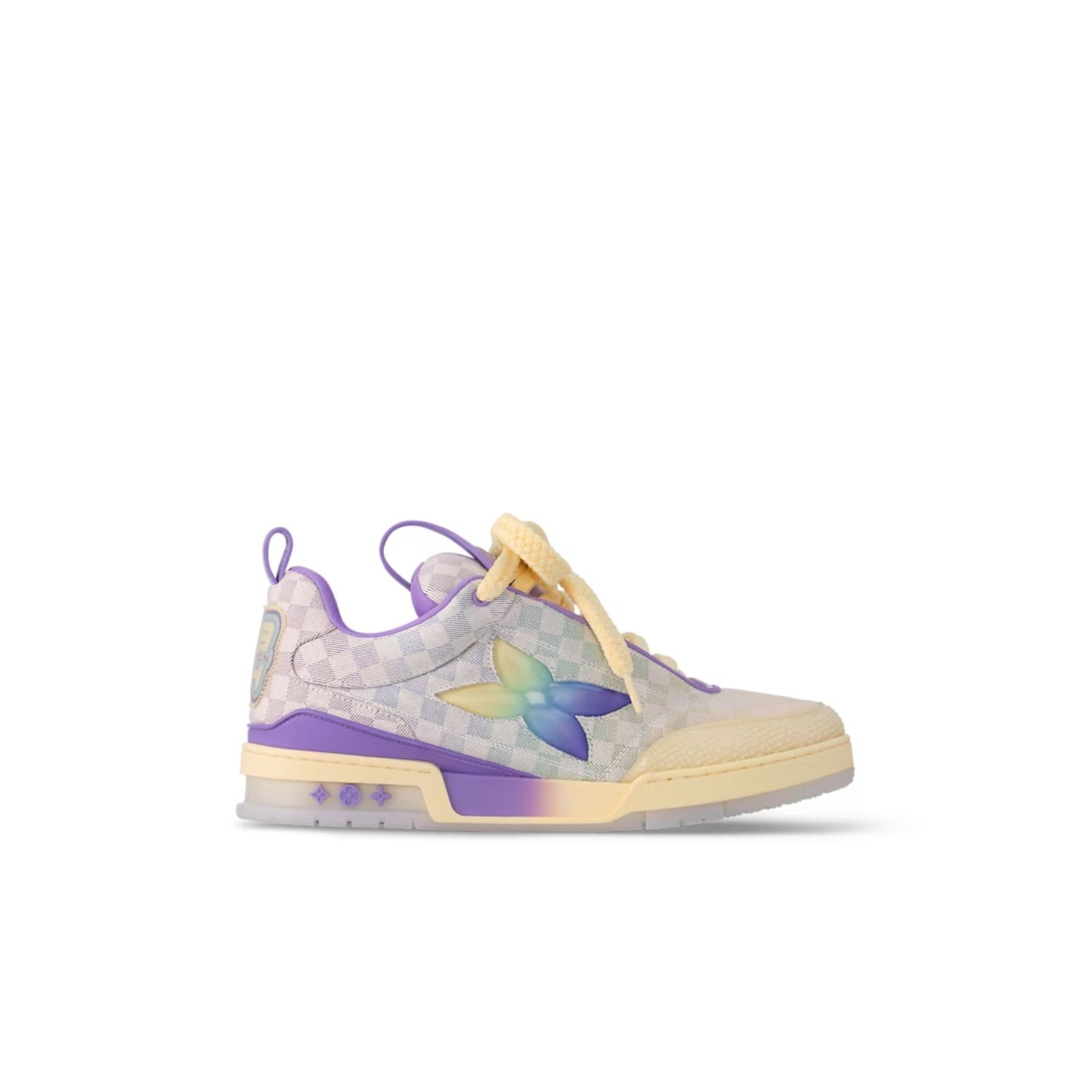 Key details of this design, which references Nineties’ skate shoes, are multicolored cotton laces and a gradient Monogram Flower on the side. The rubber outsole is signed with three Monogram Flowers.