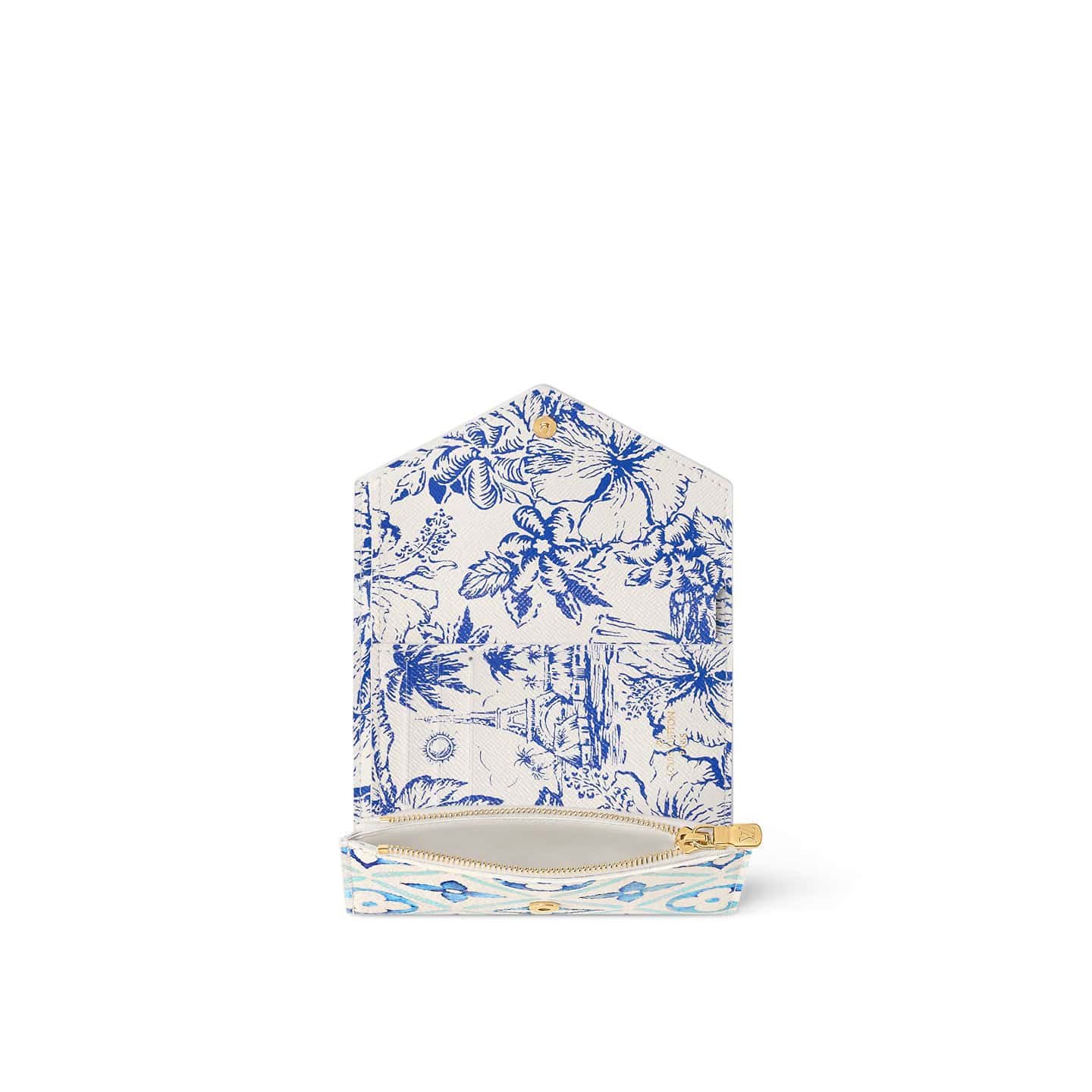 - For the LV By the Pool summer collection, the Victorine wallet is reinterpreted in coated canvas with a vibrant Monogram Tiles print, inspired by the Mediterranean. Notable for its square format, this tiny, envelope-style wallet is surprisingly spacious, offering pockets for coins and bills, as well as six card slots.