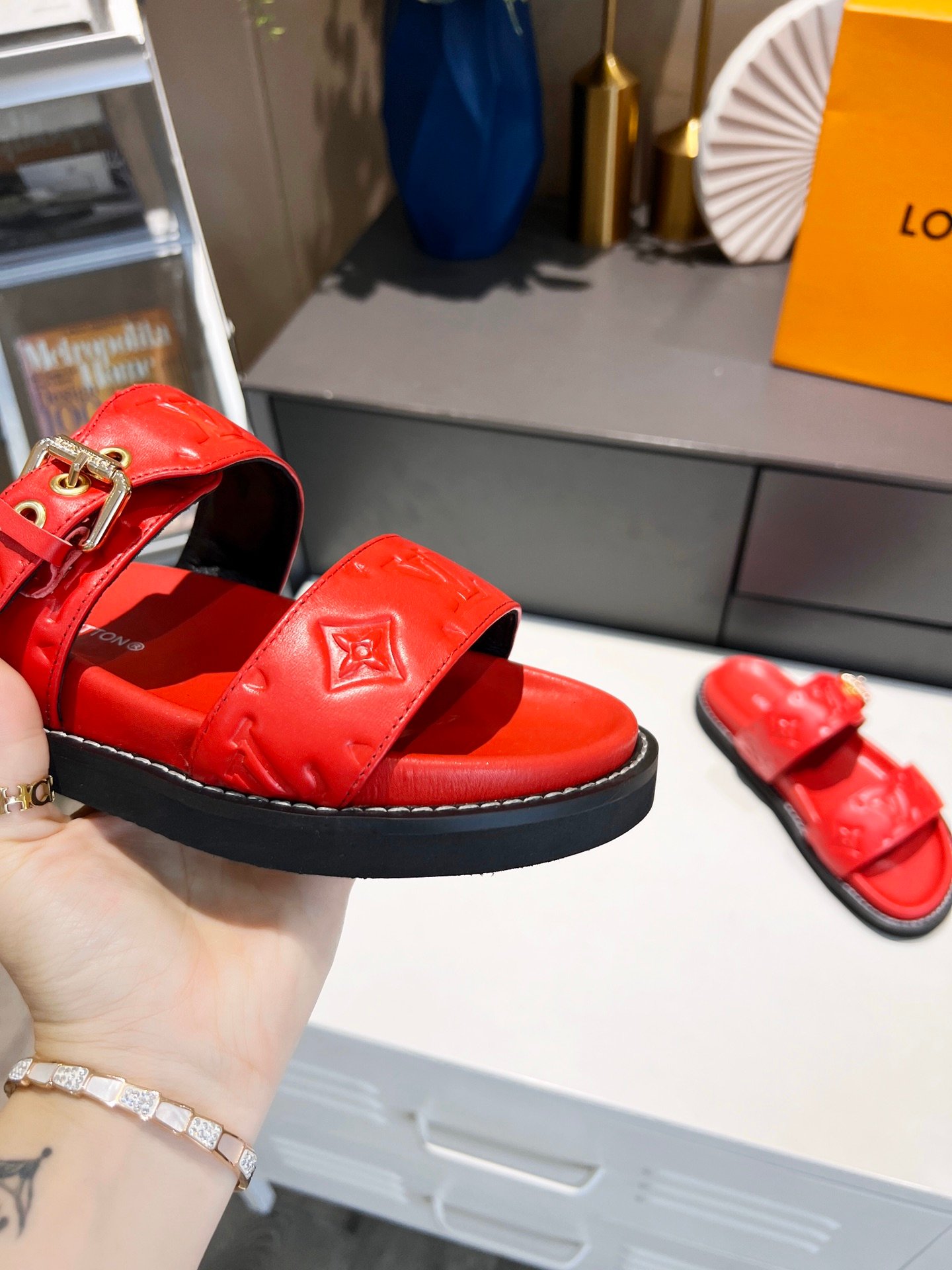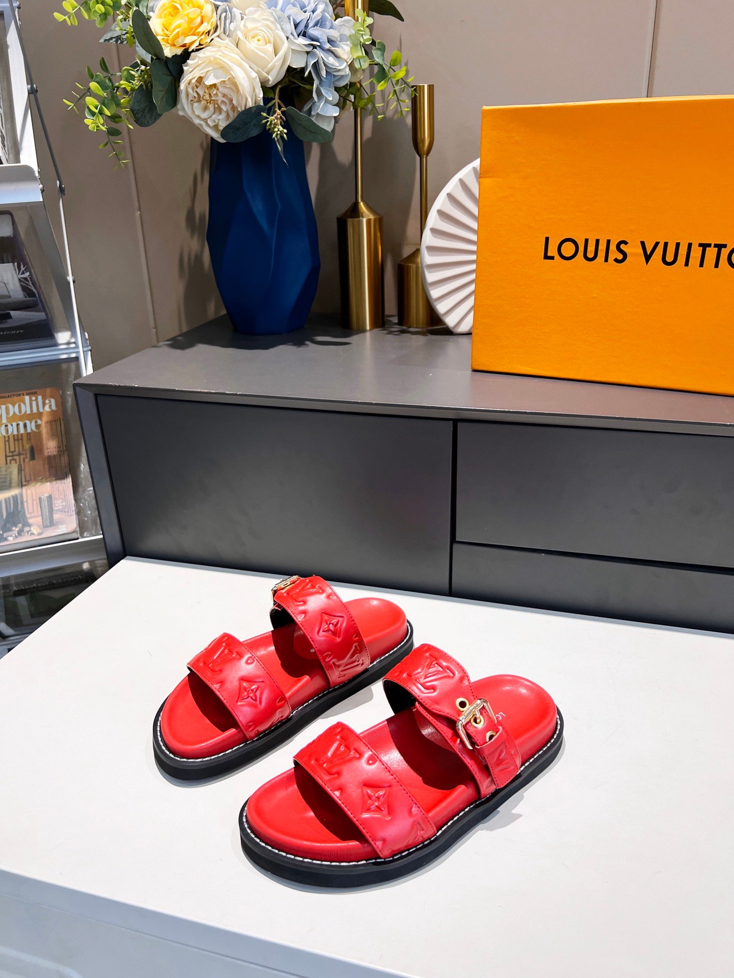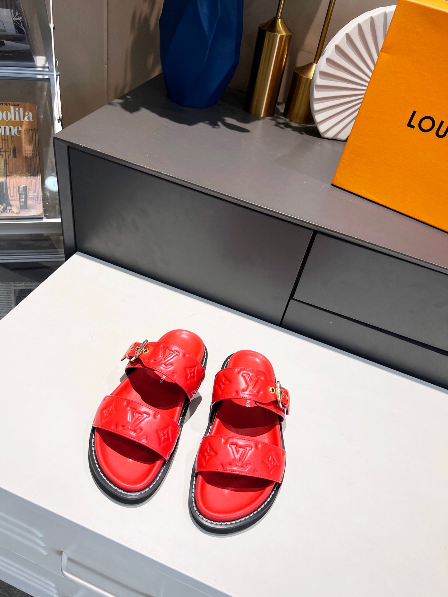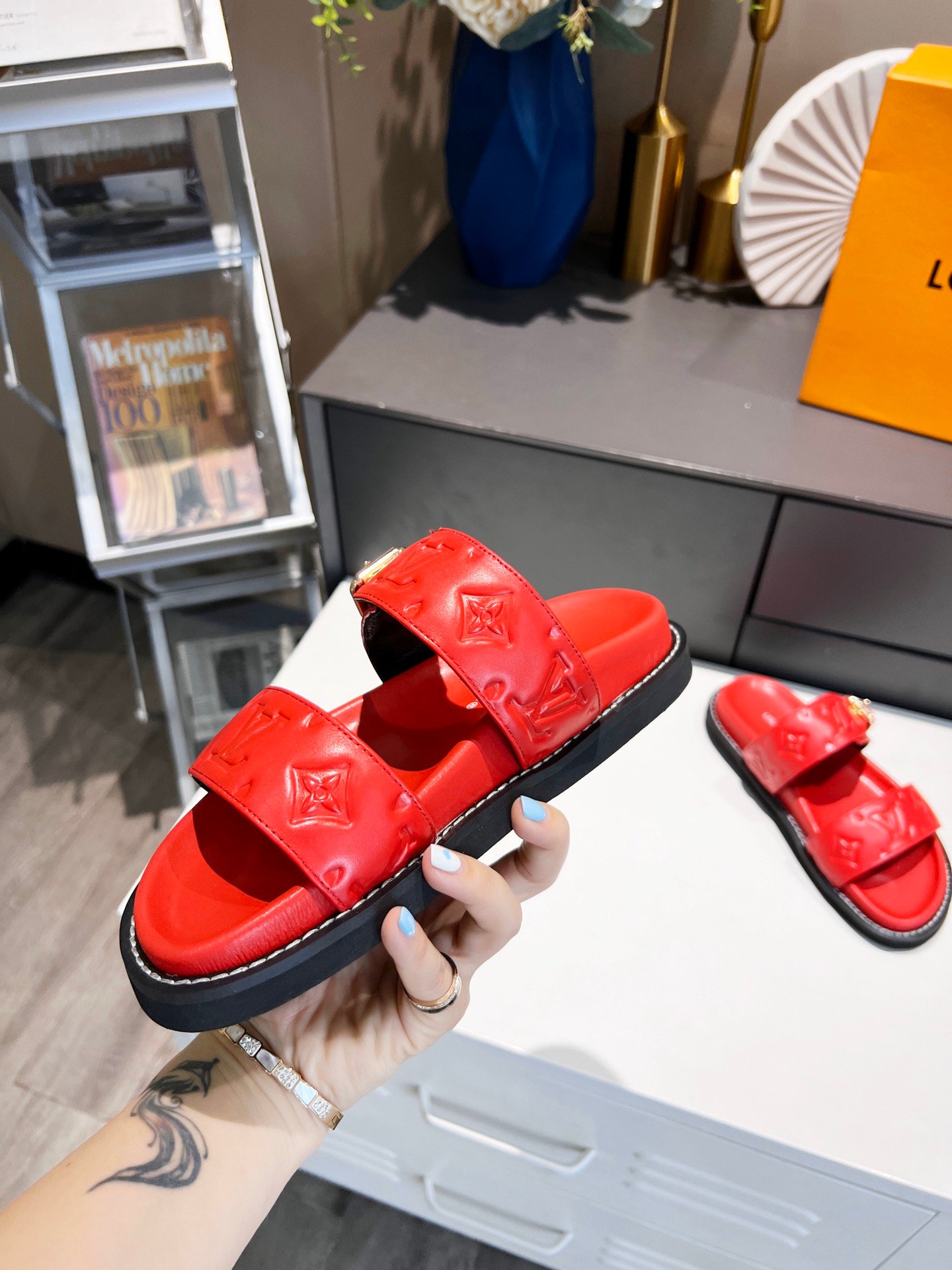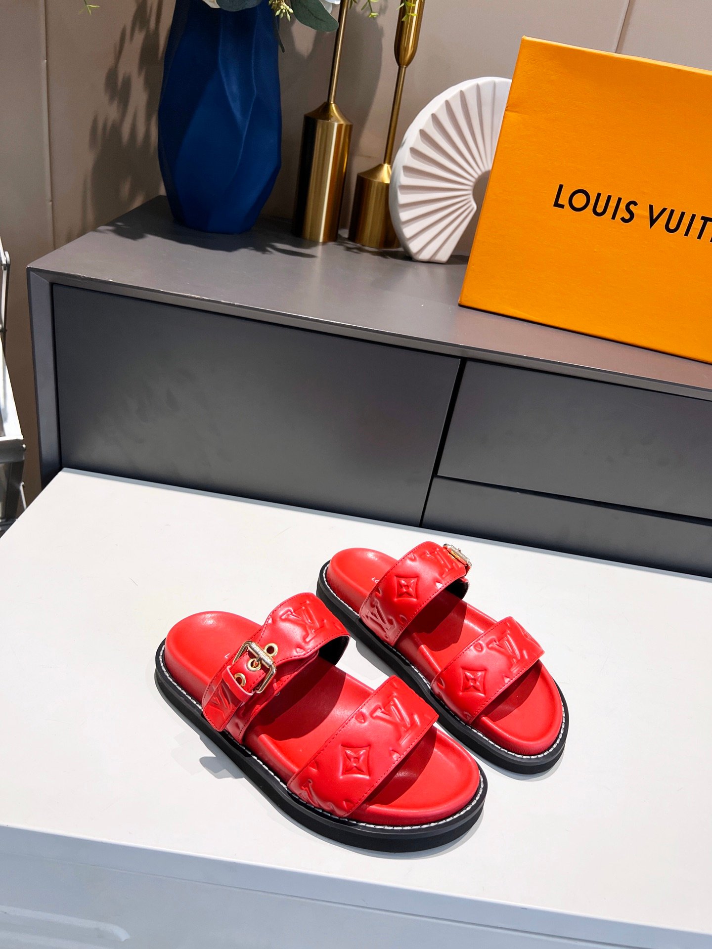 Louis Vuitton Women’s Bom Dia Flat Mule Red For Women LV