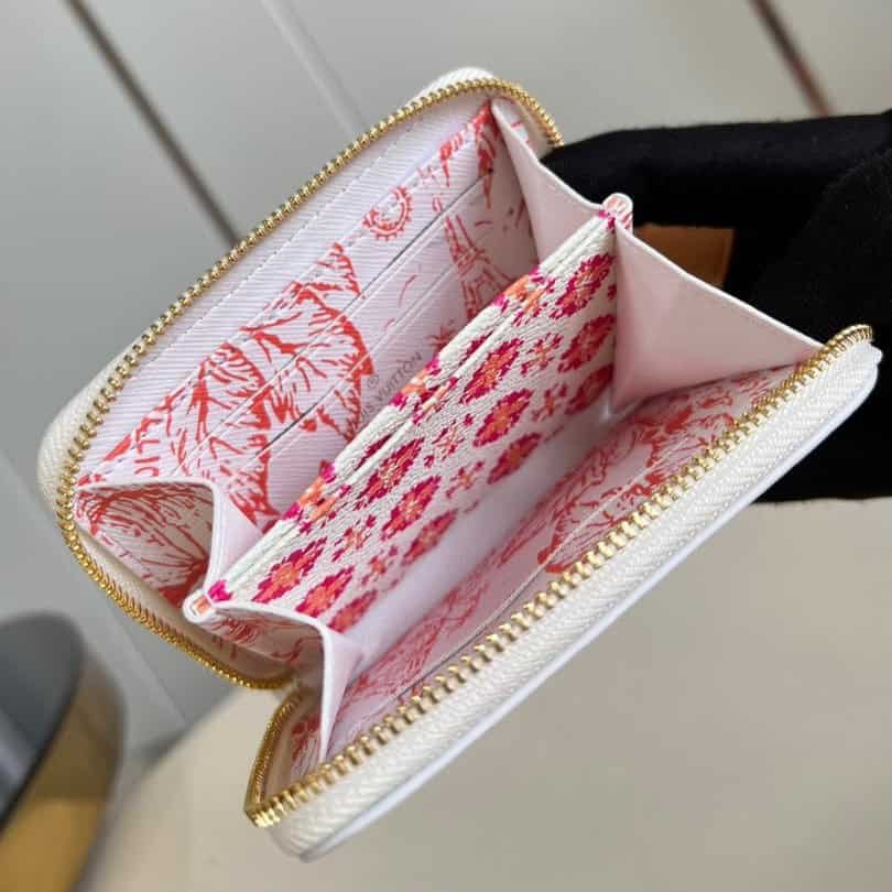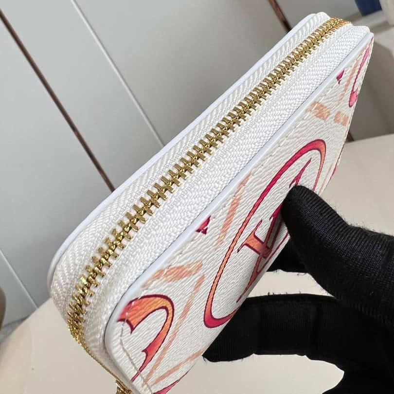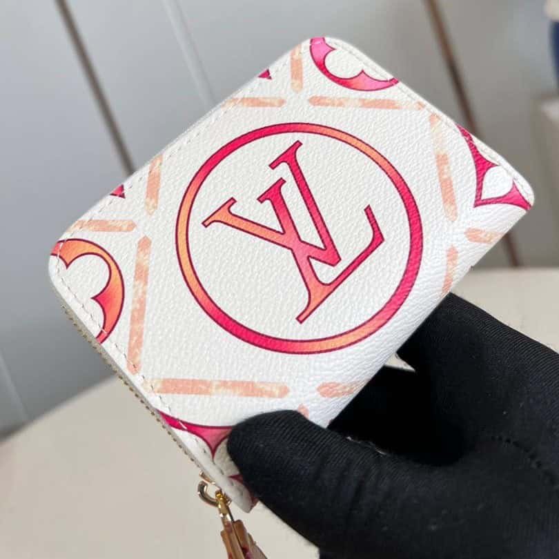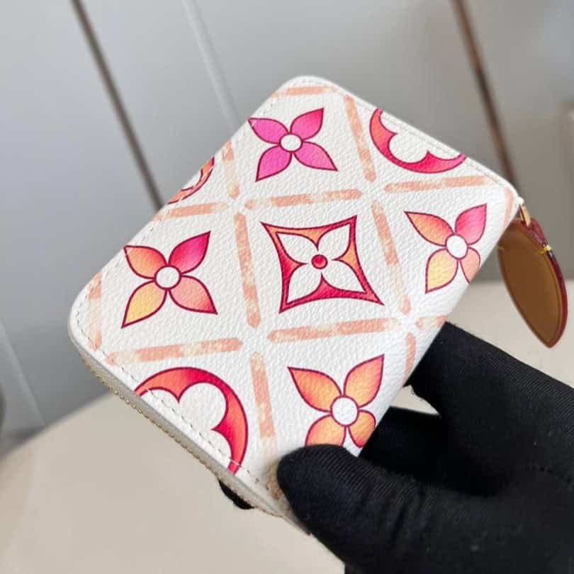- This seasonal edition of the Zippy coin purse belongs to the LV By the Pool collection, which evokes travel to exotic destinations. It comes in coated canvas with a colorful Monogram Tiles print inspired by the Mediterranean. Notable for its space-efficient design, this zip-around purse can hold bills and cards as well as coins.