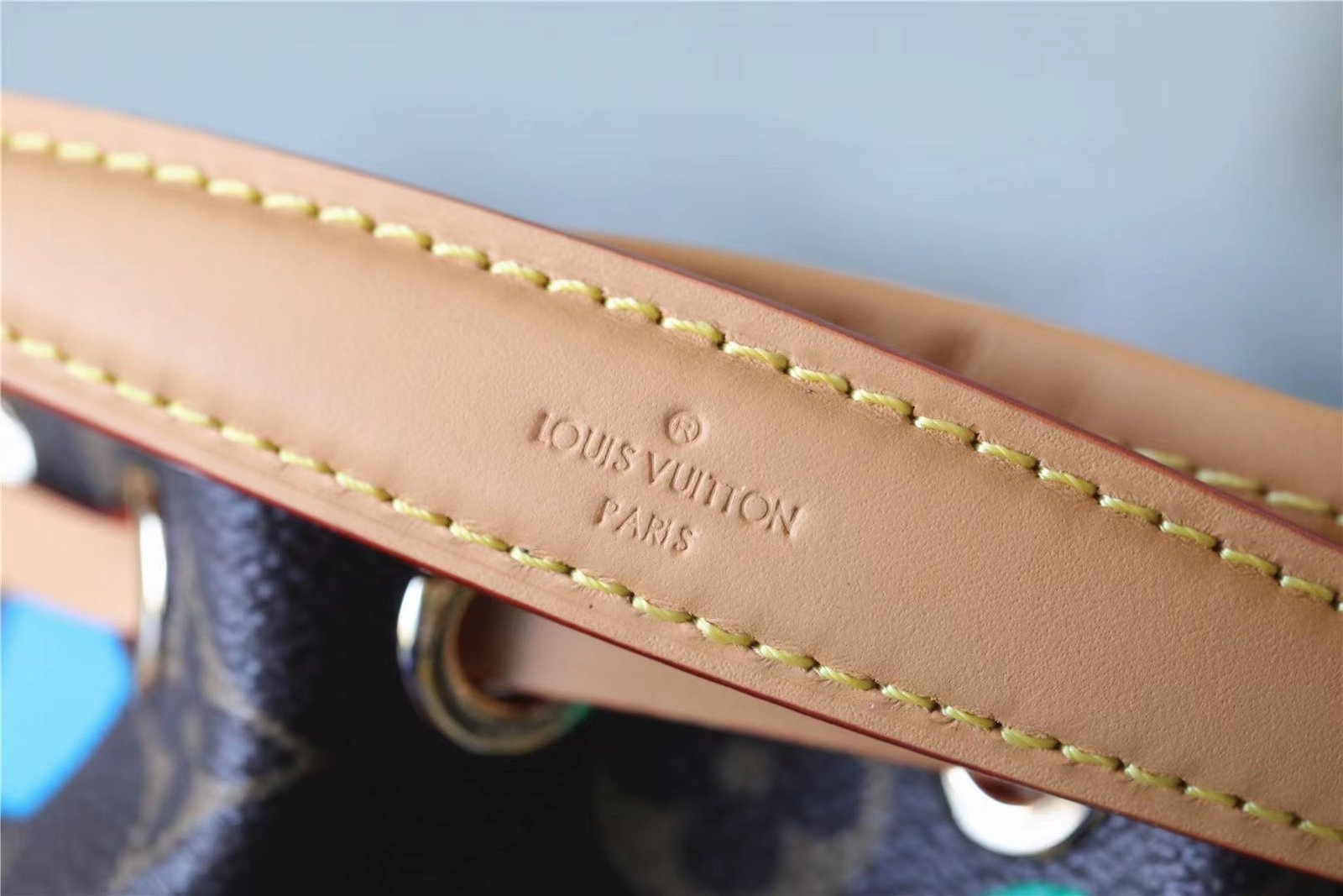 - The Speedy Bandoulière 25 LV x YK bag is a miniature version of the iconic Noé bag, created in 1932. Crafted from Monogram canvas with trim in natural , this tiny Nano Noé combines heritage with modern functionality. Its removable handle and removable, adjustable strap offer multiple carry options, while it is spacious enough to hold essentials including keys, a card holder and a smartphone.
