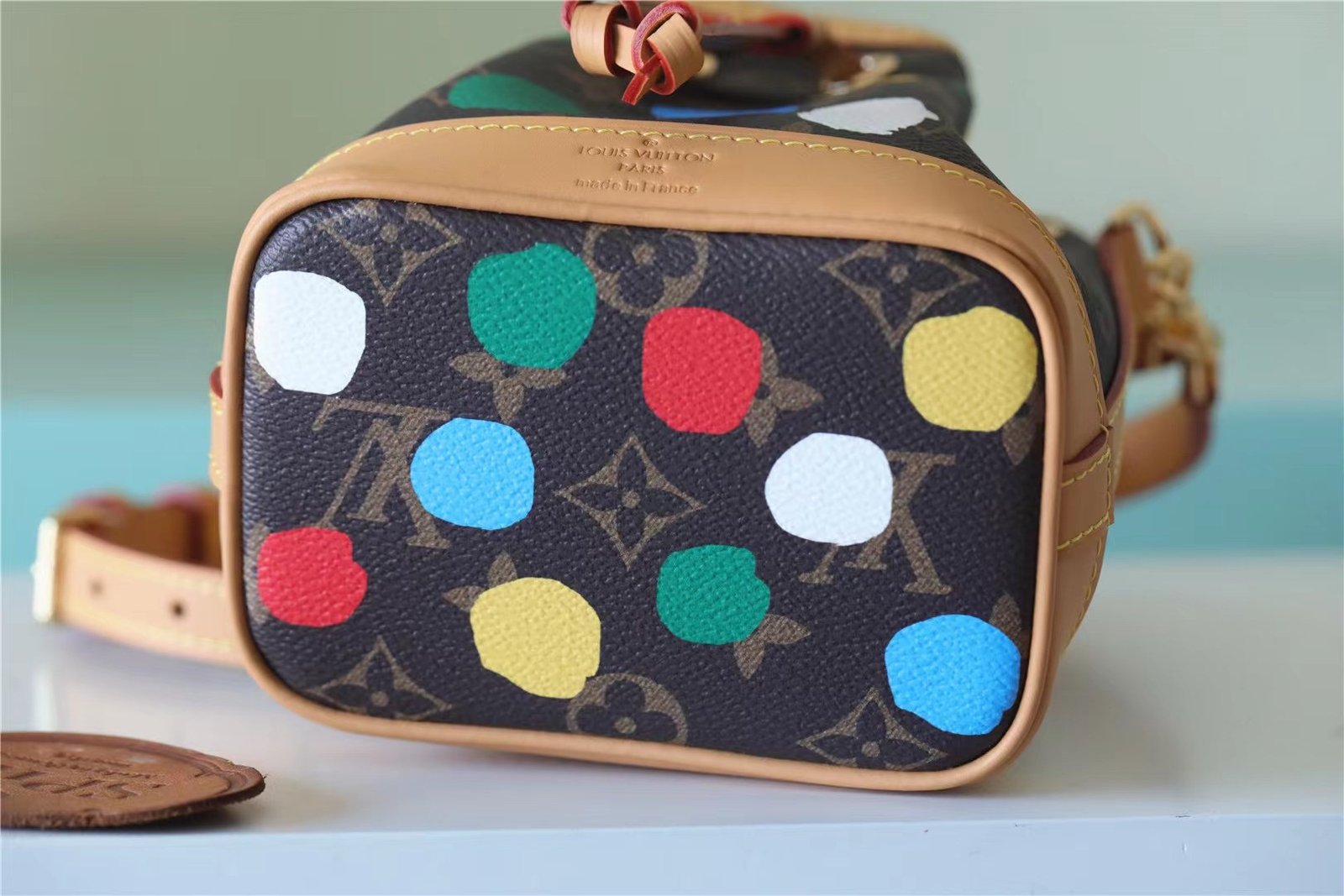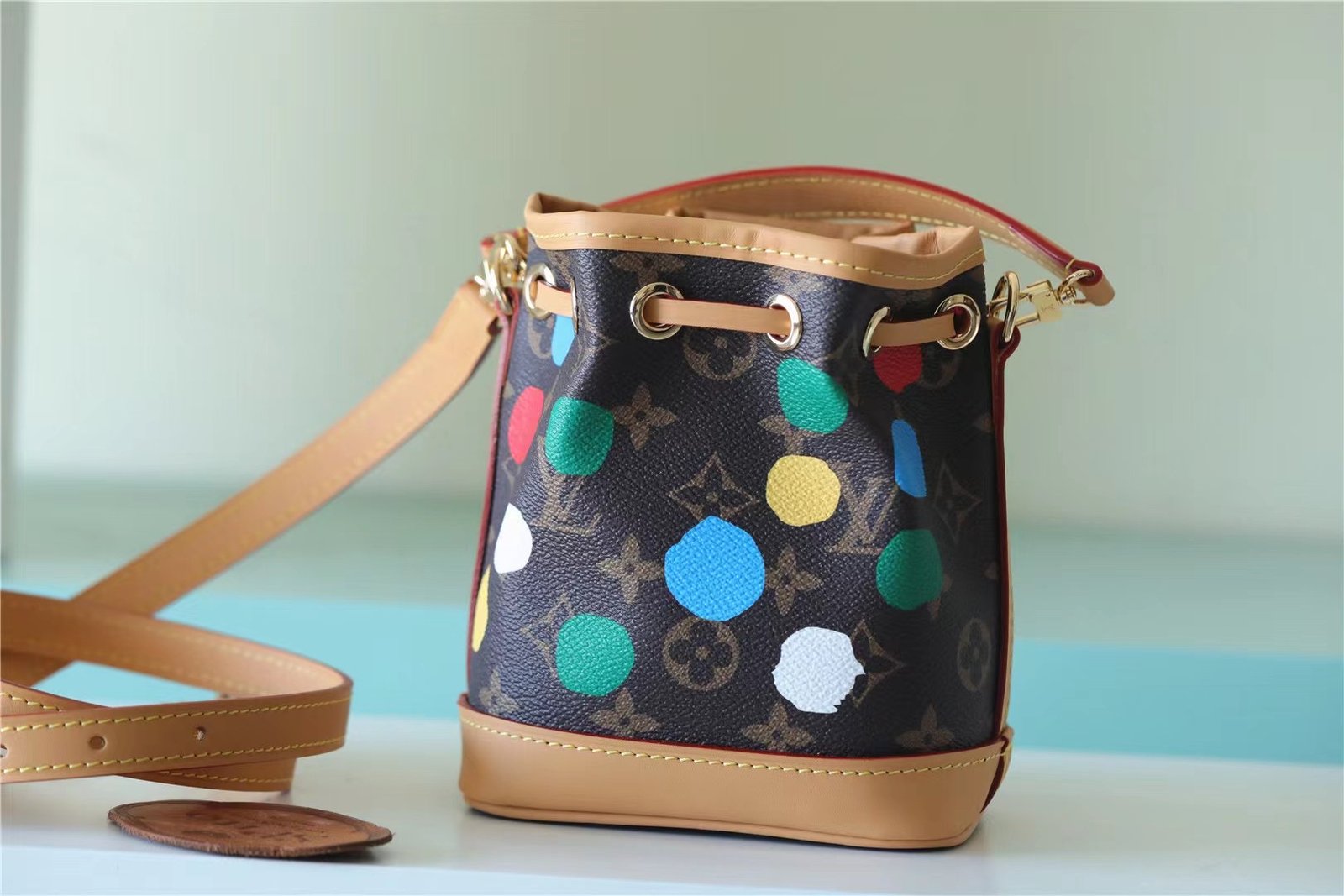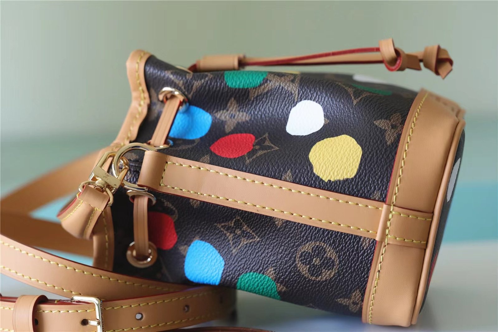 LV X YK Nano Noe Monogram Canvas Shoulder Bags Brown By Yayoi Kusama For Women 6.3in/16cm
