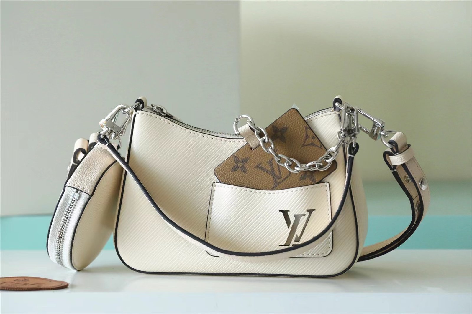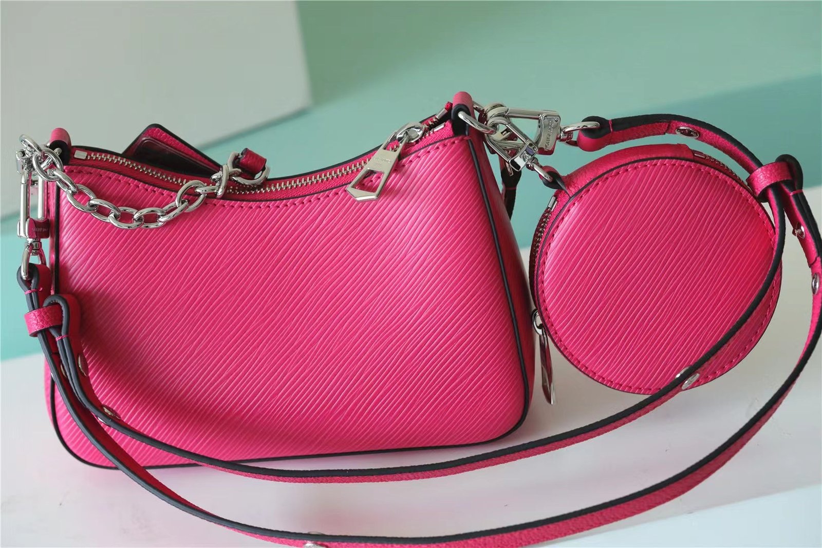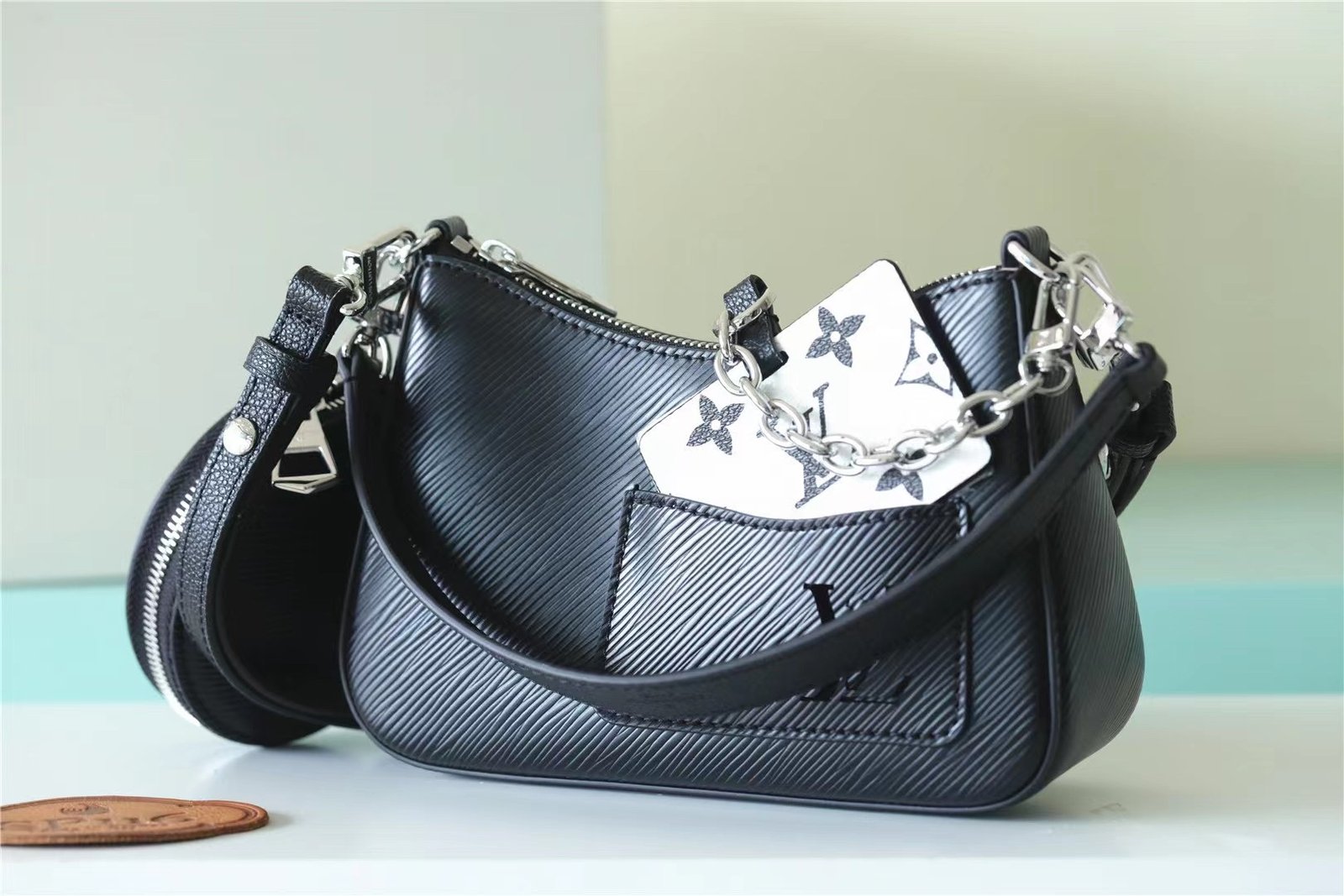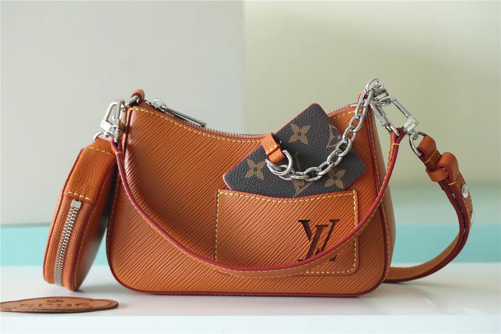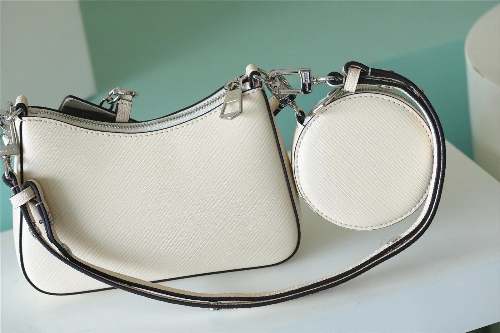 - Mirror hooked to the bag with removable chain