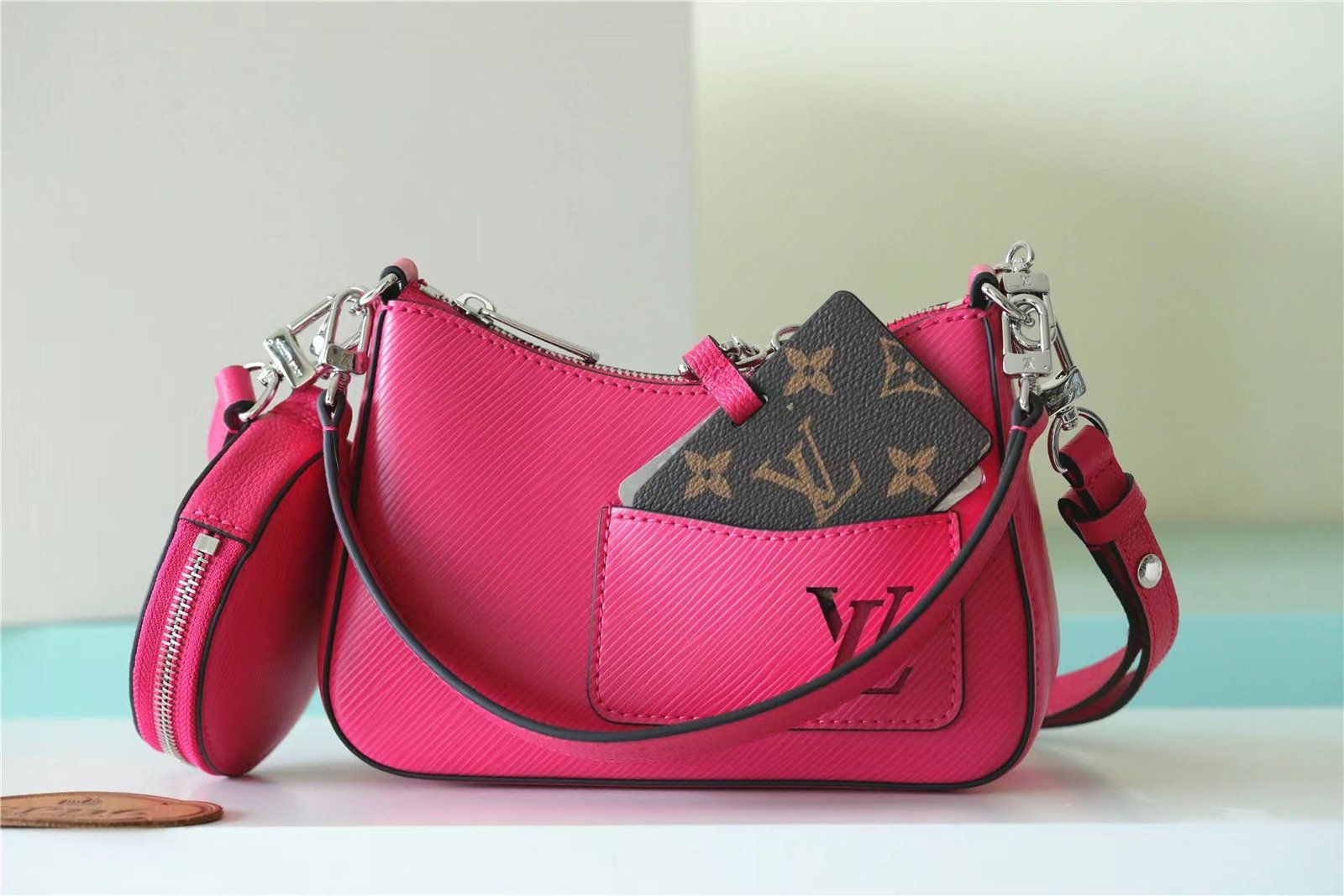 - Removable zipped round coin purse