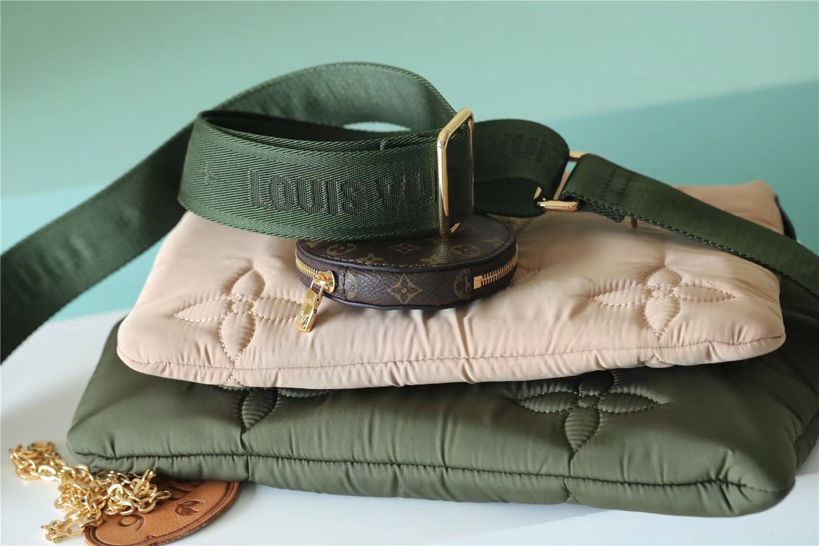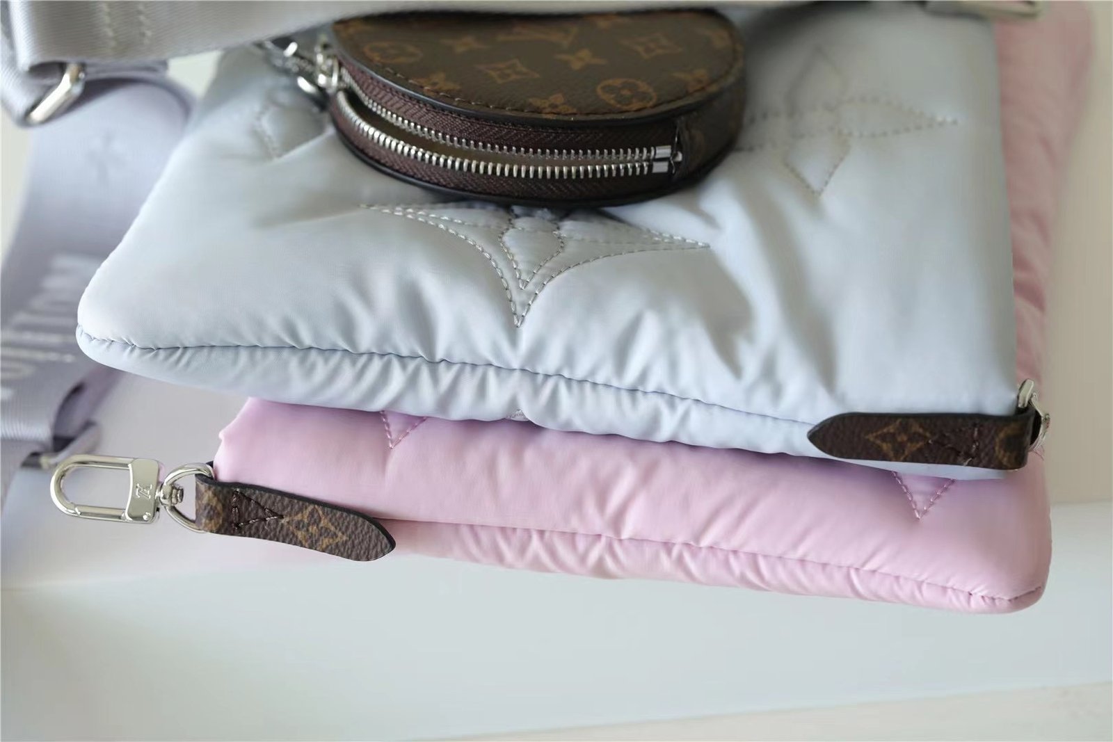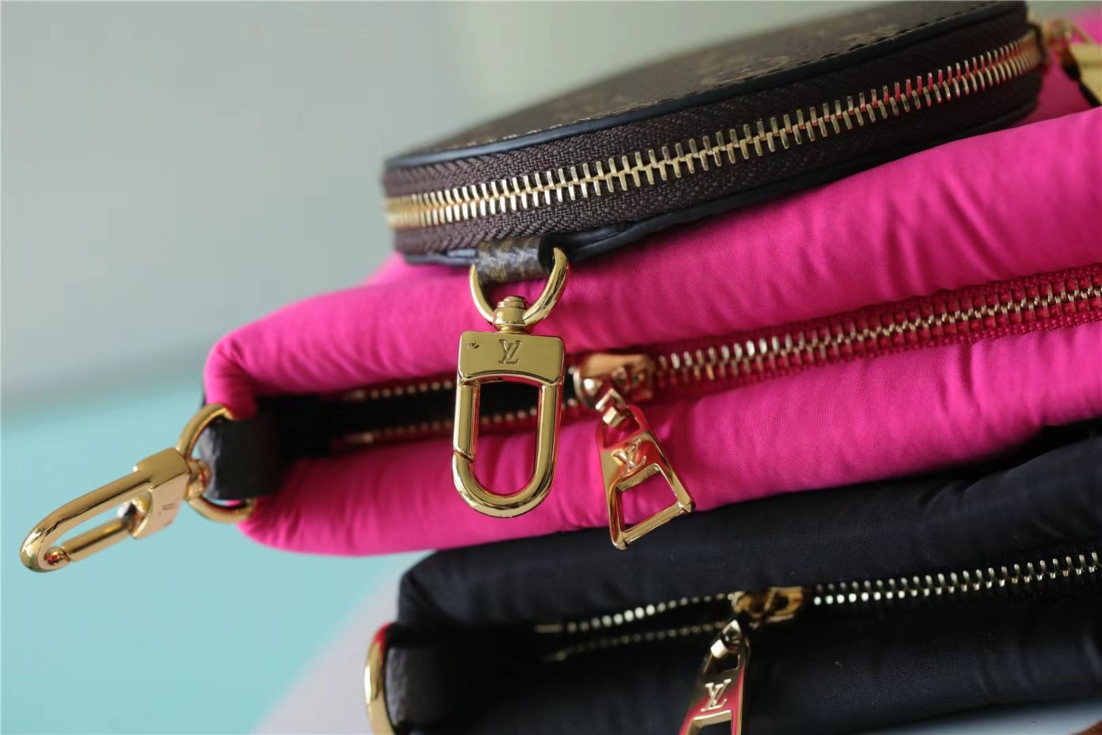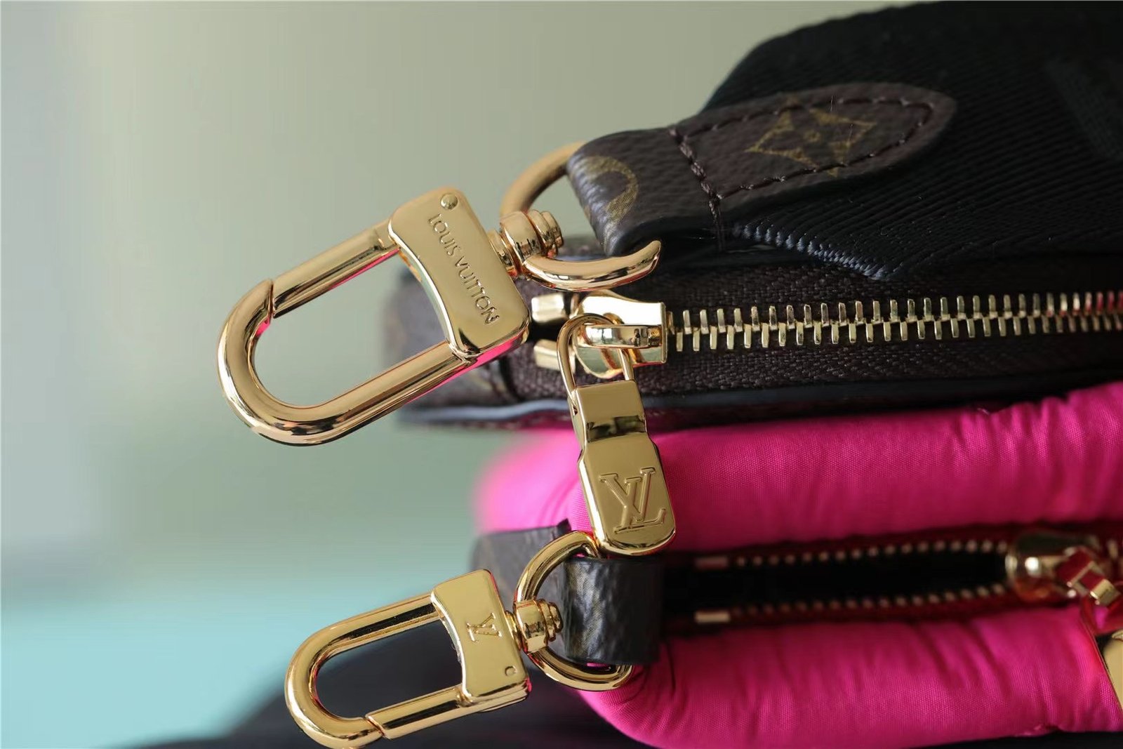 - The Maxi Multi Pochette Accessoires belongs to the season’s LV Pillow capsule. This playful piece provides so many styling opportunities. It can be worn cross-body on the long removable strap and carried as a clutch or by hand on its removable chain, with or without the cute detachable coin purse.
