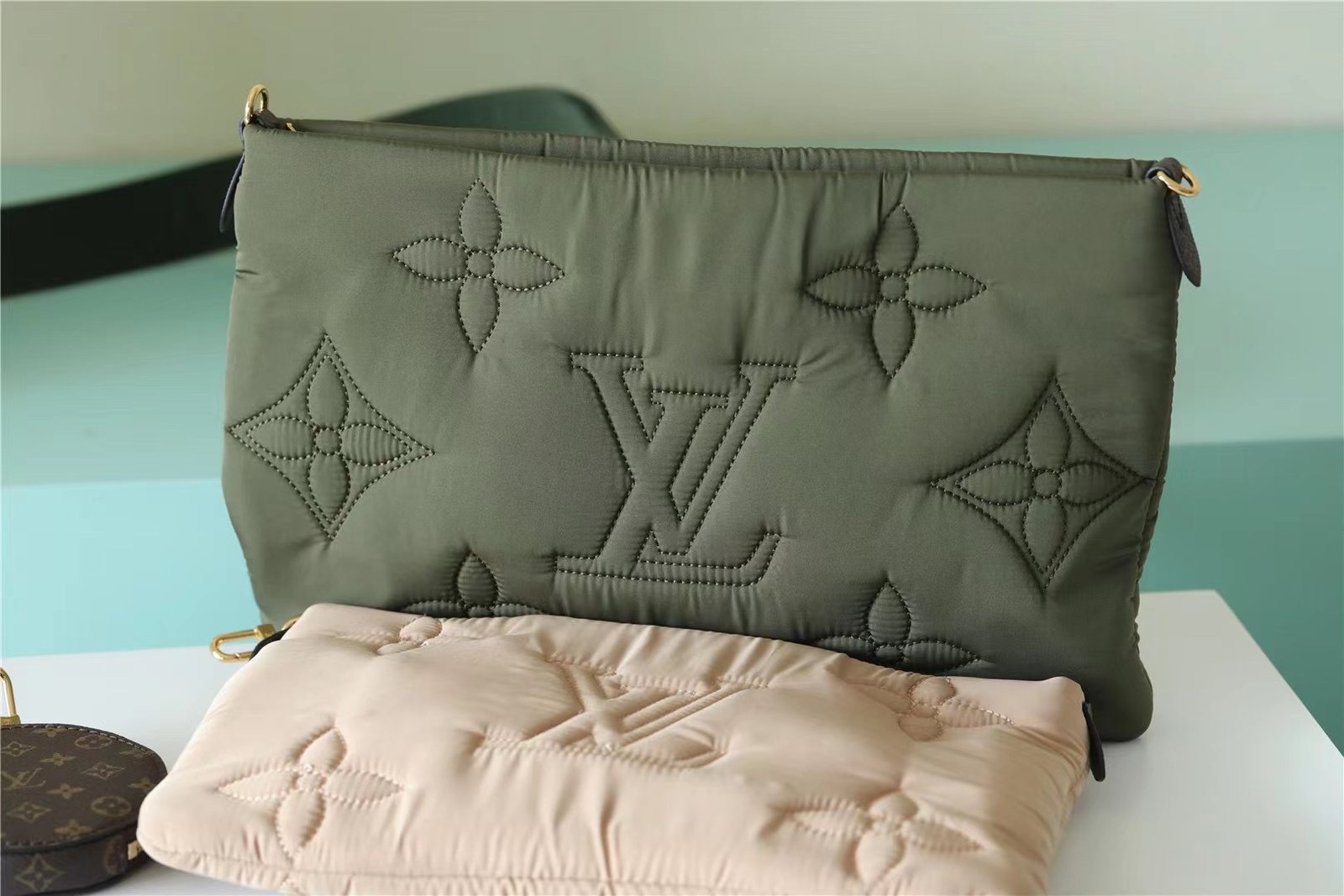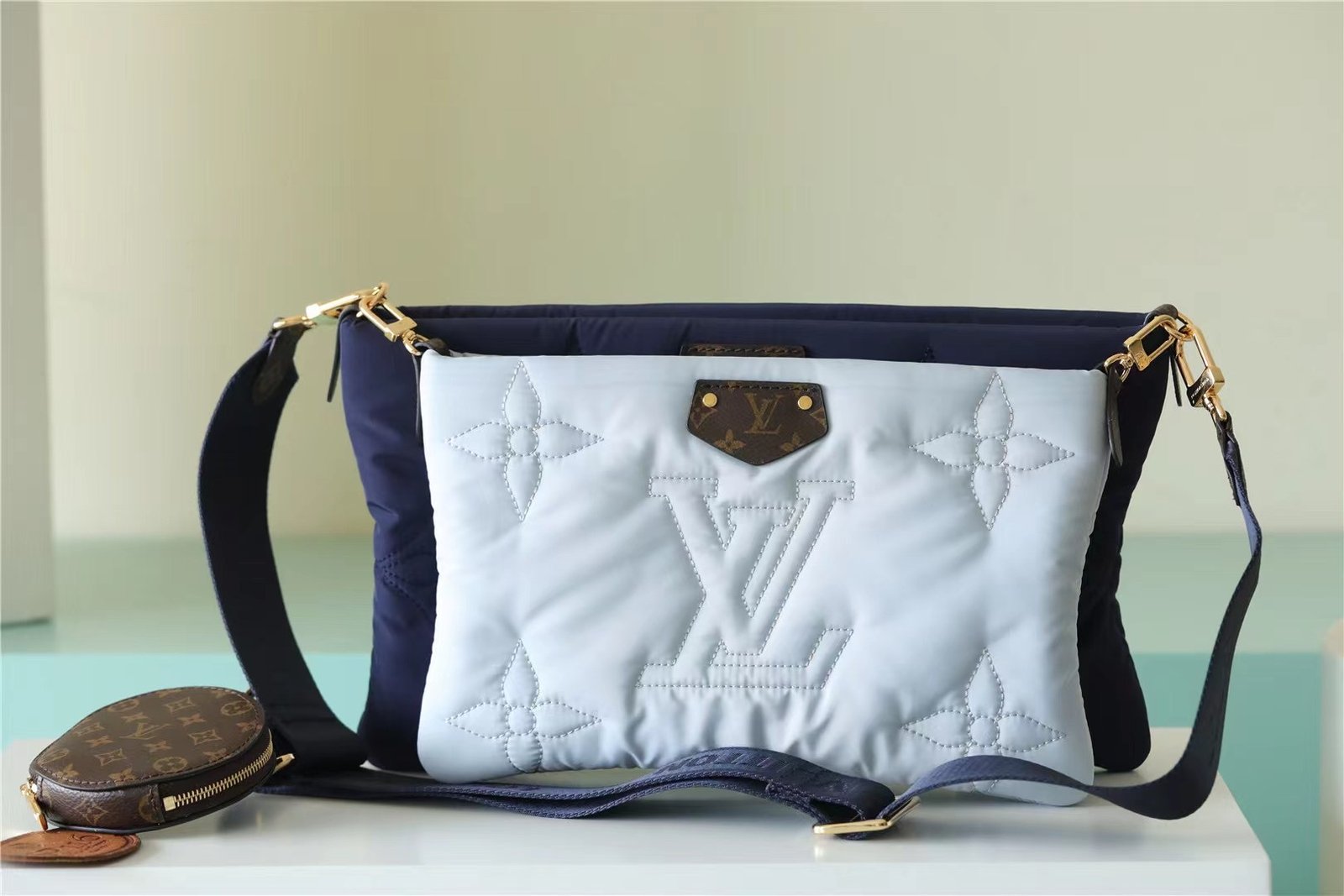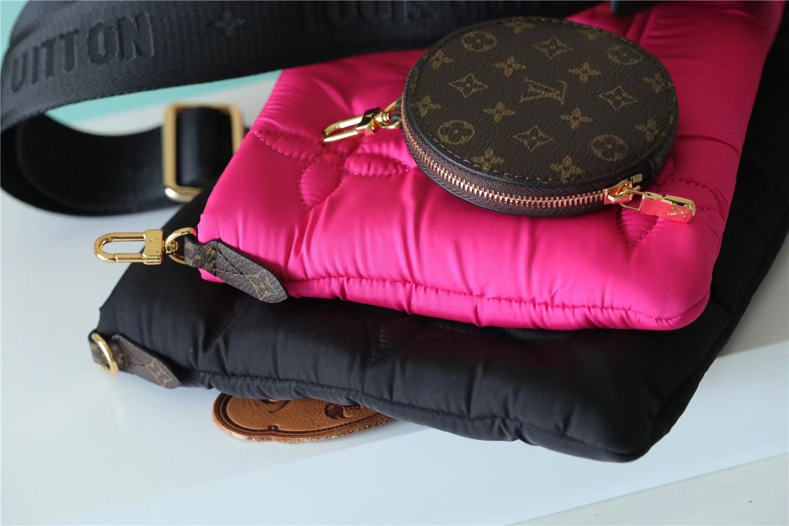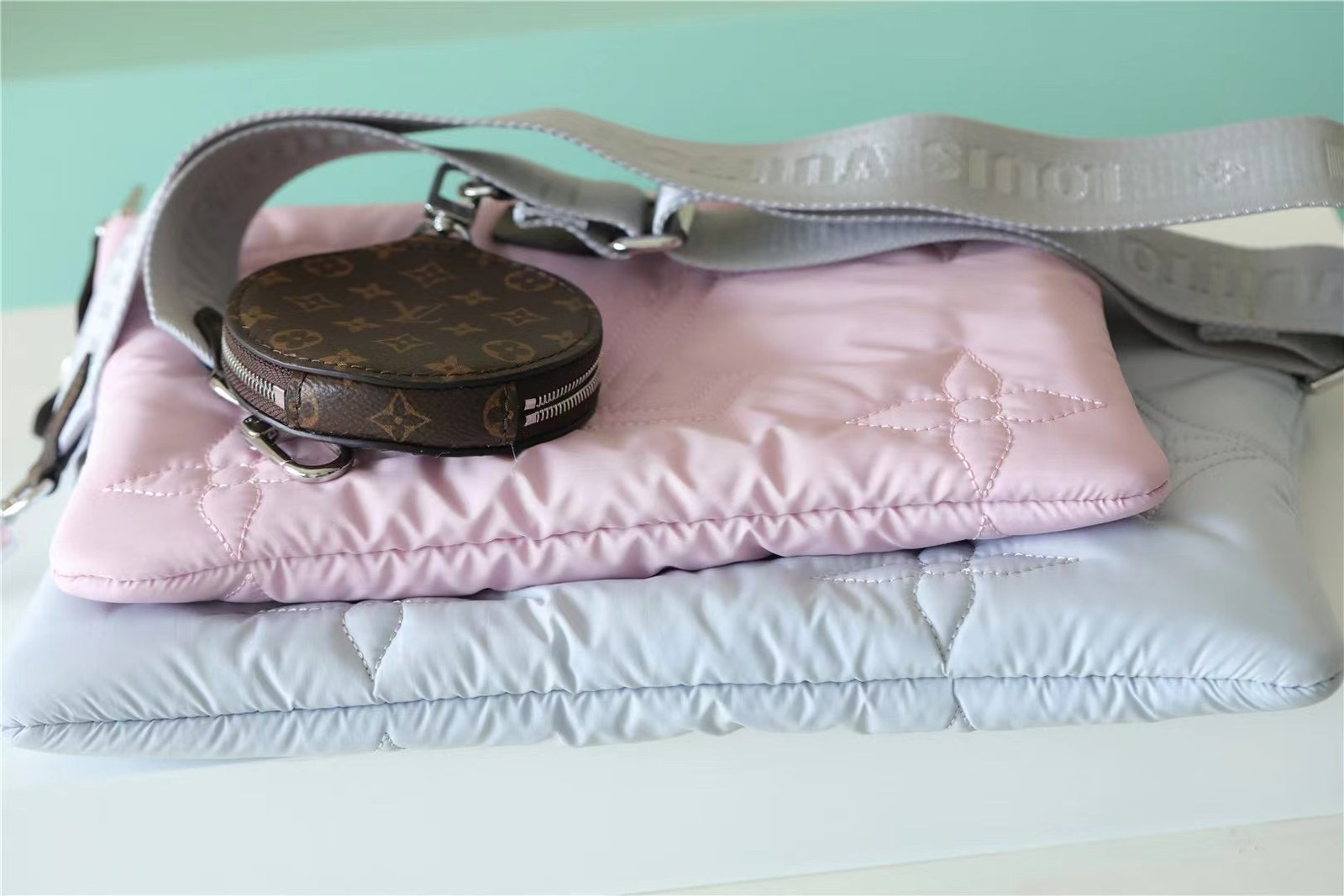 - The Maxi Multi Pochette Accessoires belongs to the season’s LV Pillow capsule. This playful piece provides so many styling opportunities. It can be worn cross-body on the long removable strap and carried as a clutch or by hand on its removable chain, with or without the cute detachable coin purse.