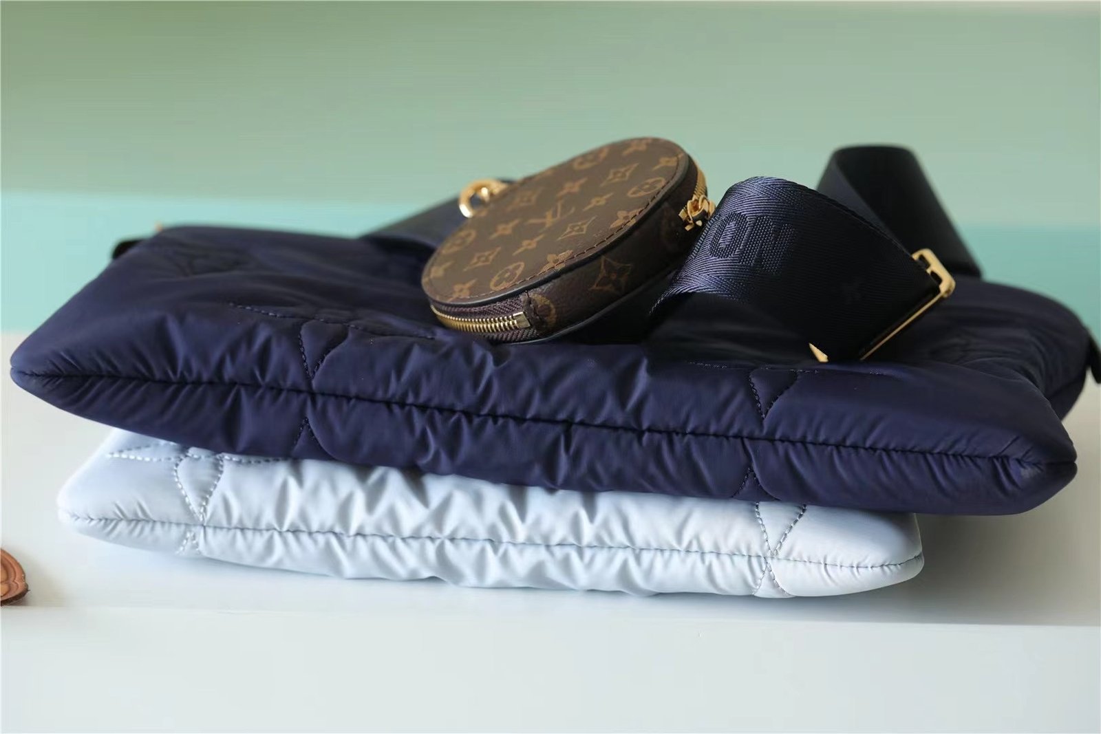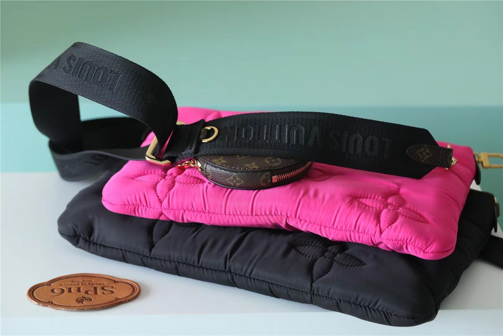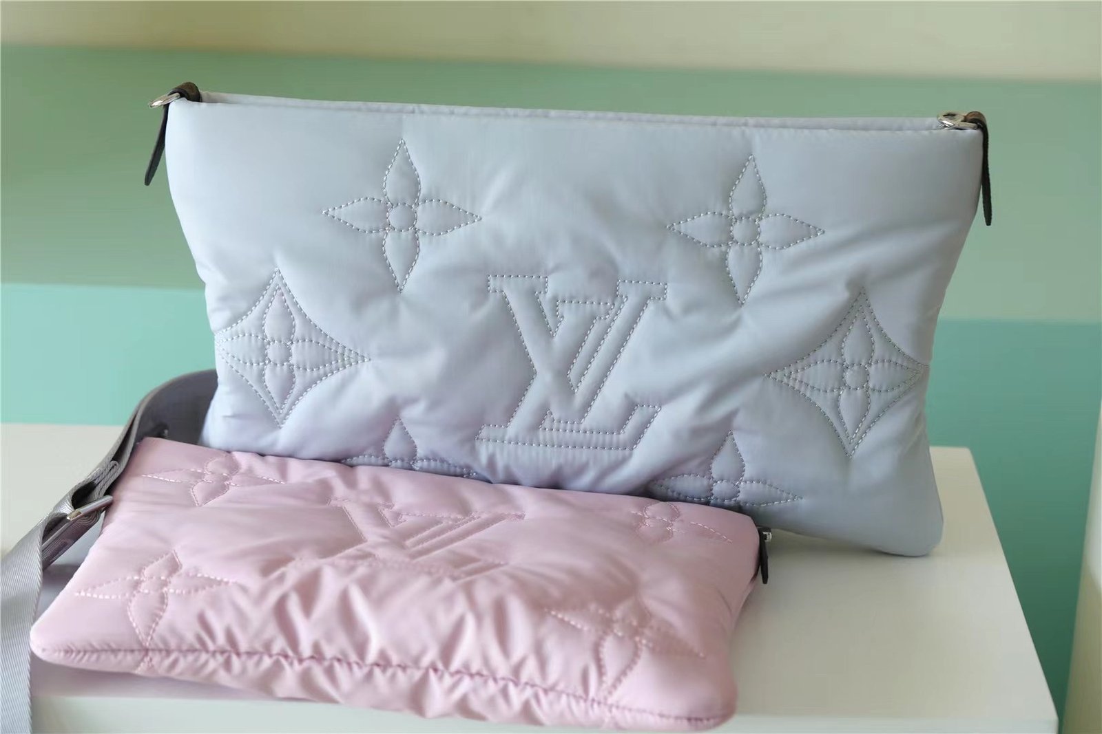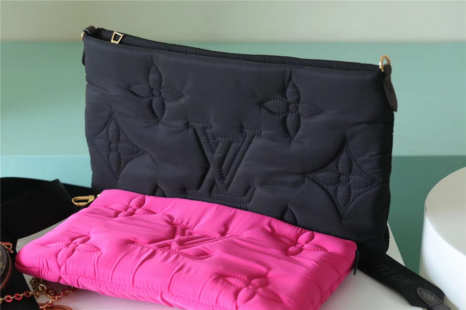 - The Maxi Multi Pochette Accessoires belongs to the season’s LV Pillow capsule. This playful piece provides so many styling opportunities. It can be worn cross-body on the long removable strap and carried as a clutch or by hand on its removable chain, with or without the cute detachable coin purse.
